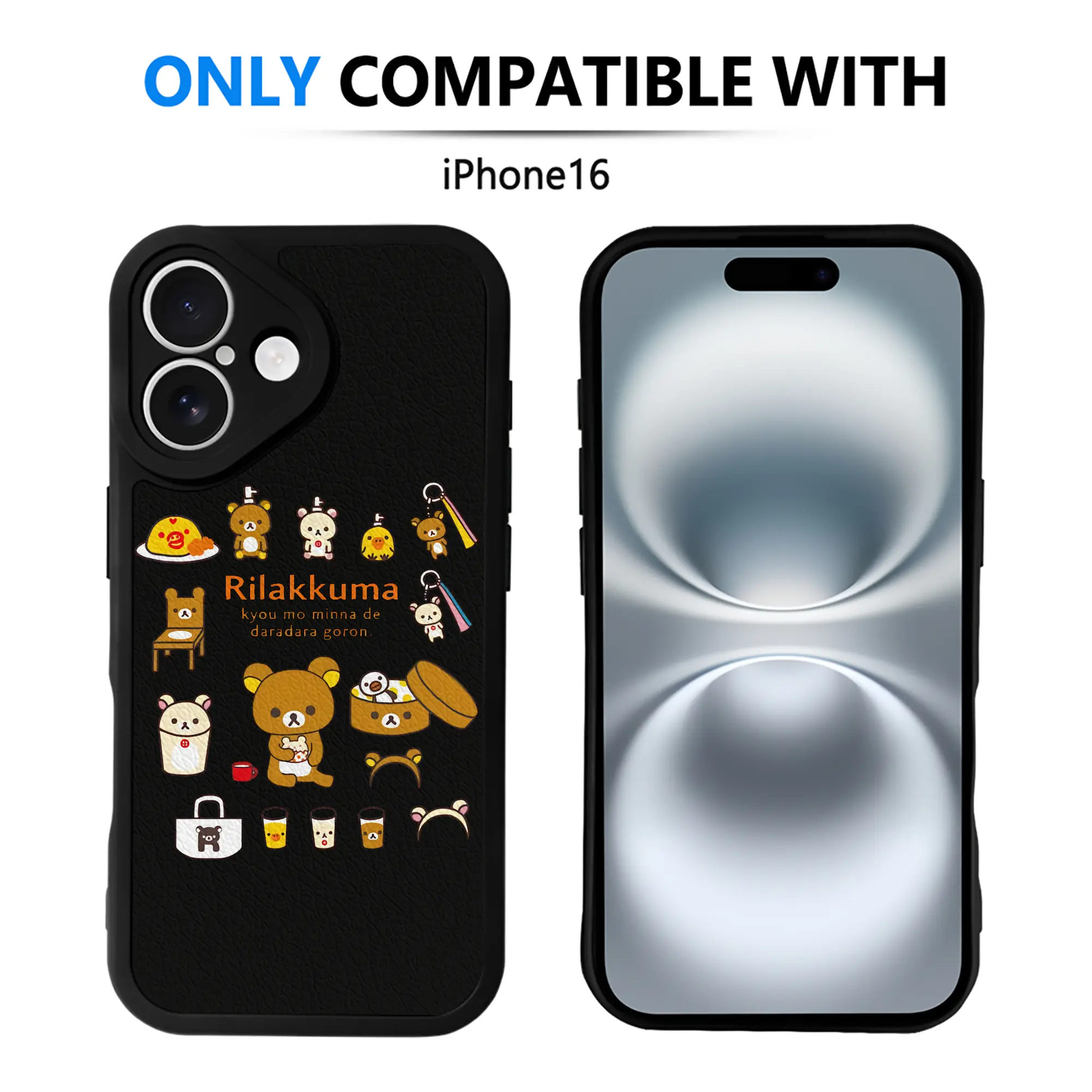 リラックマ (Rilakkuma) グッズ リラックマ (Rilakkuma) - IPhone 16シリーズ対応 ・ シリコンスマホケース ・ レザー調 ・ 高精度フィット ・ 耐衝撃 ・ ワイヤレス充電対応 ・ 精密カット