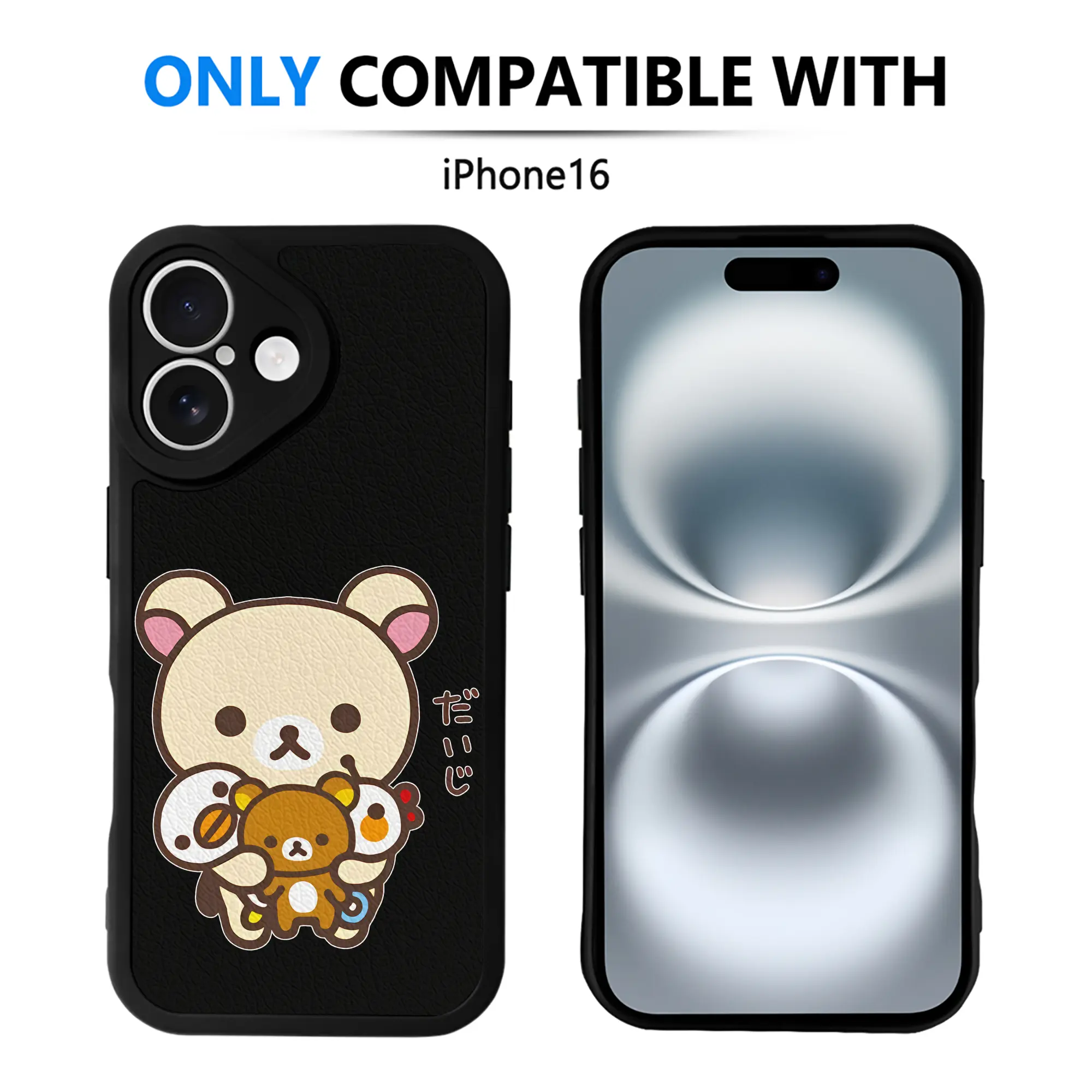リラックマ (Rilakkuma) グッズ コリラックマ (Korirakkuma) - IPhone 16シリーズ対応 ・ シリコンスマホケース ・ レザー調 ・ 高精度フィット ・ 耐衝撃 ・ ワイヤレス充電対応 ・ 精密カット