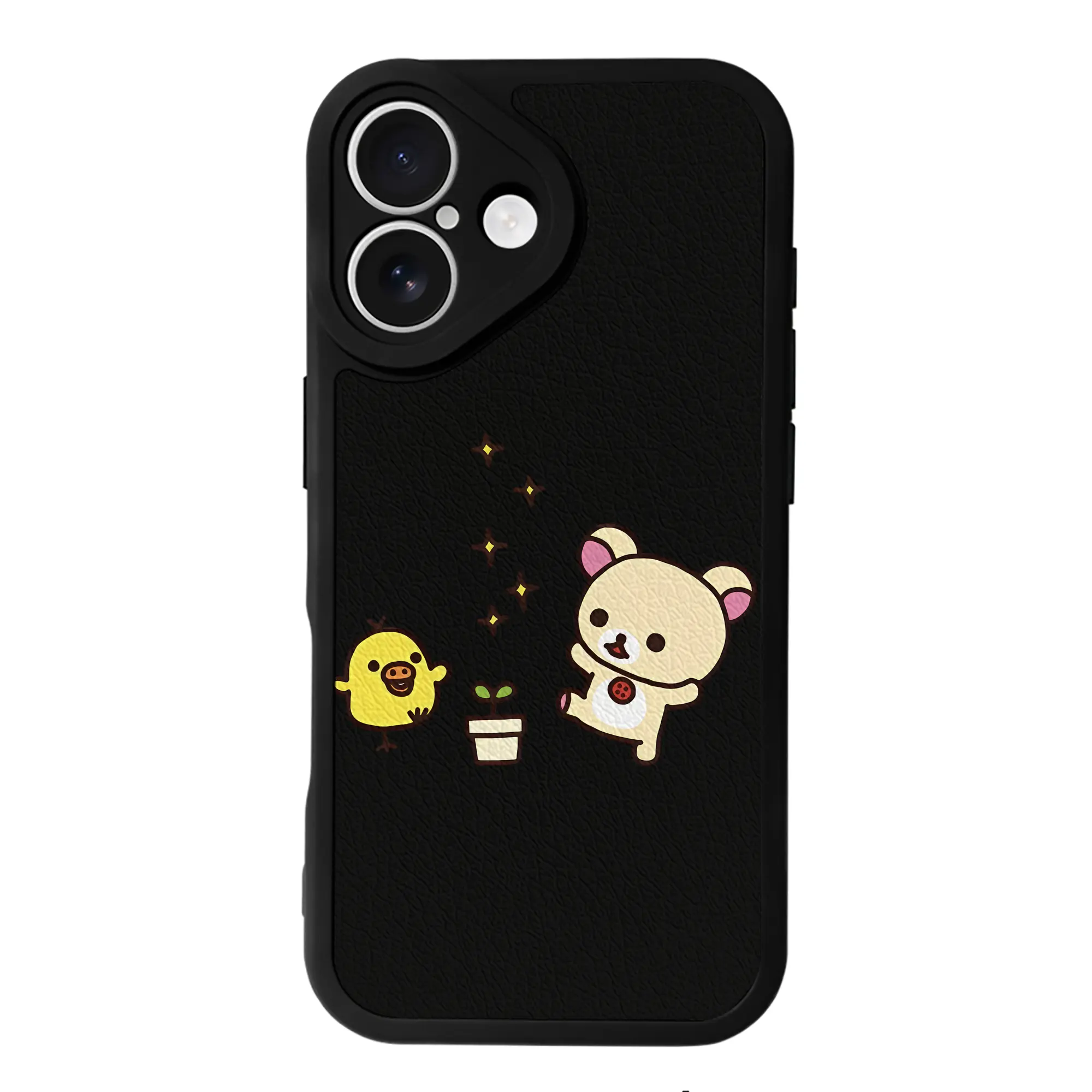 リラックマ (Rilakkuma) グッズ キイロイトリ (Kiiroitori) - IPhone 16シリーズ対応 ・ シリコンスマホケース ・ レザー調 ・ 高精度フィット ・ 耐衝撃 ・ ワイヤレス充電対応 ・ 精密カット