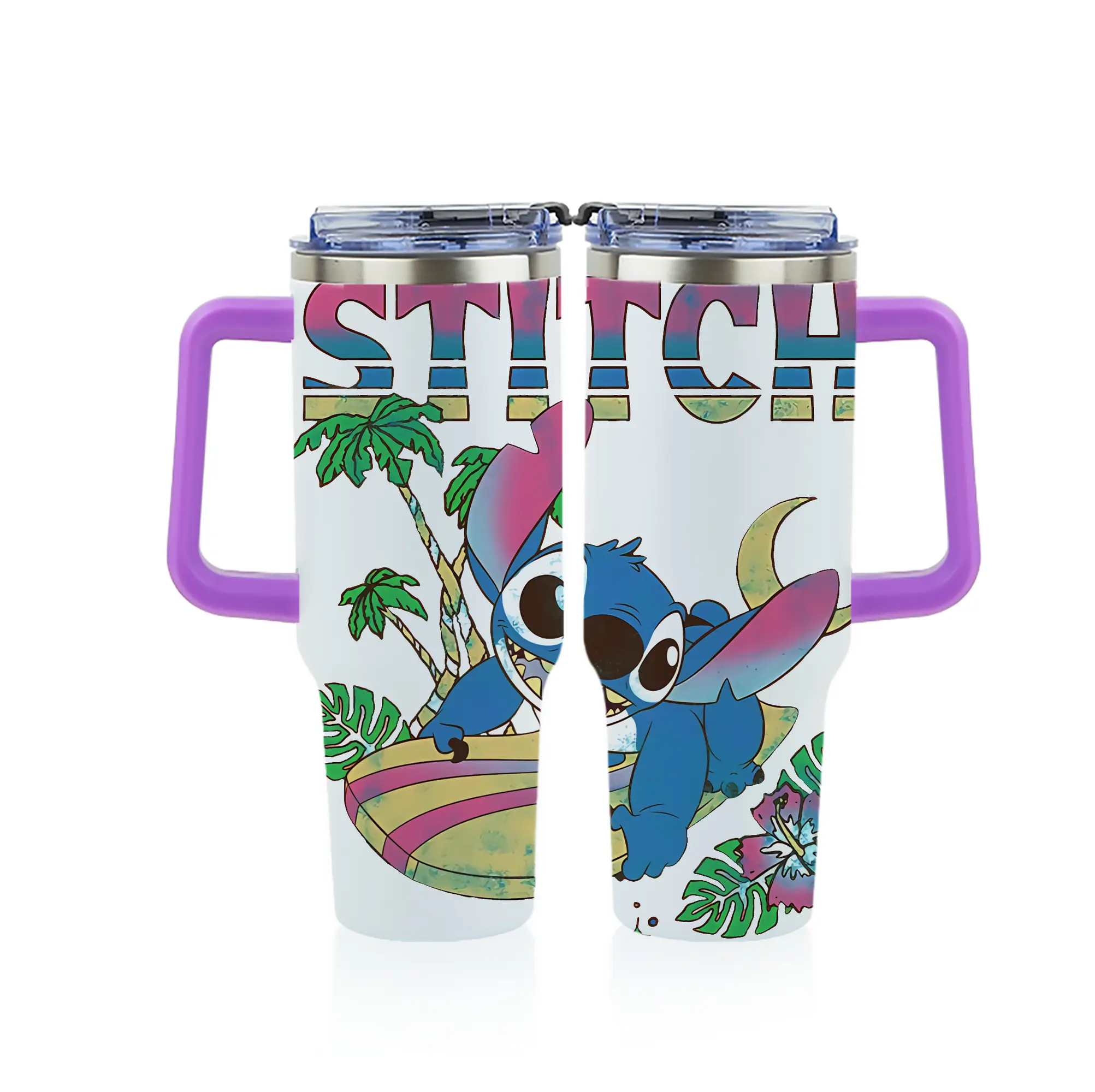 リロ&スティッチ グッズ スティッチ - 1200mL フルプリント車用タンブラー ・ 304ステンレス 内側 ・ 201ステンレス 外側 ・ 保温 保冷 ・ 通勤 ドライブ アウトドア用