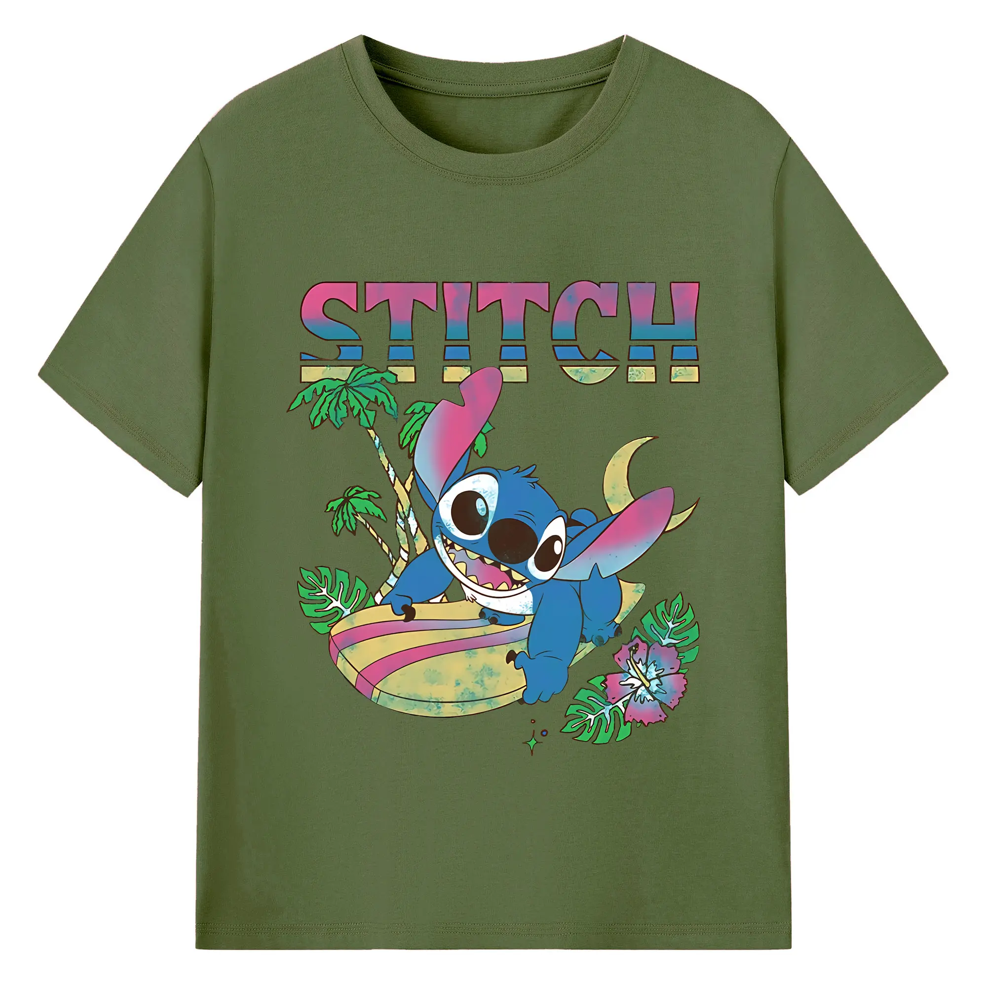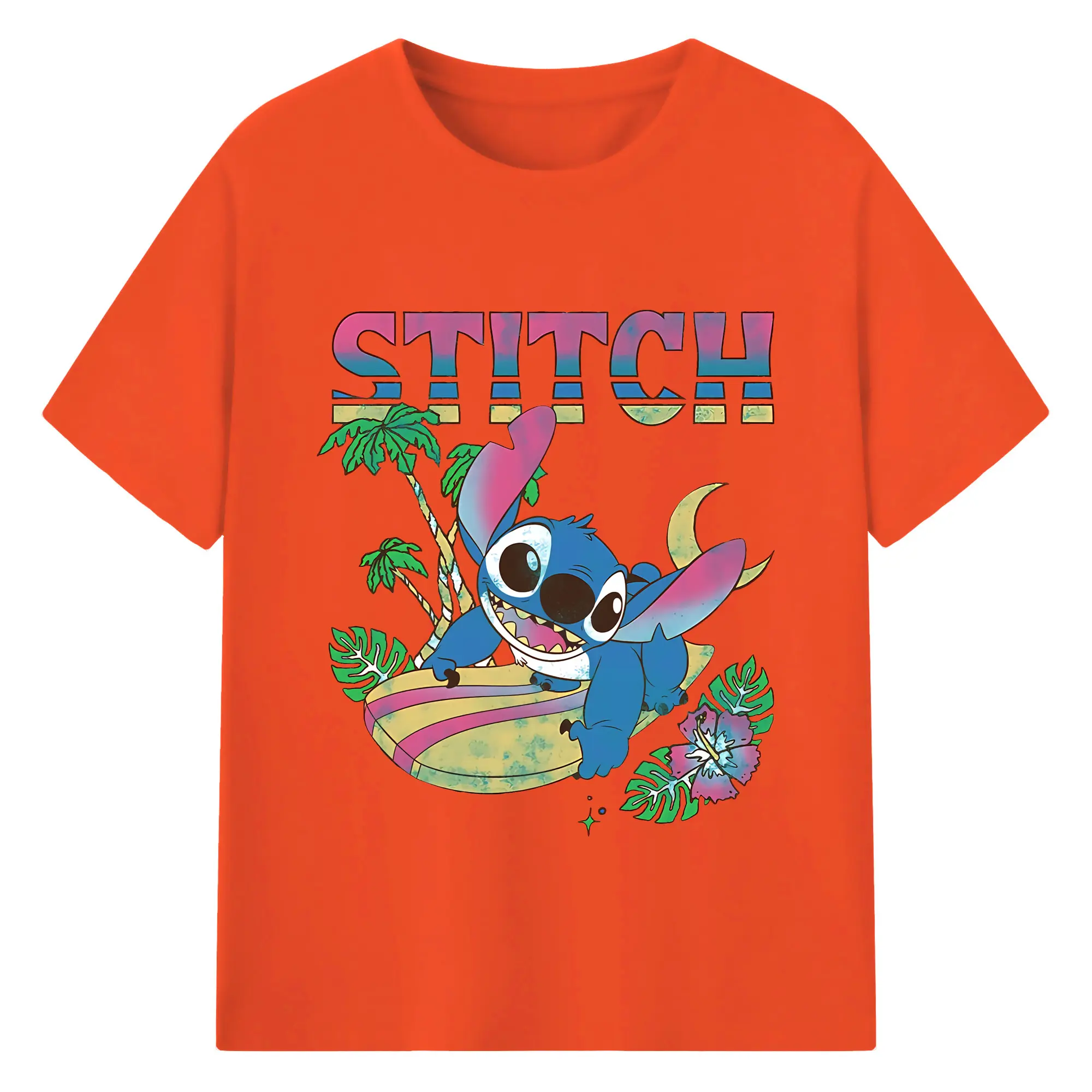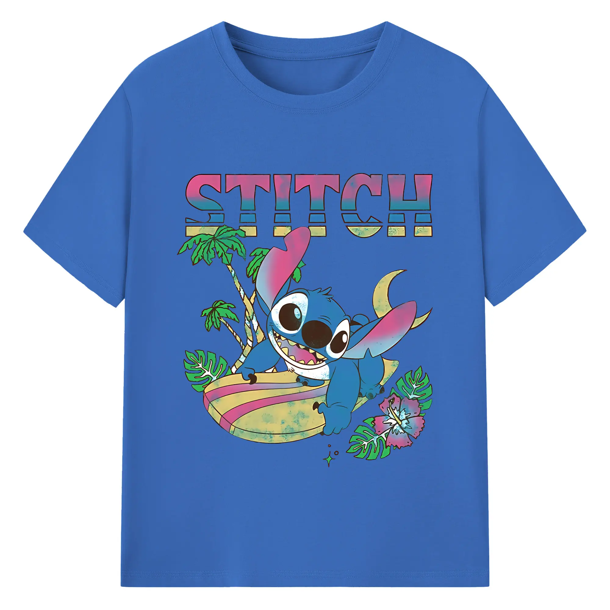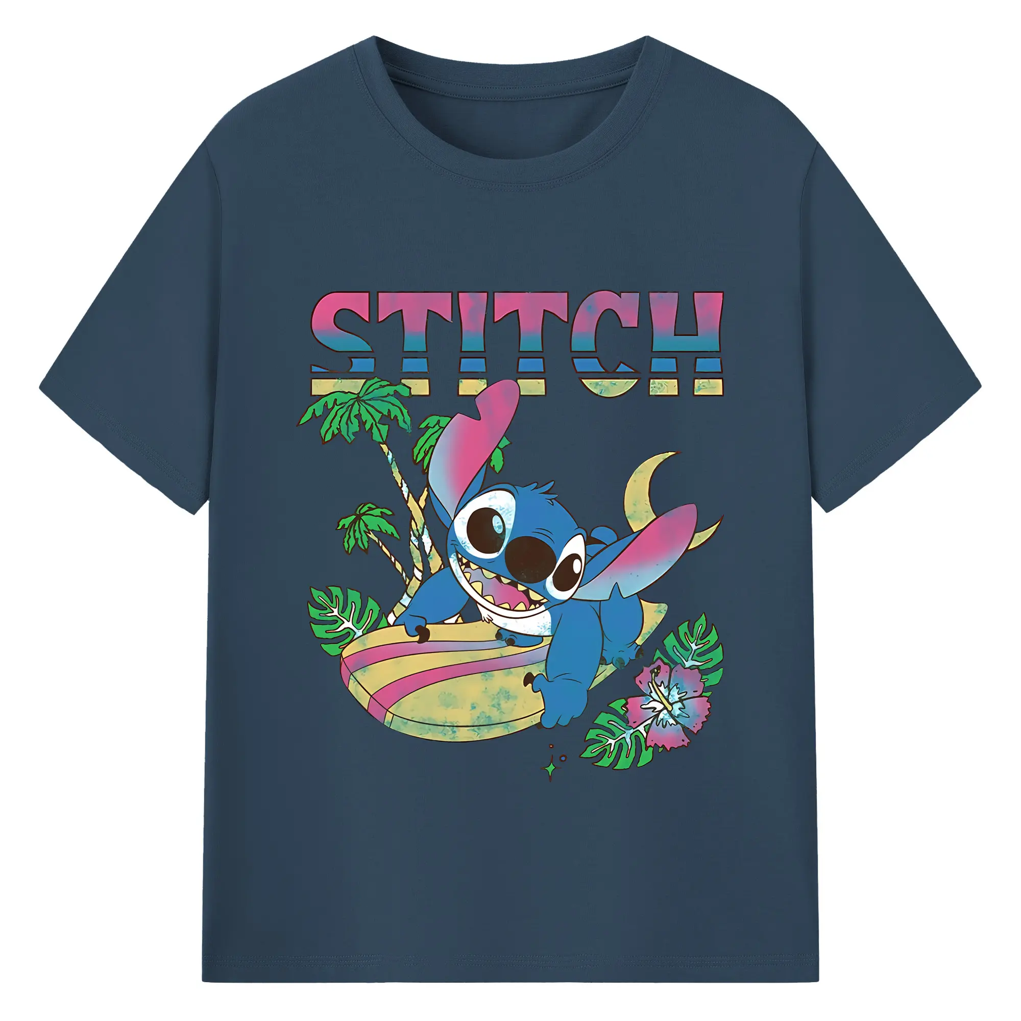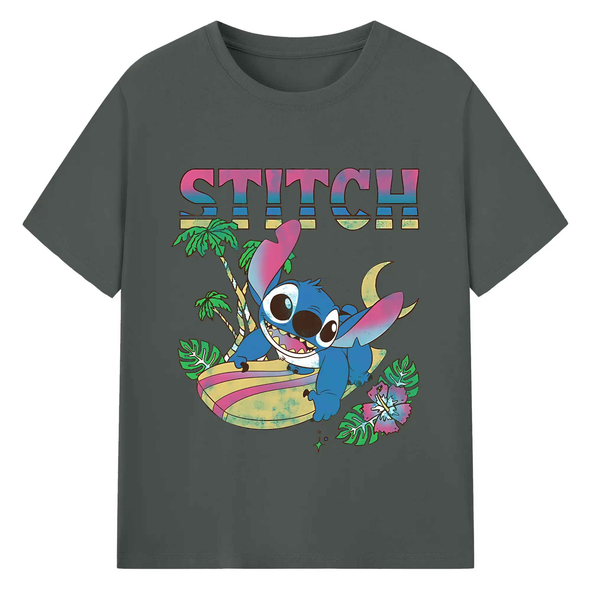 リロ&スティッチ グッズ スティッチ - 綿100% 半袖Tシャツ ・ バックプリント ・ 快適 通気性 ・ 日常使い 散歩 スポーツ用