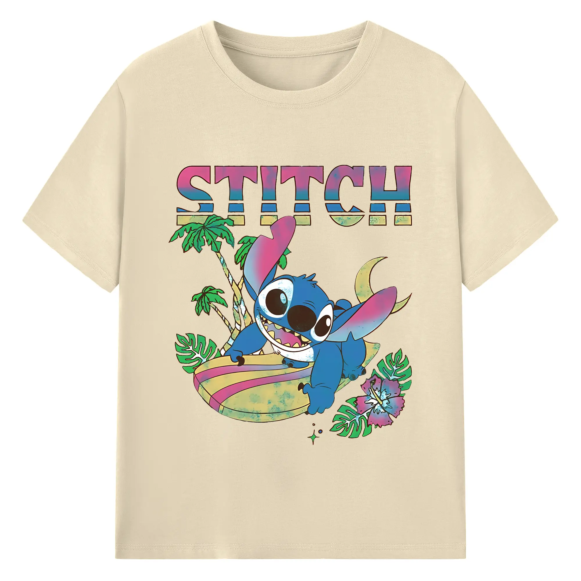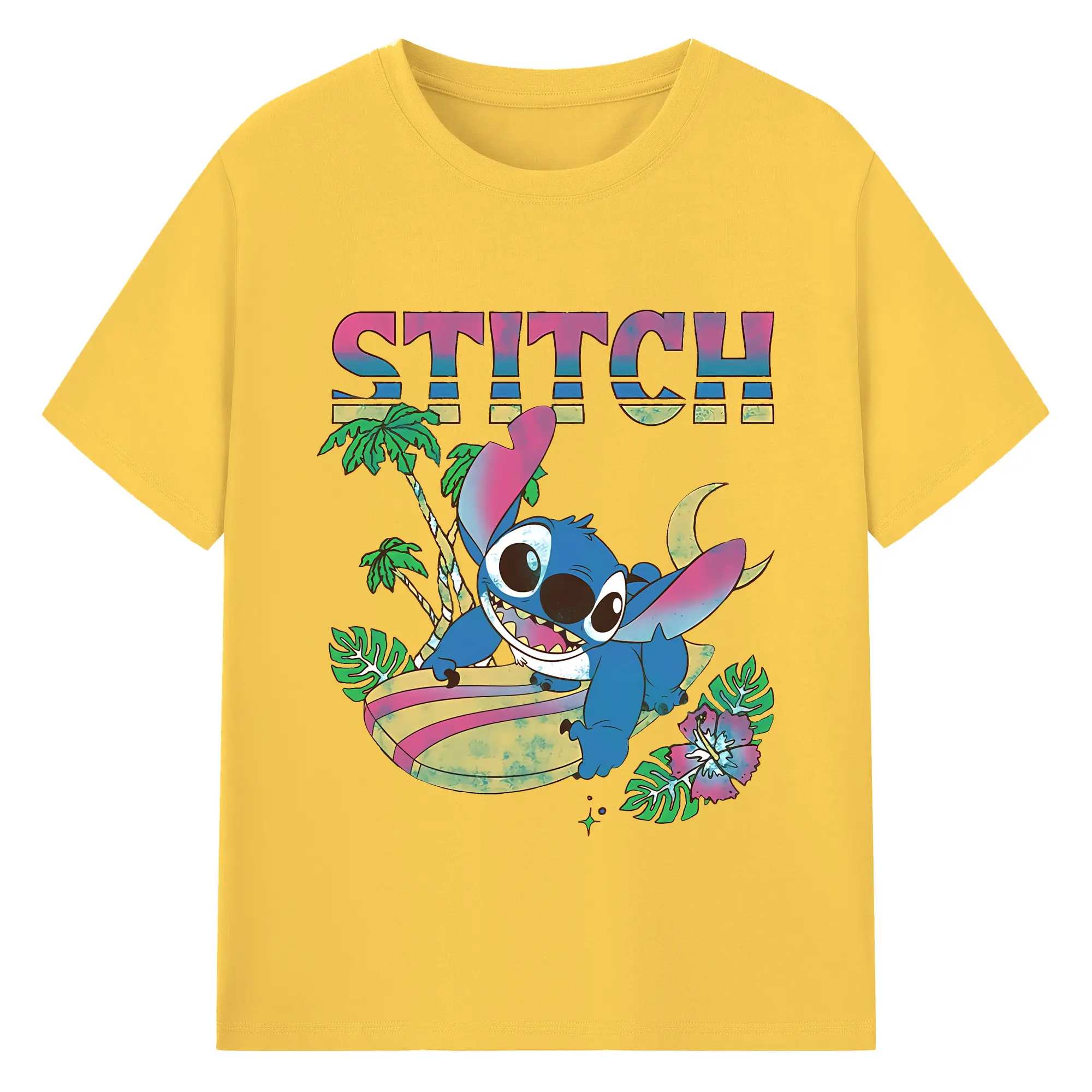 リロ&スティッチ グッズ スティッチ - 綿100% ヴィンテージ風 半袖Tシャツ ・ フロントプリント ・ 柔らか肌触り ・ 通気性 快適 ・ スポーツ カジュアル 外出用