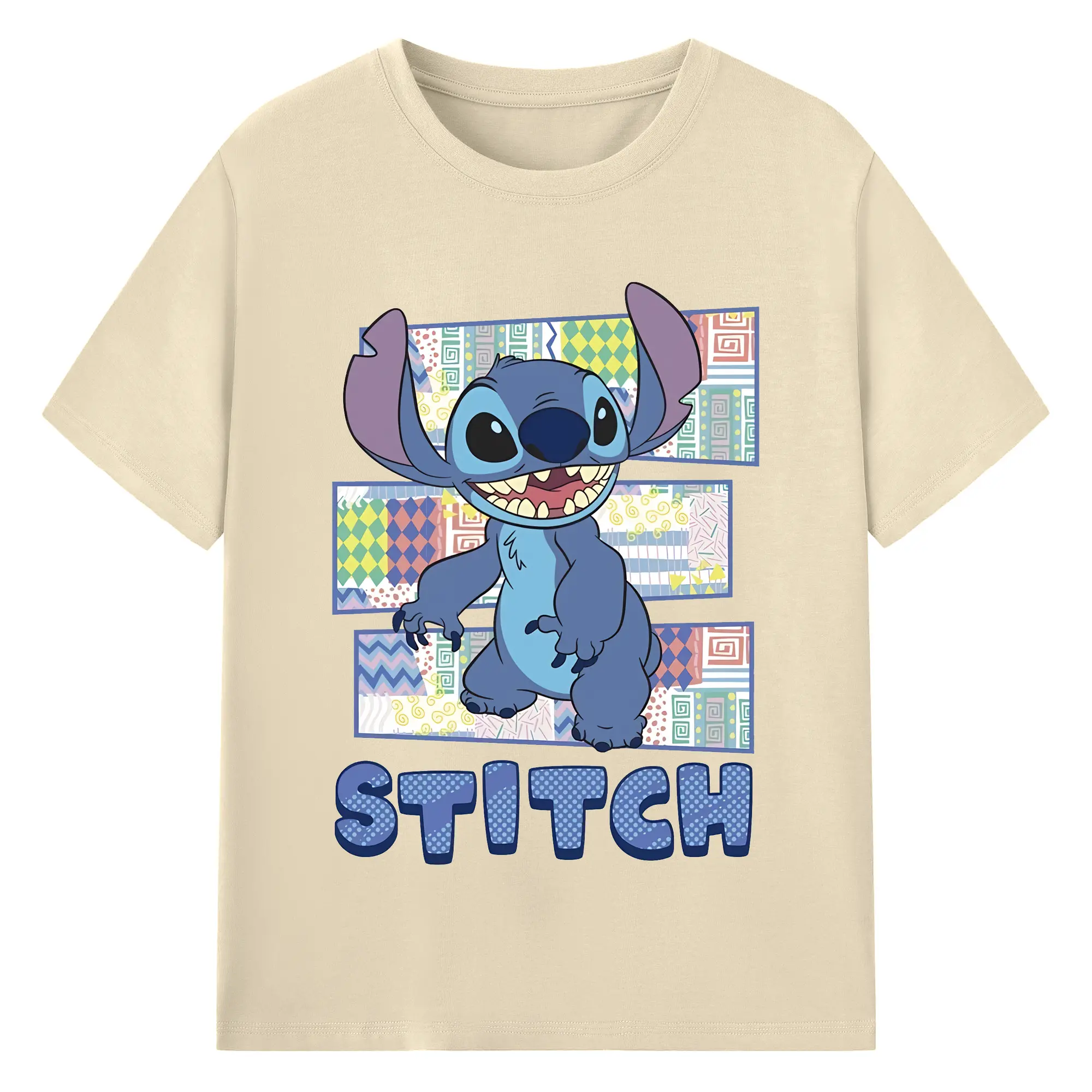 リロ&スティッチ グッズ スティッチ - 綿100% ヴィンテージ風 半袖Tシャツ ・ フロントプリント ・ 柔らか肌触り ・ 通気性 快適 ・ スポーツ カジュアル 外出用