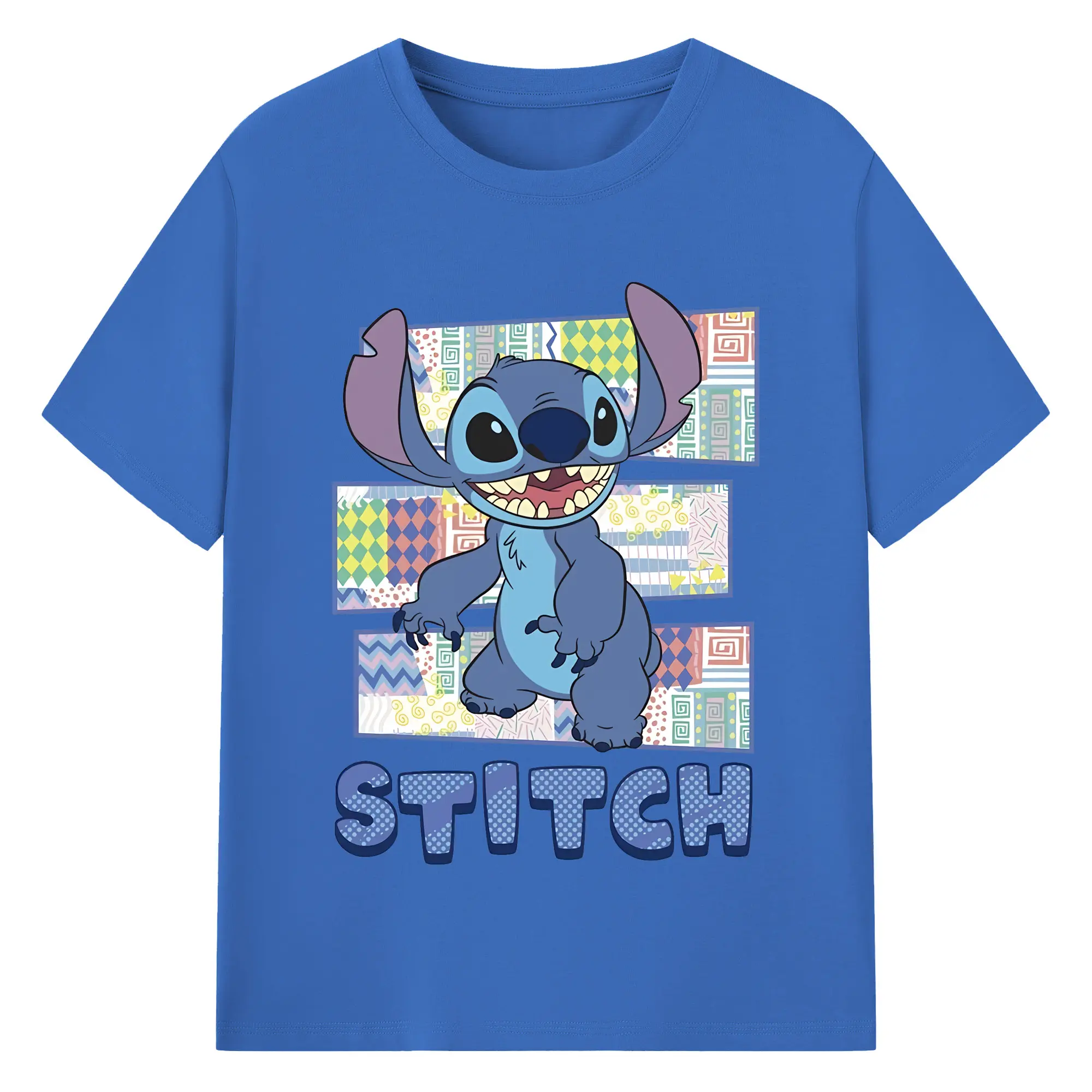 リロ&スティッチ グッズ スティッチ - 綿100% キッズTシャツ ・ フロントプリント ・ 快適 通気性 ・ スポーツ カジュアル 散歩用