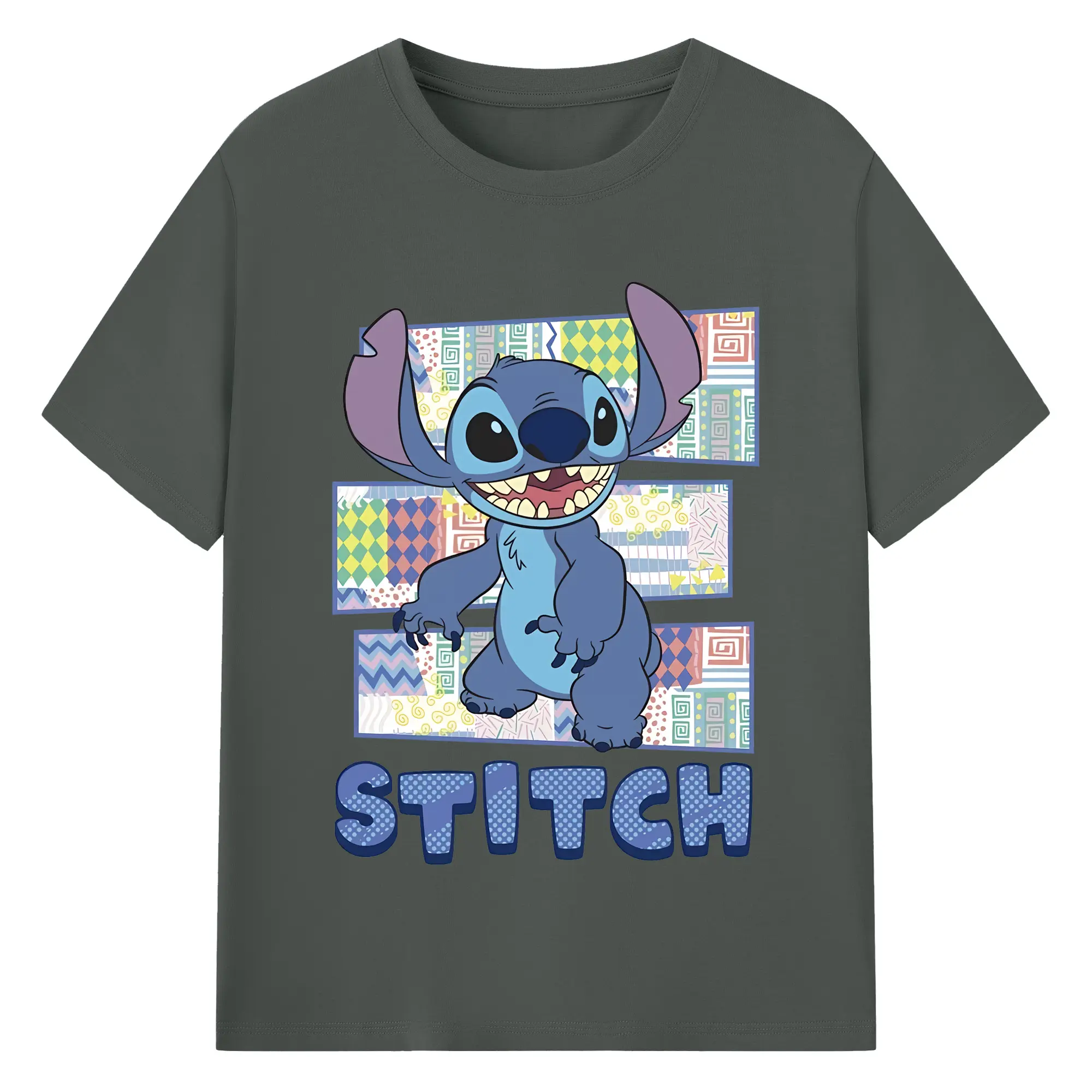 リロ&スティッチ グッズ スティッチ - 綿100% 半袖Tシャツ ・ バックプリント ・ 快適 通気性 ・ 日常使い 散歩 スポーツ用