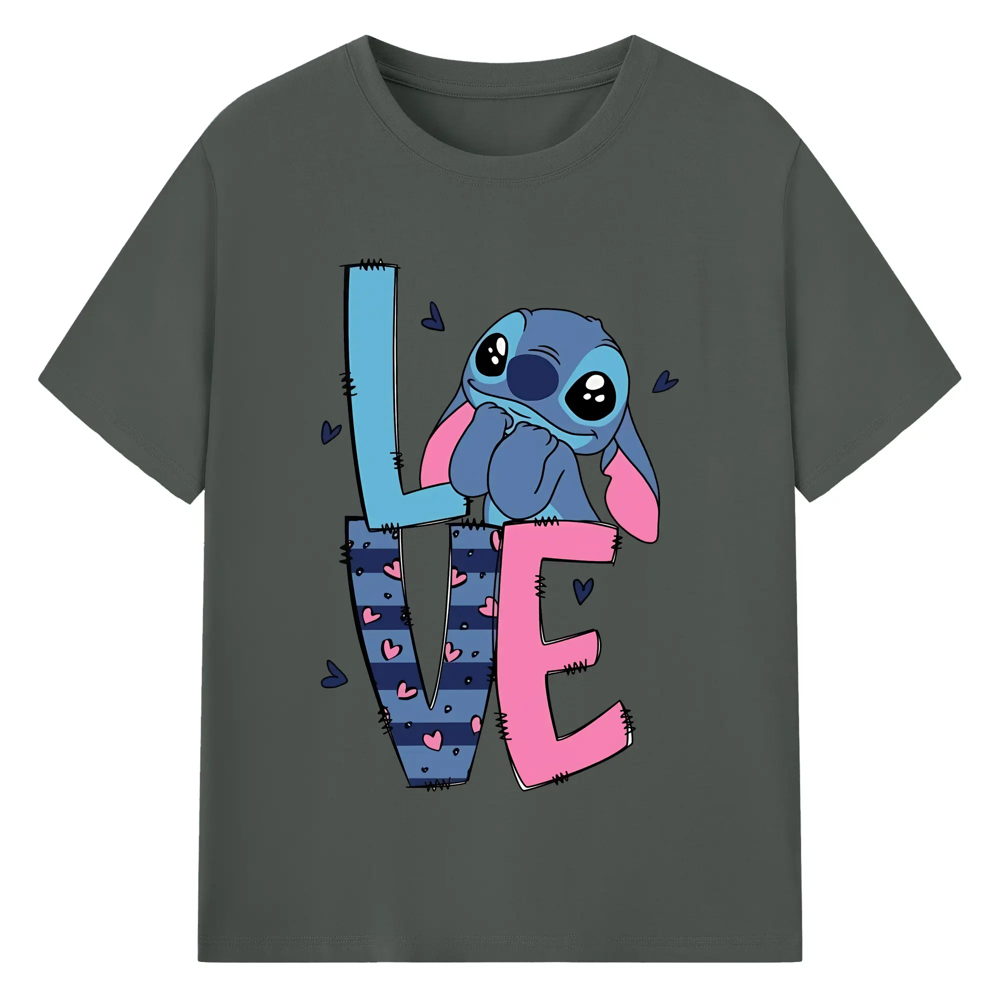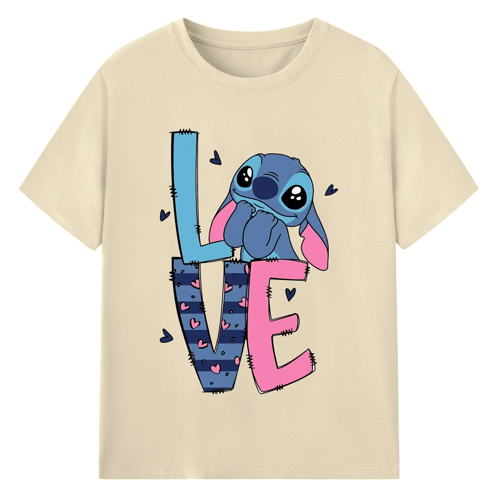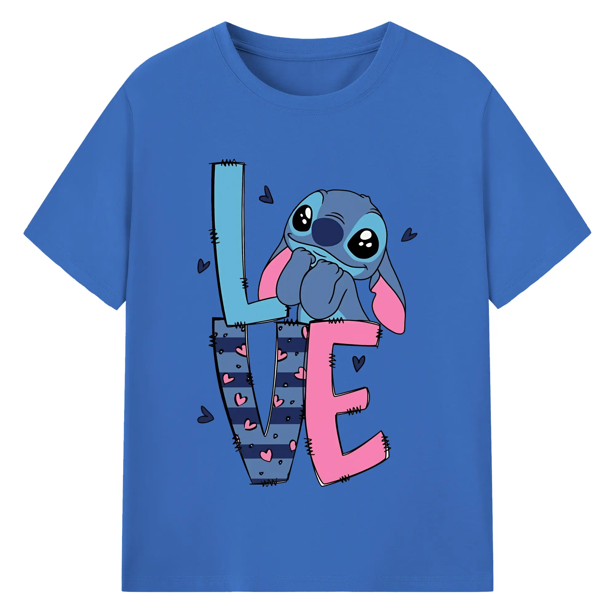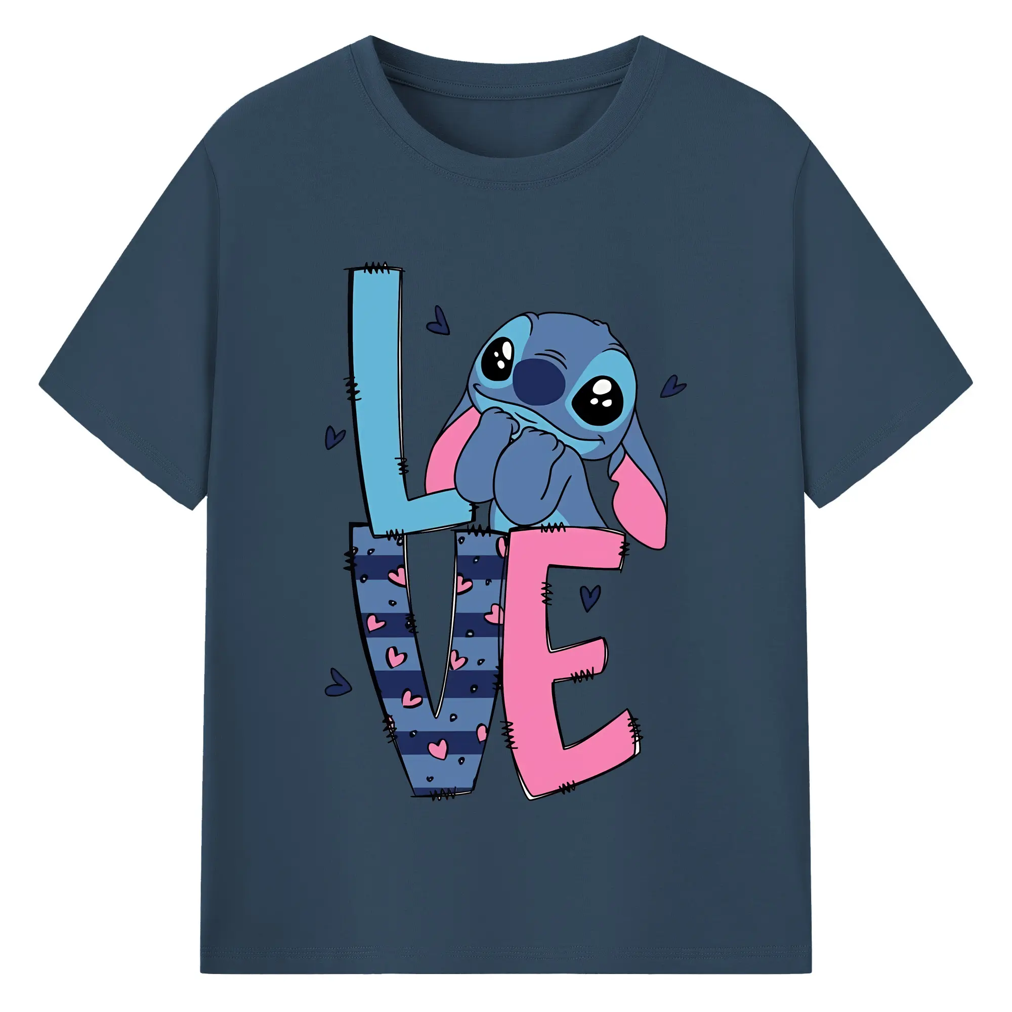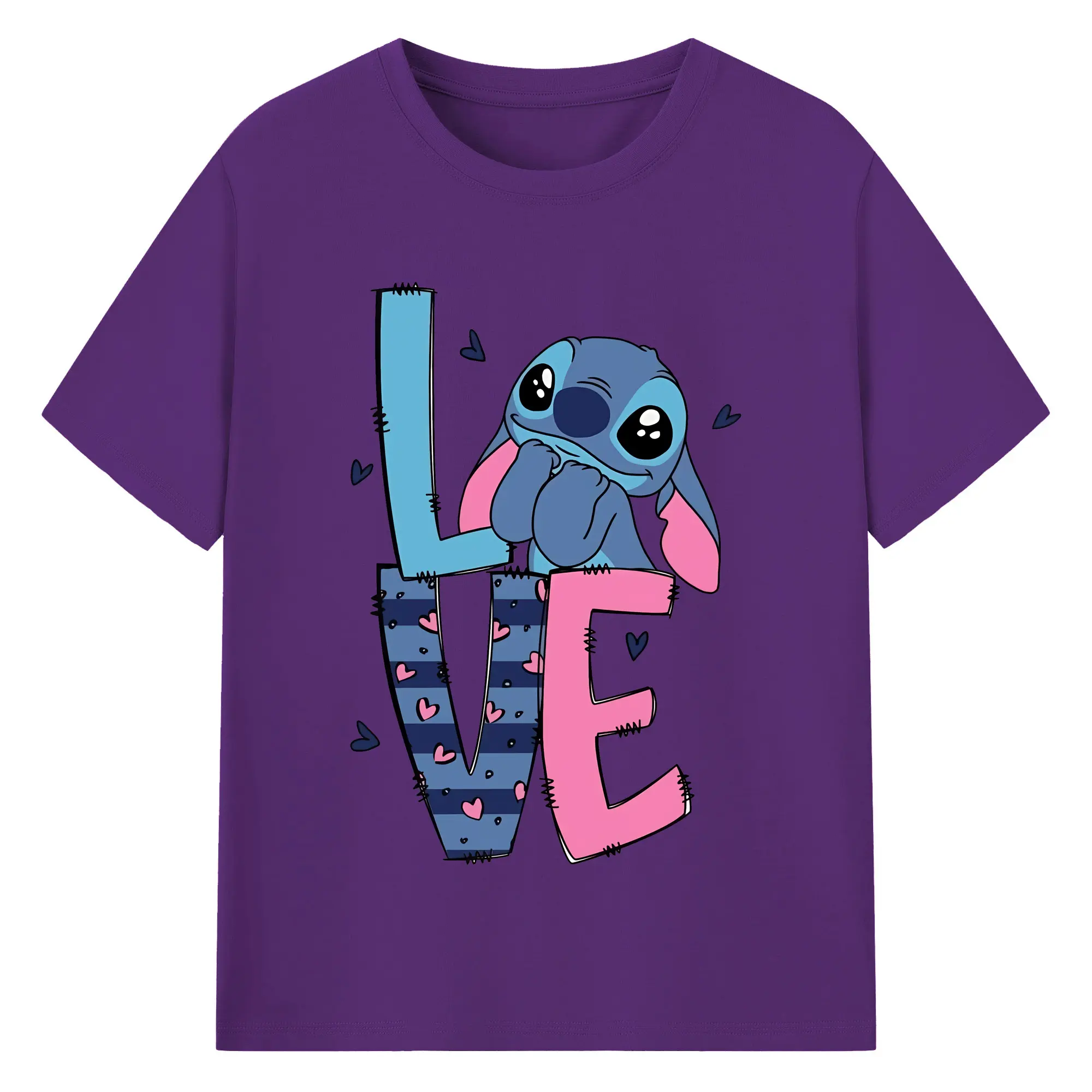リロ&スティッチ グッズ スティッチ - 綿100% 半袖Tシャツ ・ バックプリント ・ 快適 通気性 ・ 日常使い 散歩 スポーツ用