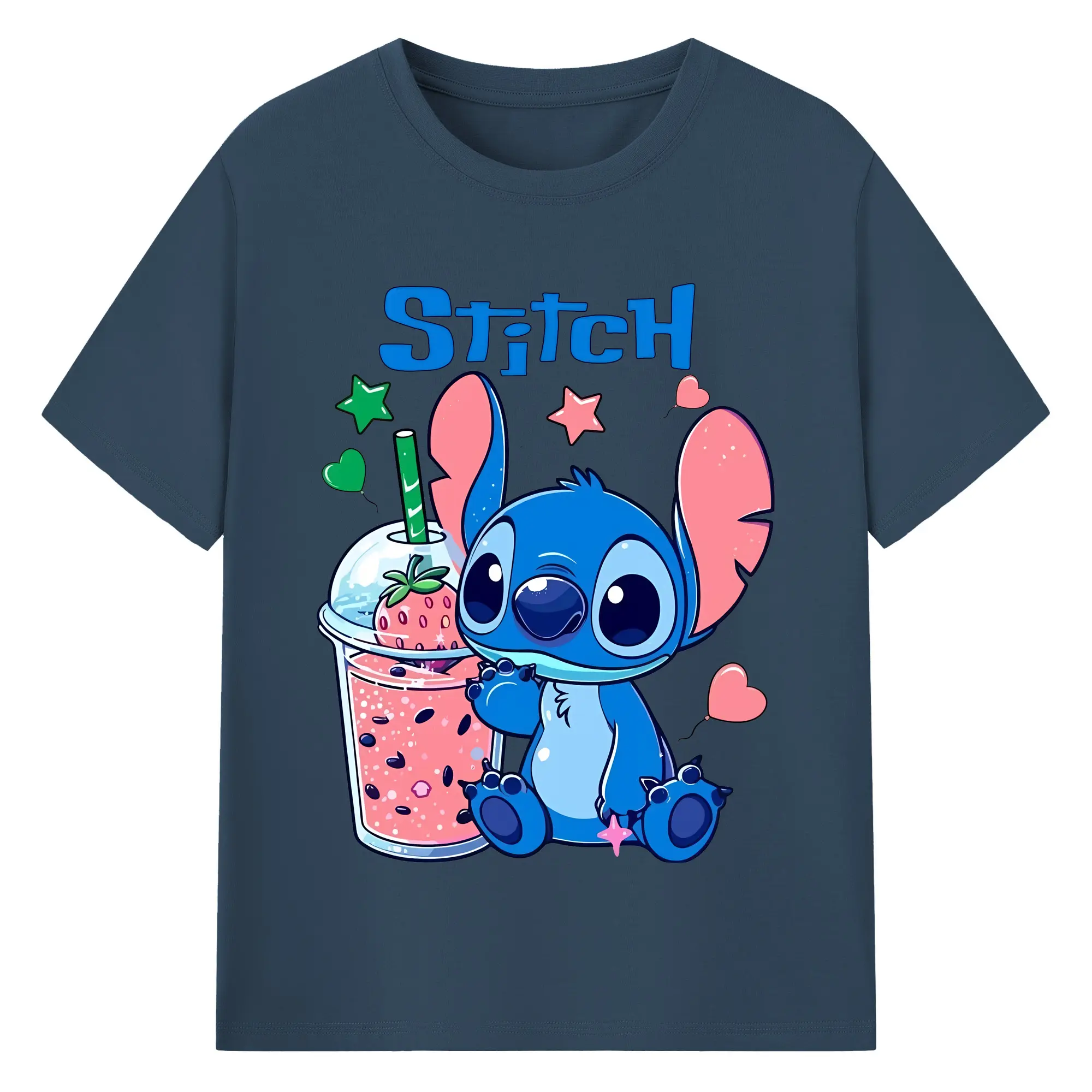 リロ&スティッチ グッズ スティッチ - 綿100% 半袖Tシャツ ・ バックプリント ・ 快適 通気性 ・ 日常使い 散歩 スポーツ用