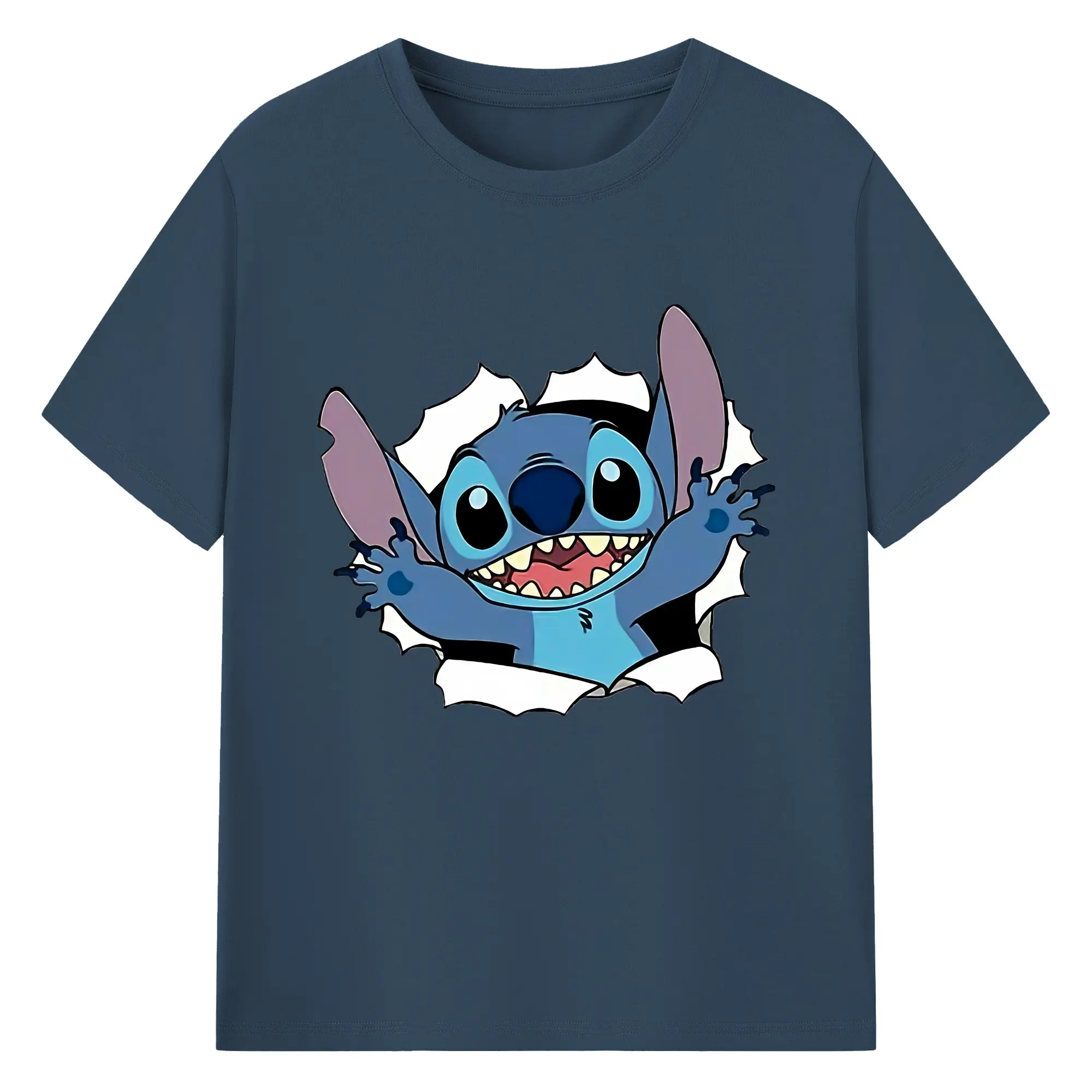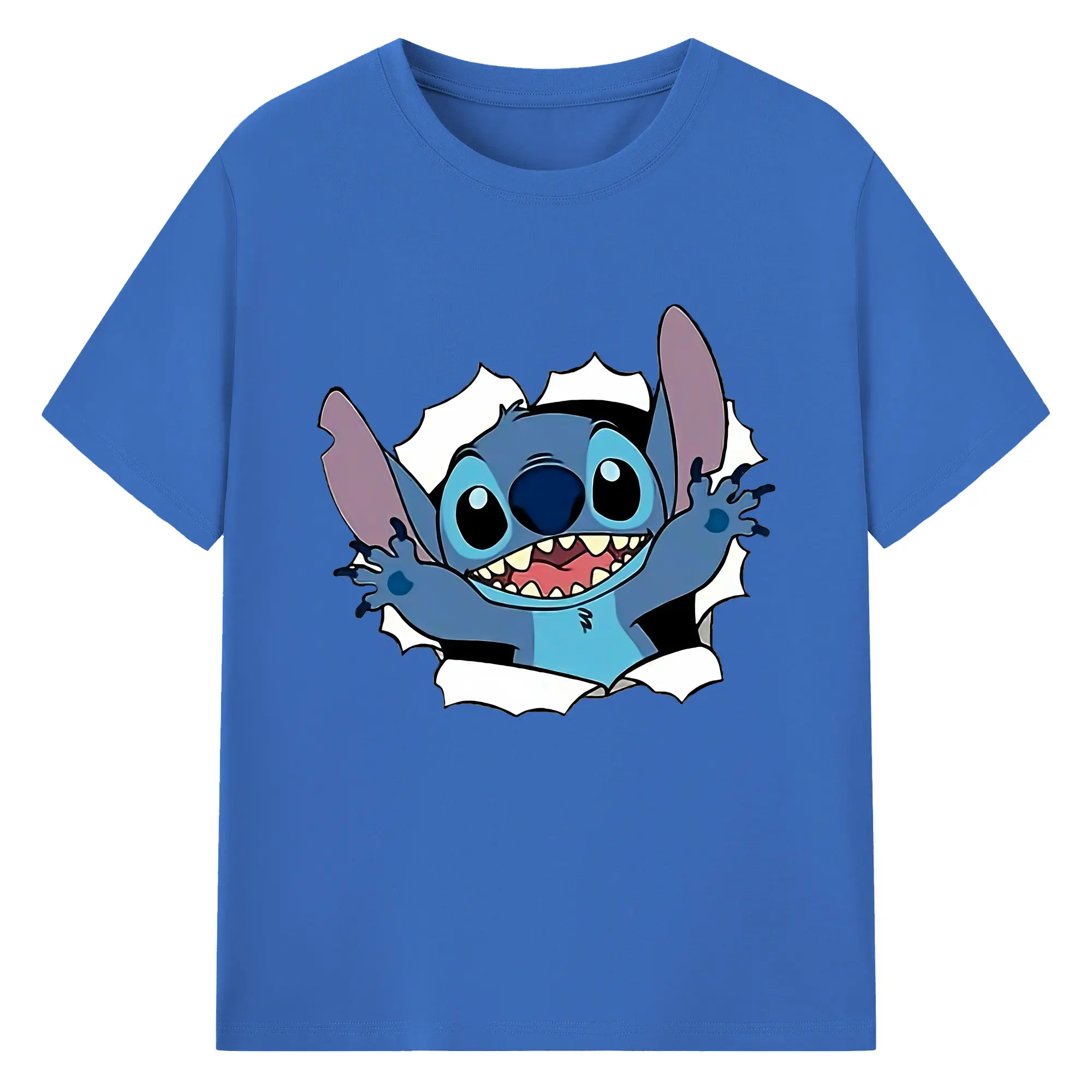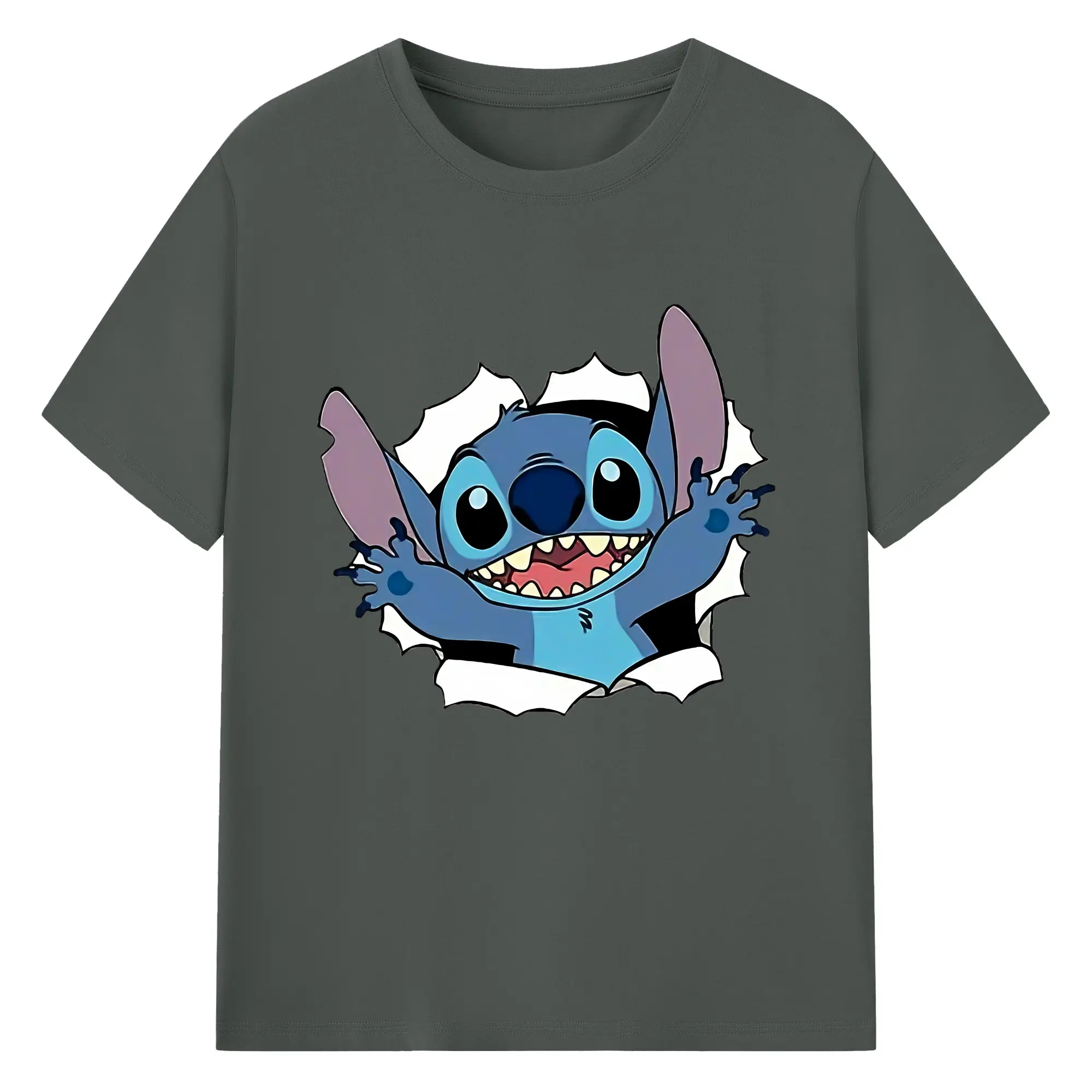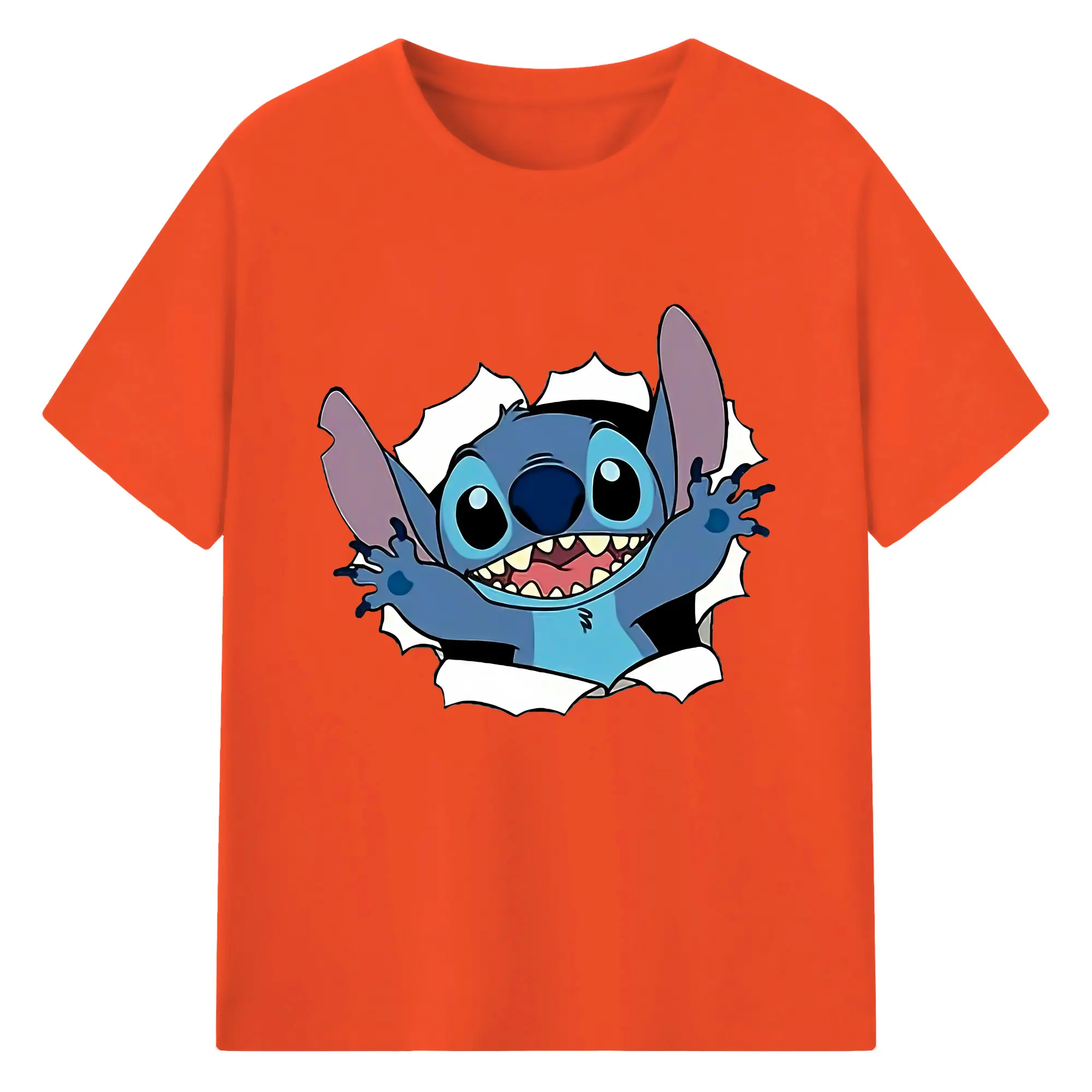 リロ&スティッチ グッズ スティッチ - 綿100% 半袖Tシャツ ・ バックプリント ・ 快適 通気性 ・ 日常使い 散歩 スポーツ用