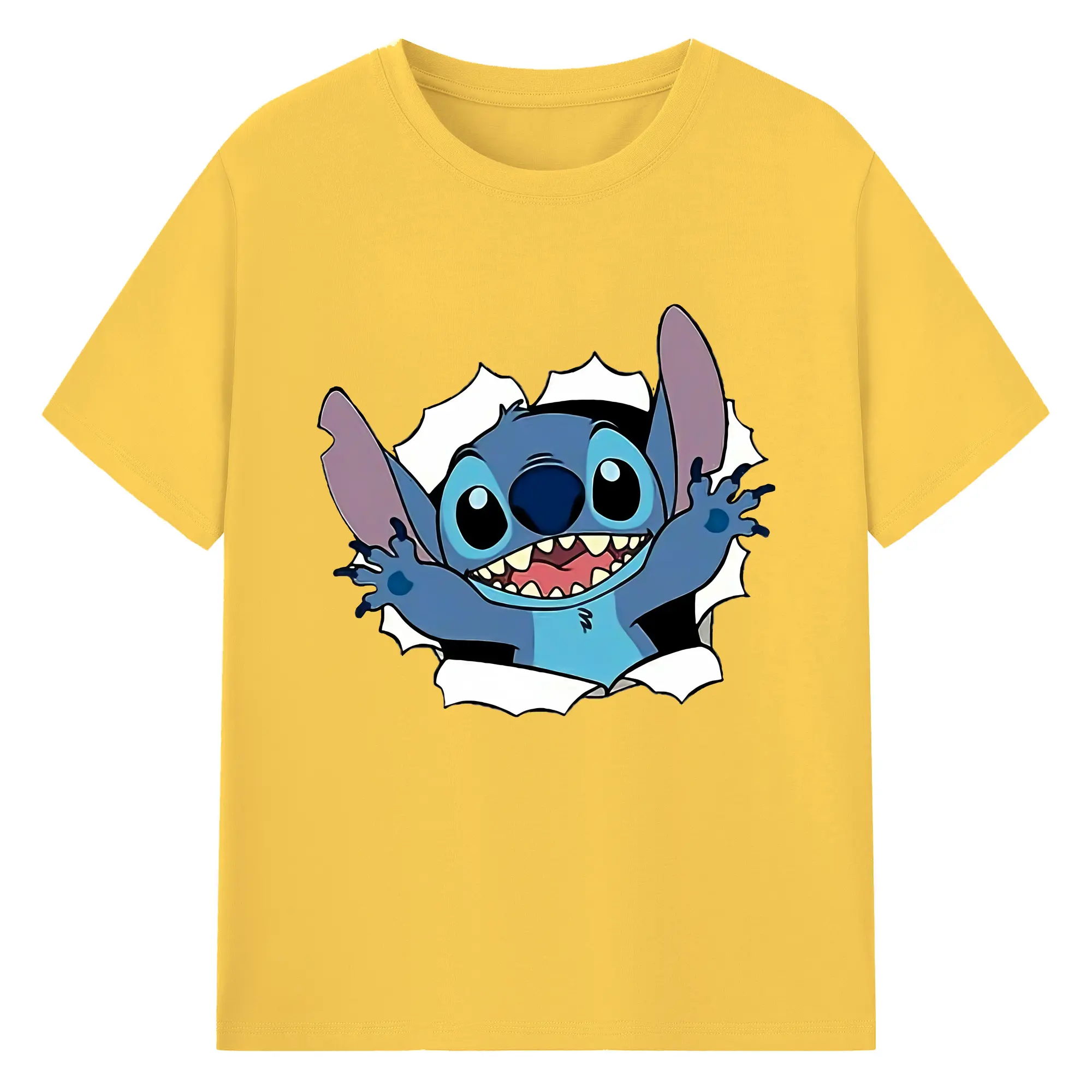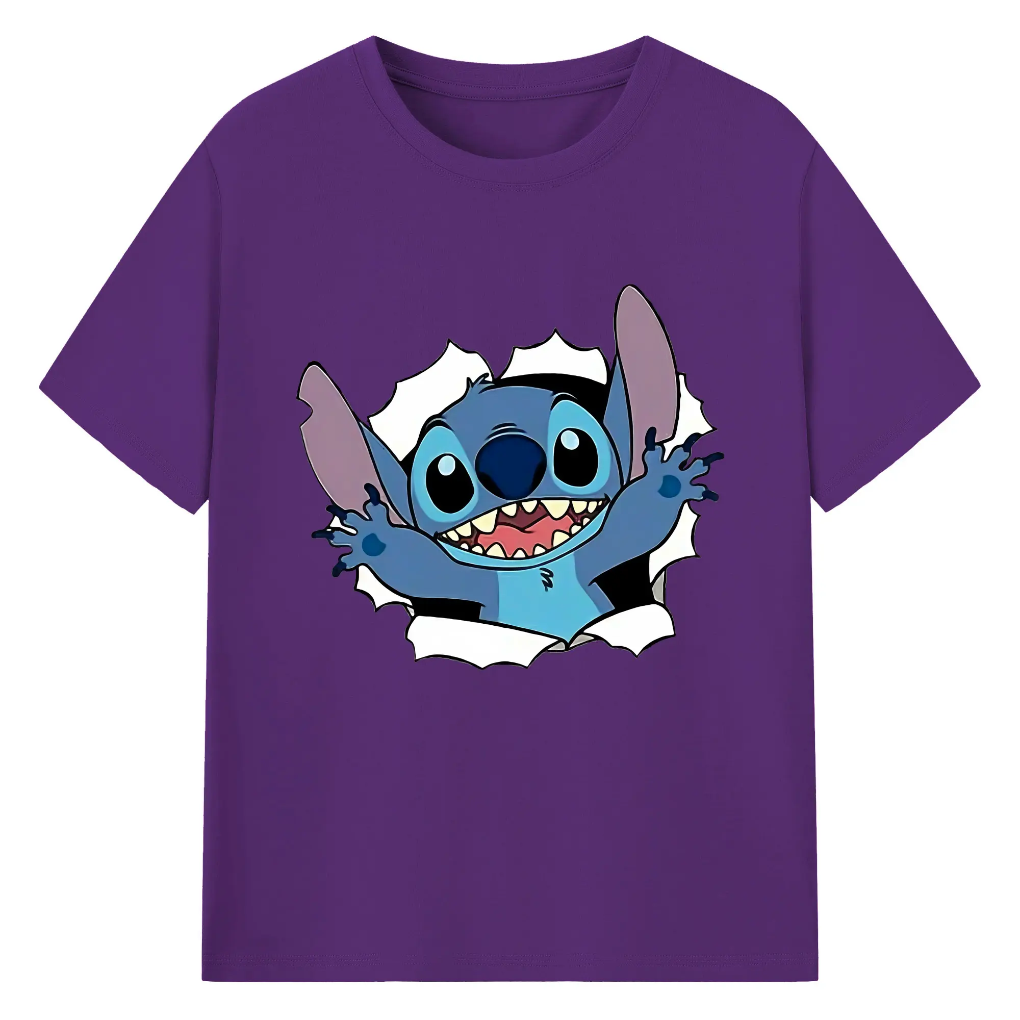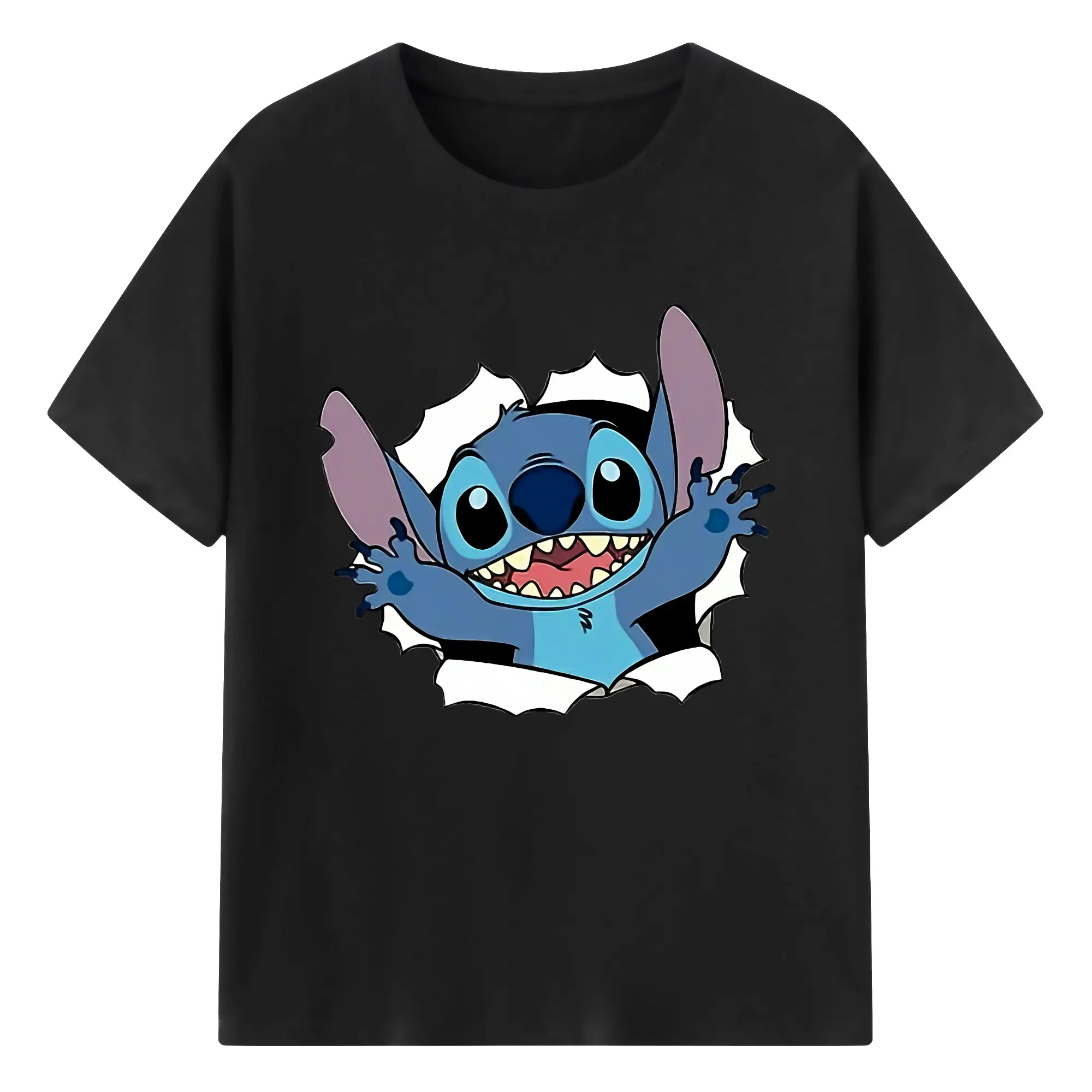 リロ&スティッチ グッズ スティッチ - 綿100% 半袖Tシャツ ・ バックプリント ・ 快適 通気性 ・ 日常使い 散歩 スポーツ用