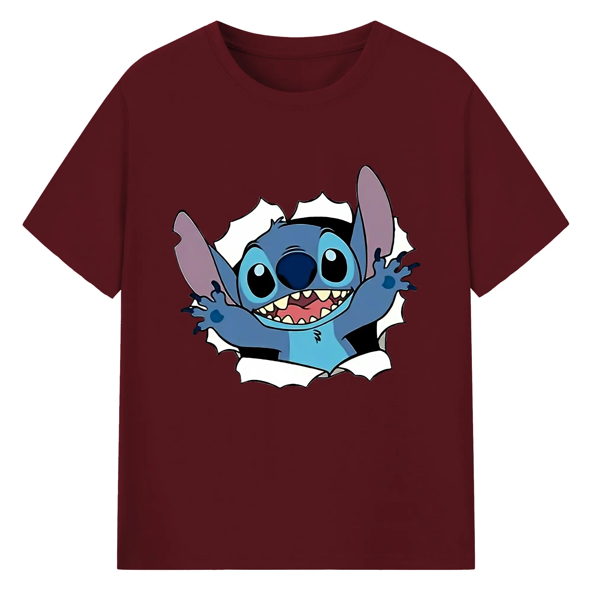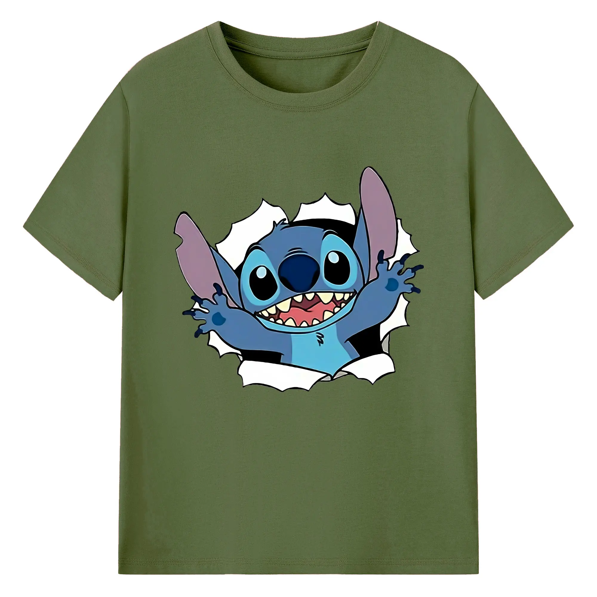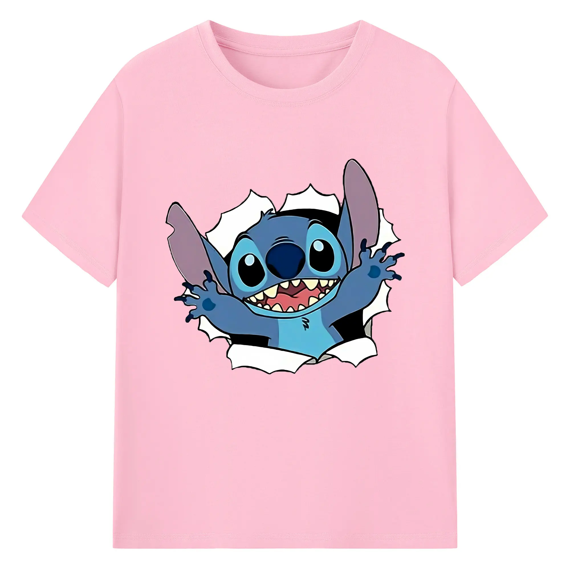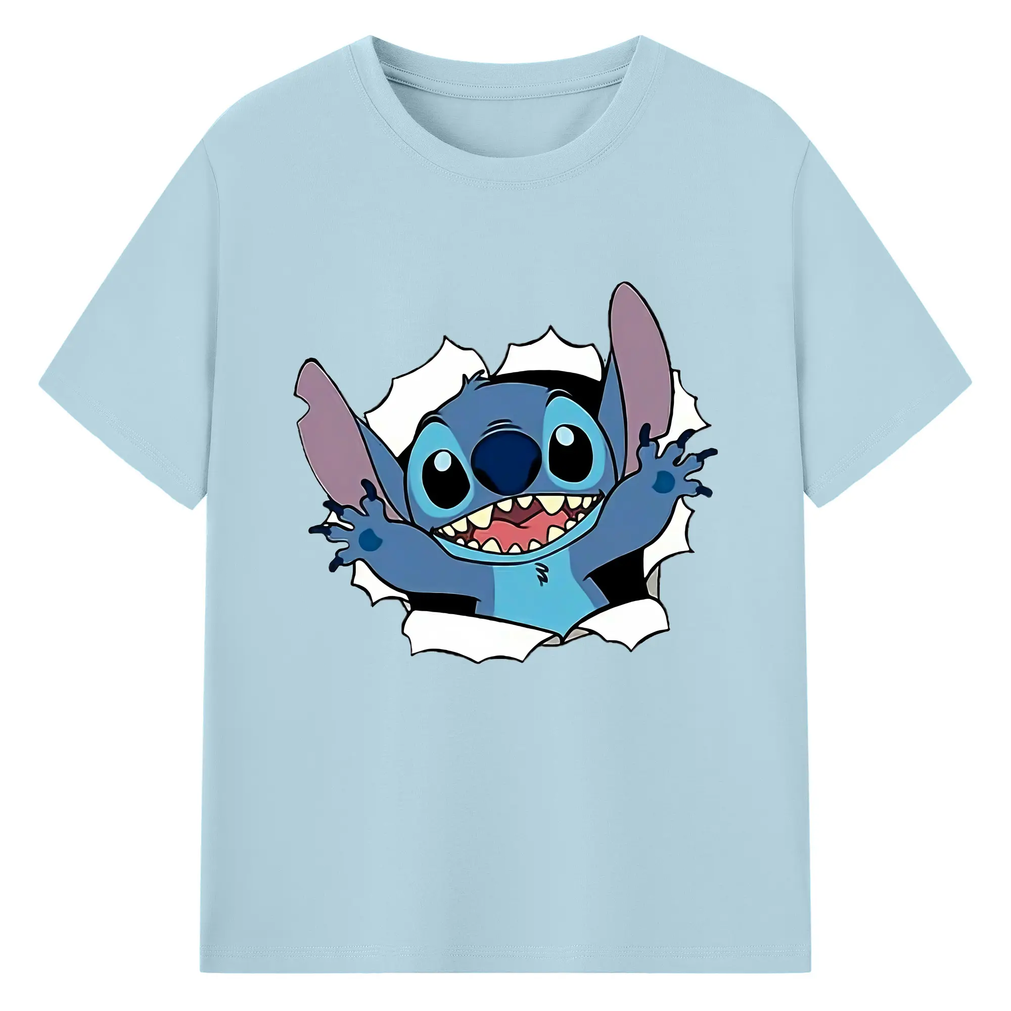 リロ&スティッチ グッズ スティッチ - 綿100% 半袖Tシャツ ・ バックプリント ・ 快適 通気性 ・ 日常使い 散歩 スポーツ用