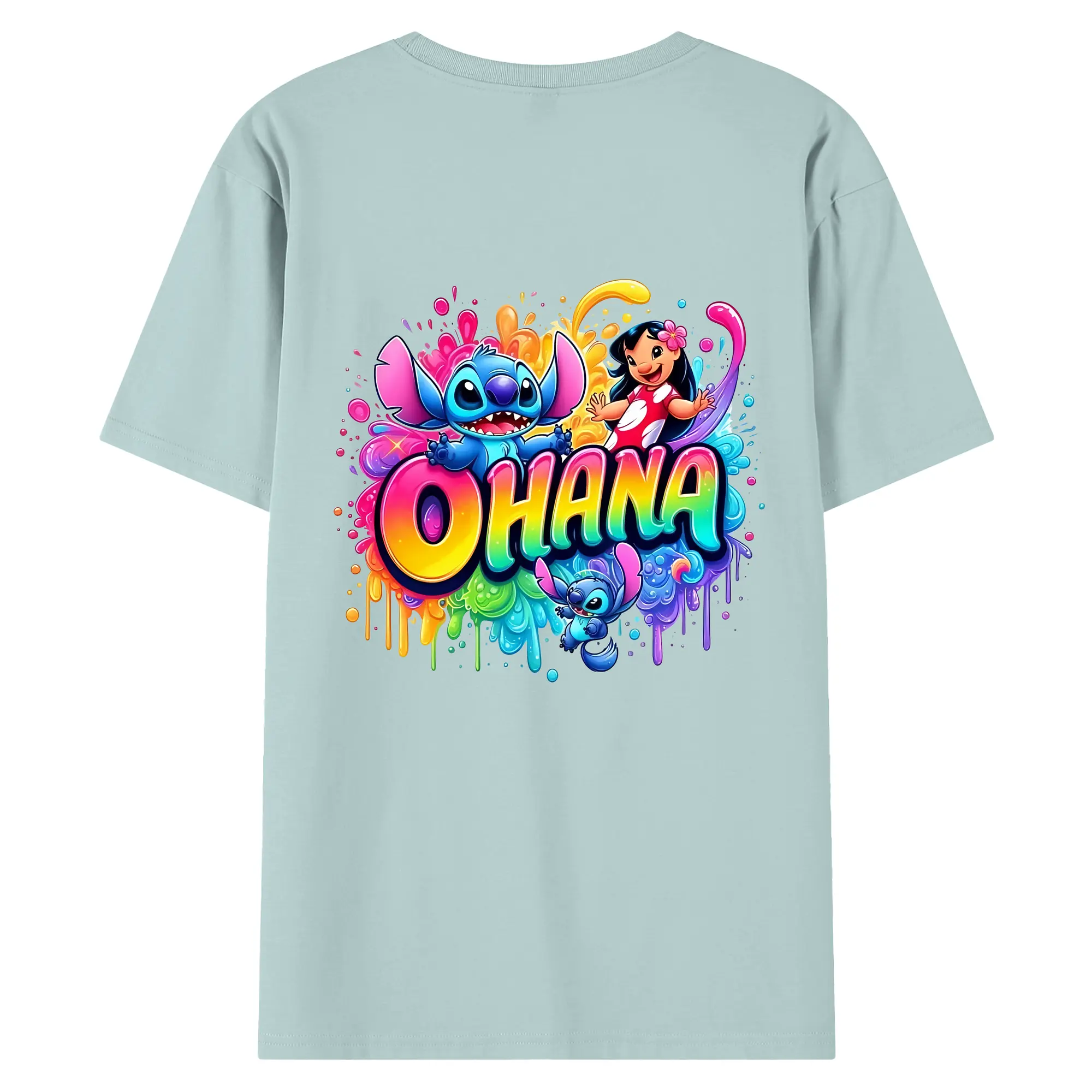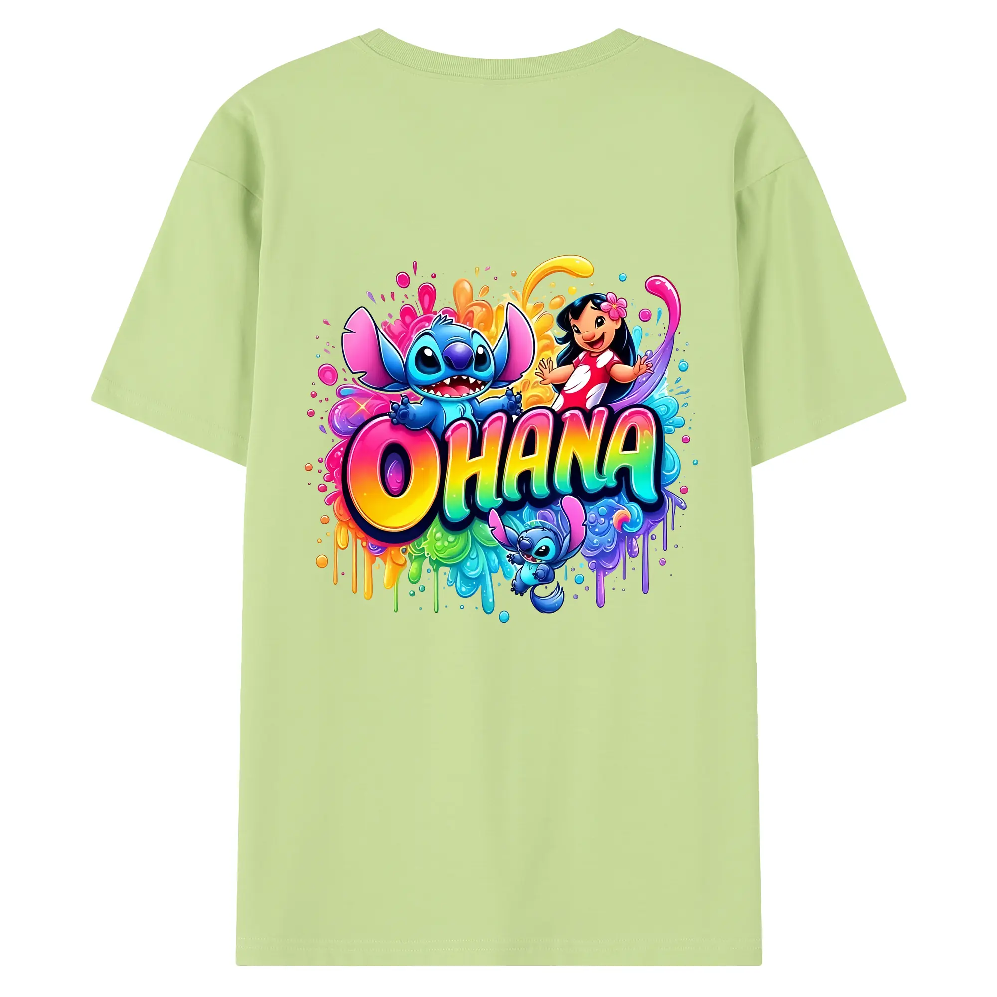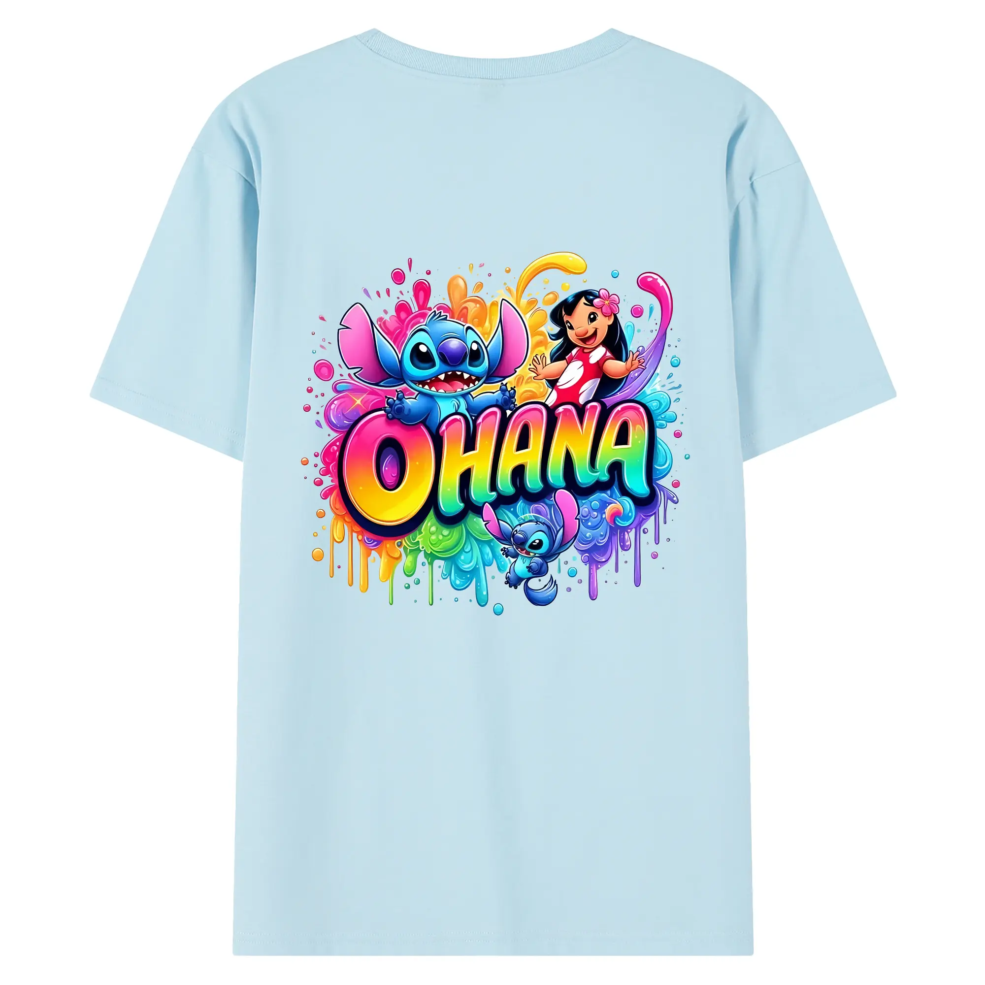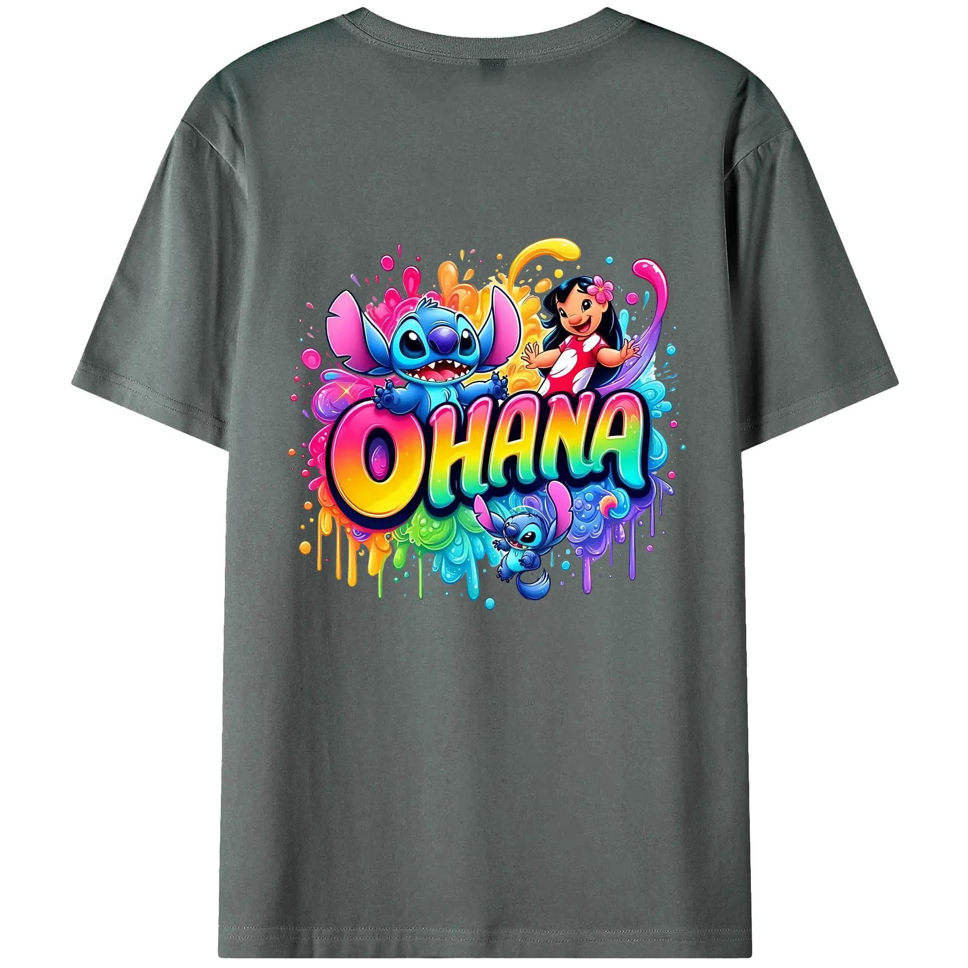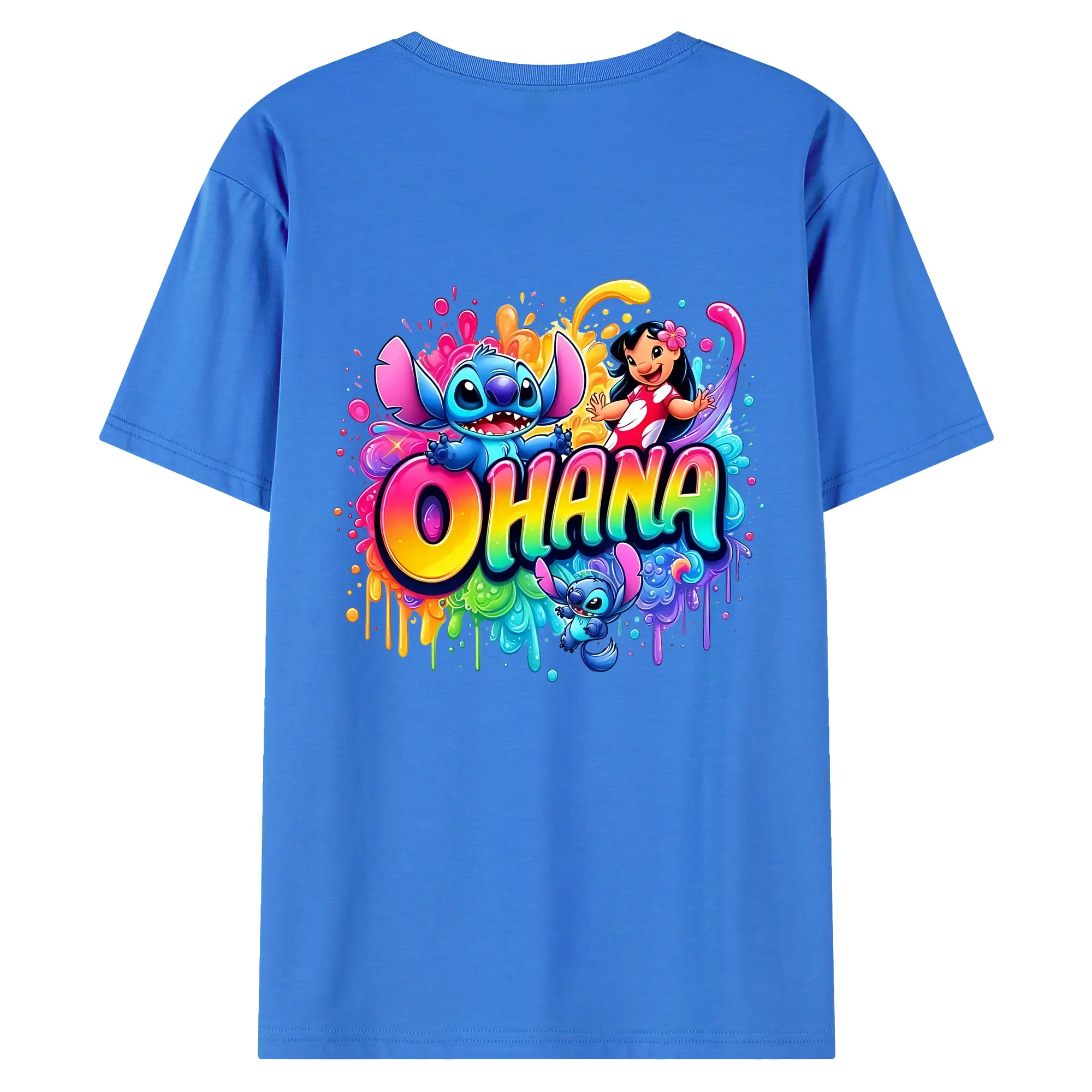 リロ&スティッチ グッズ スティッチ - 綿100% 半袖Tシャツ ・ フロントプリント ・ 快適 通気性 ・ 日常使い 散歩 スポーツ用