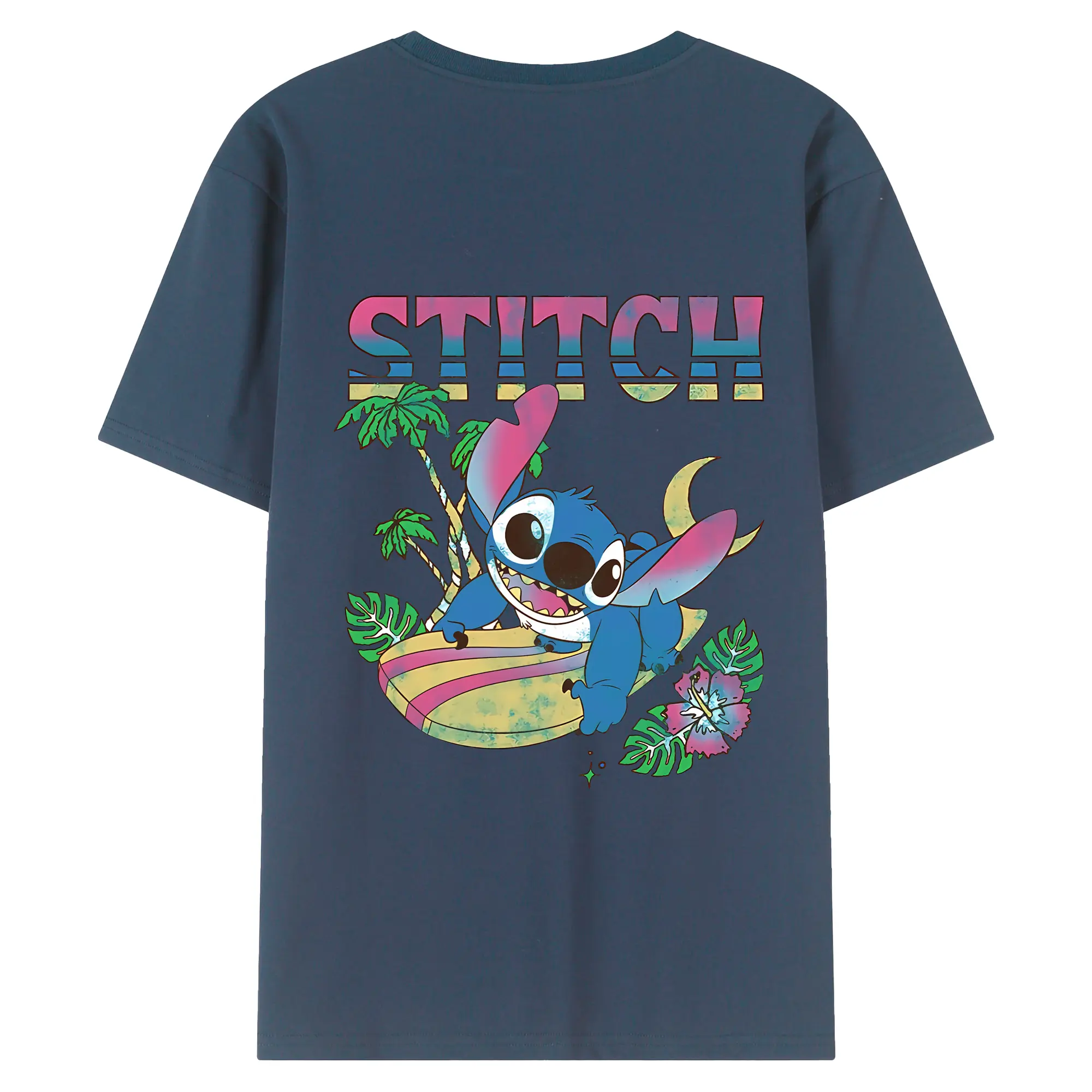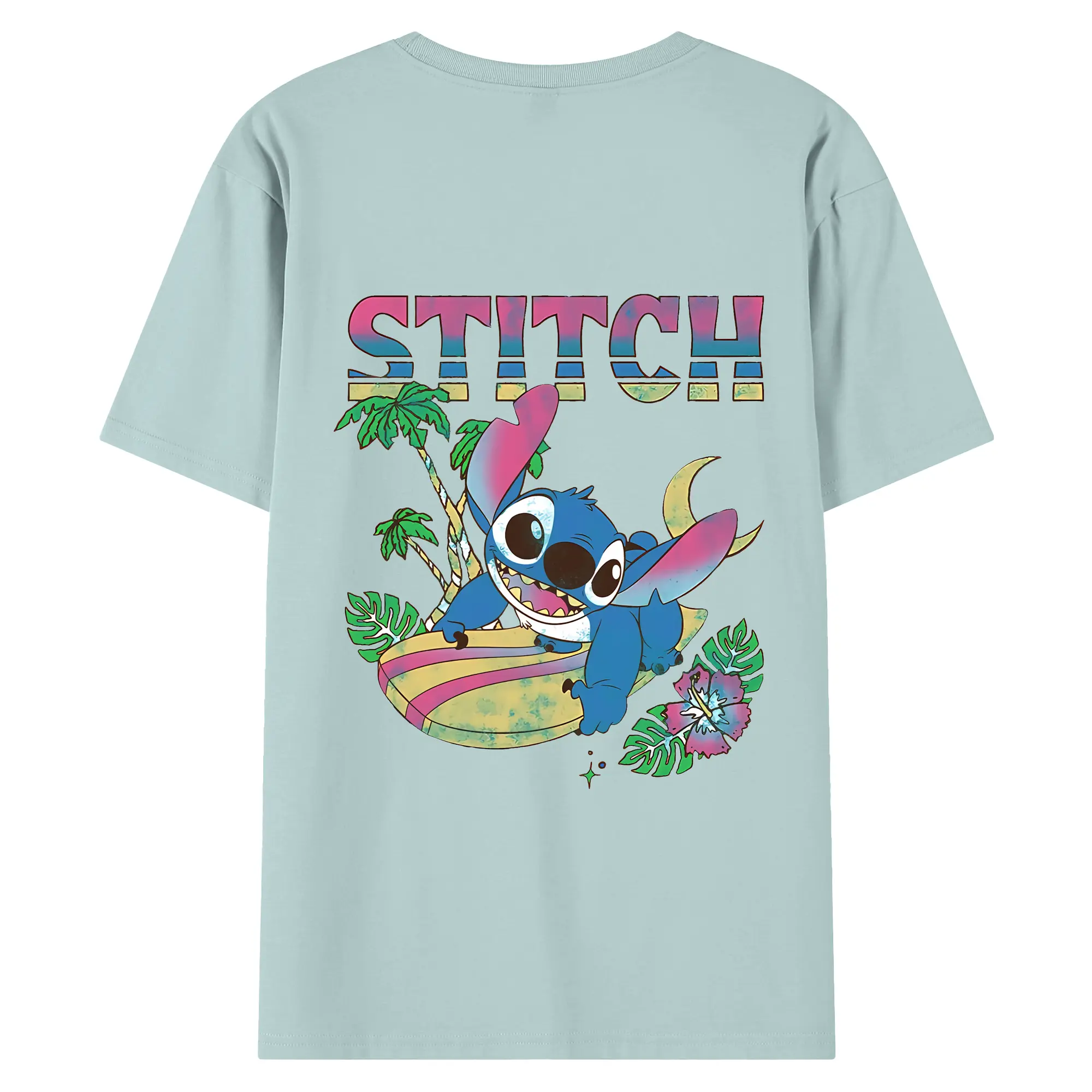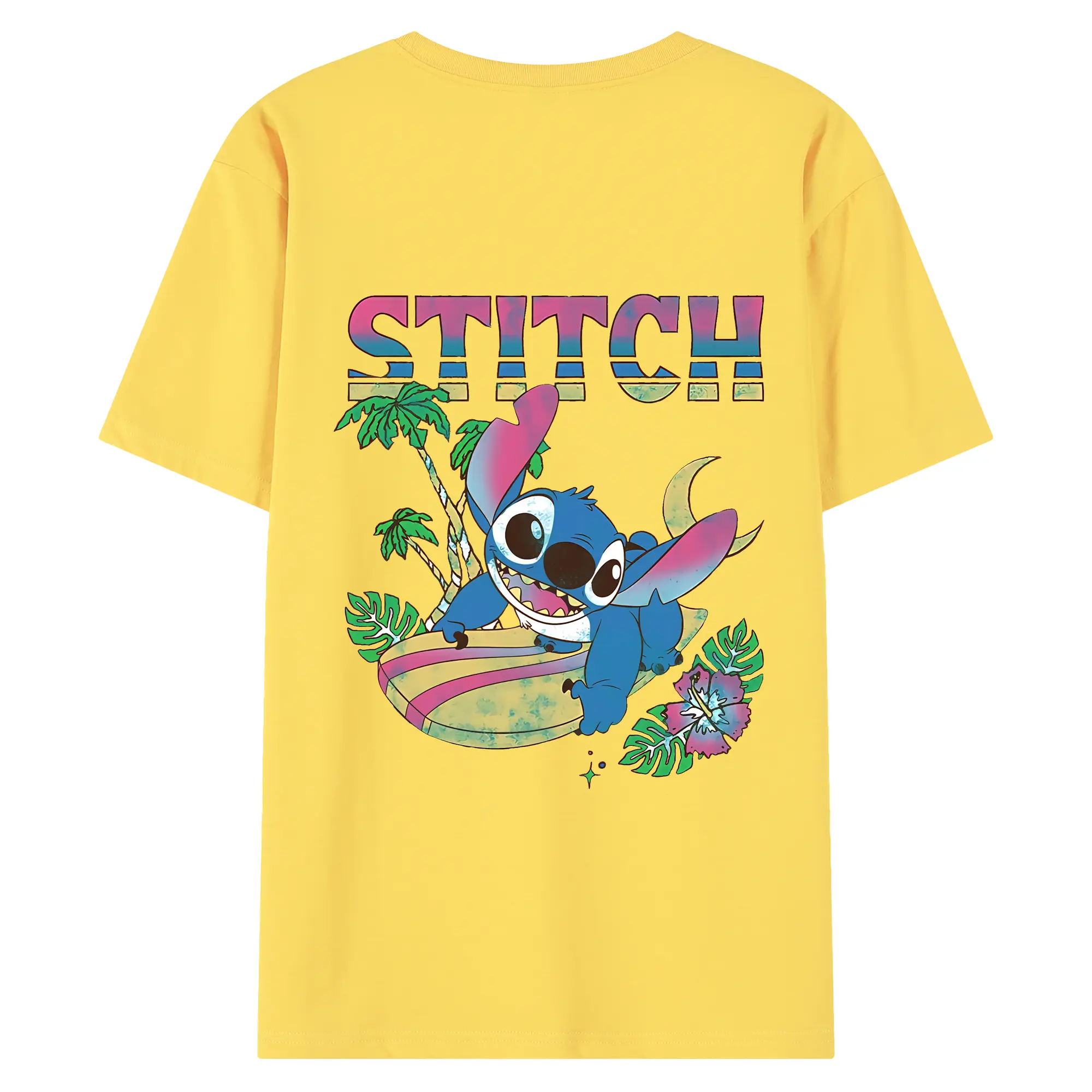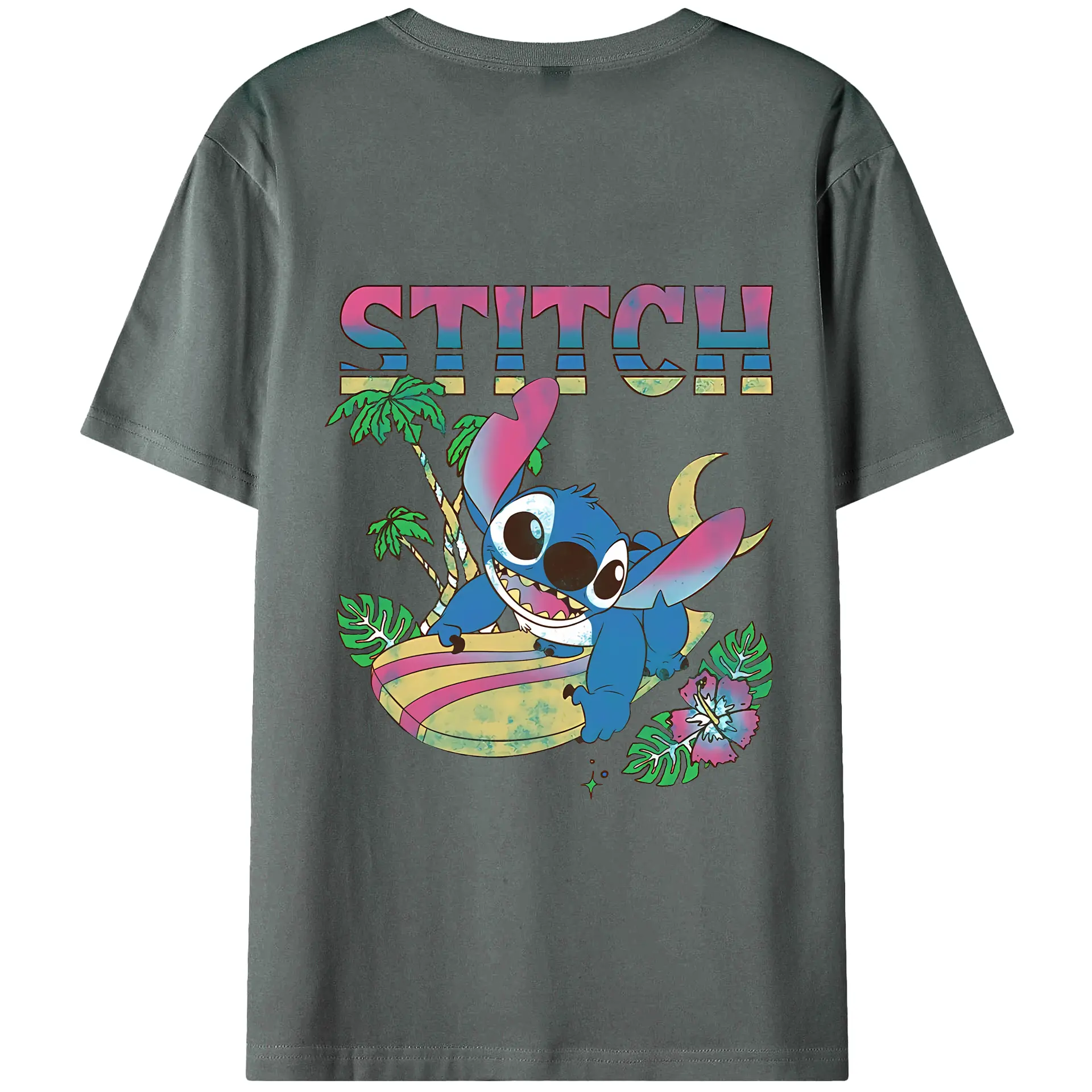 リロ&スティッチ グッズ スティッチ - 綿100% ヴィンテージ風 半袖Tシャツ ・ 背面プリント ・ 柔らか肌触り ・ 通気性 快適 ・ スポーツ カジュアル 外出用