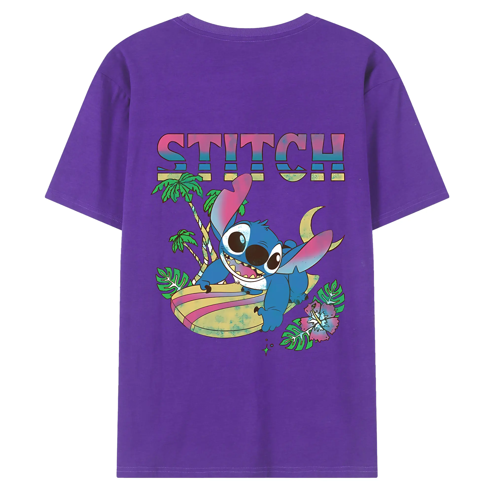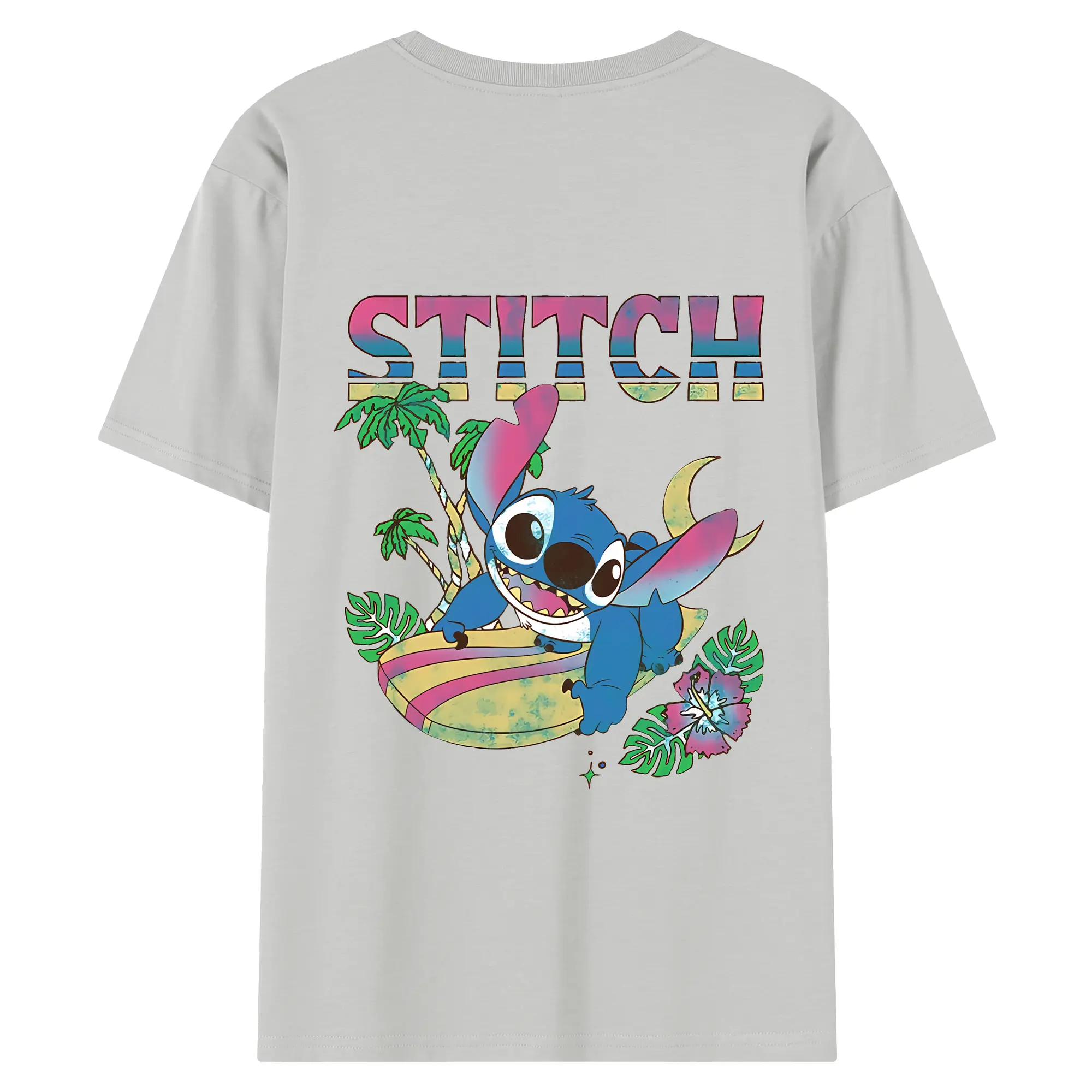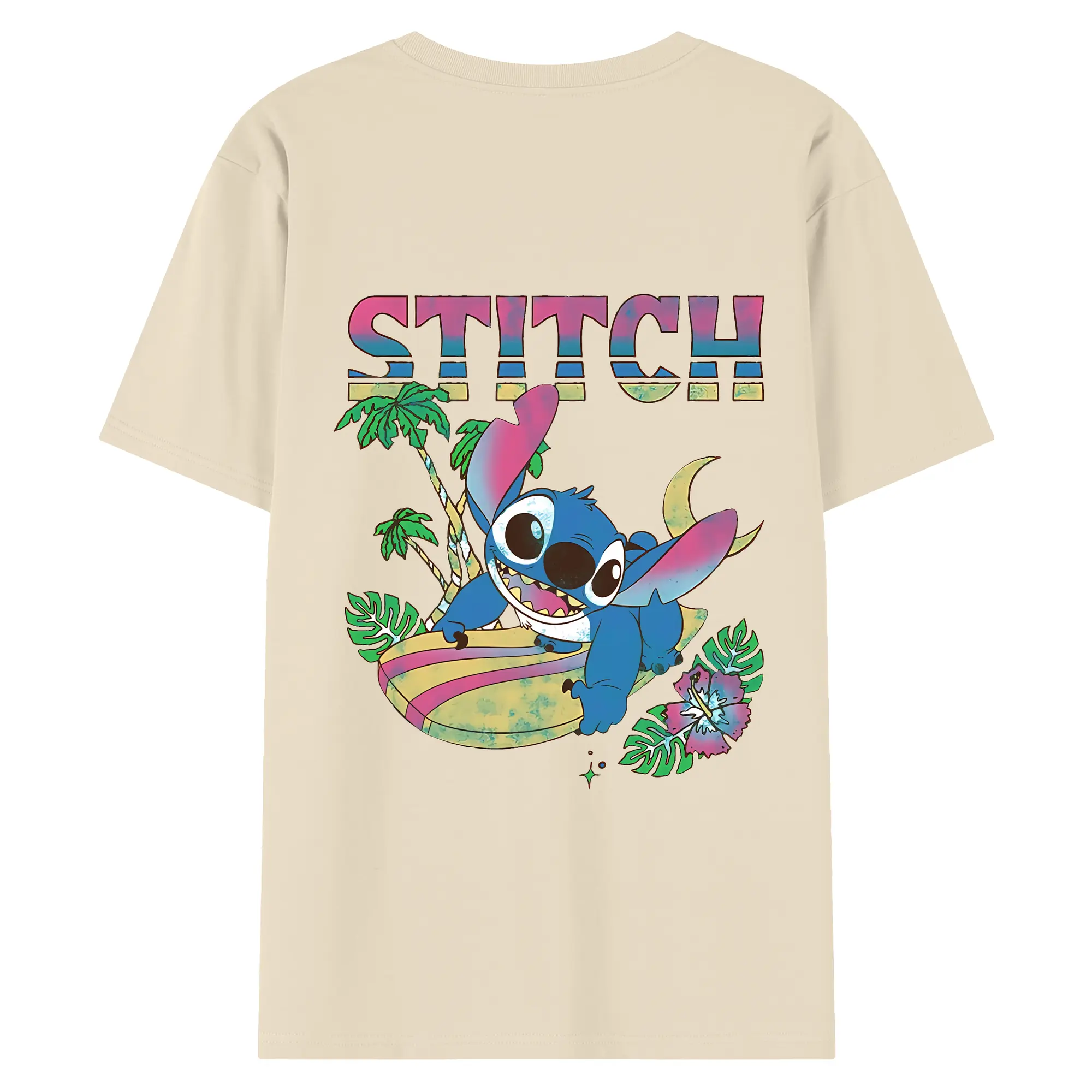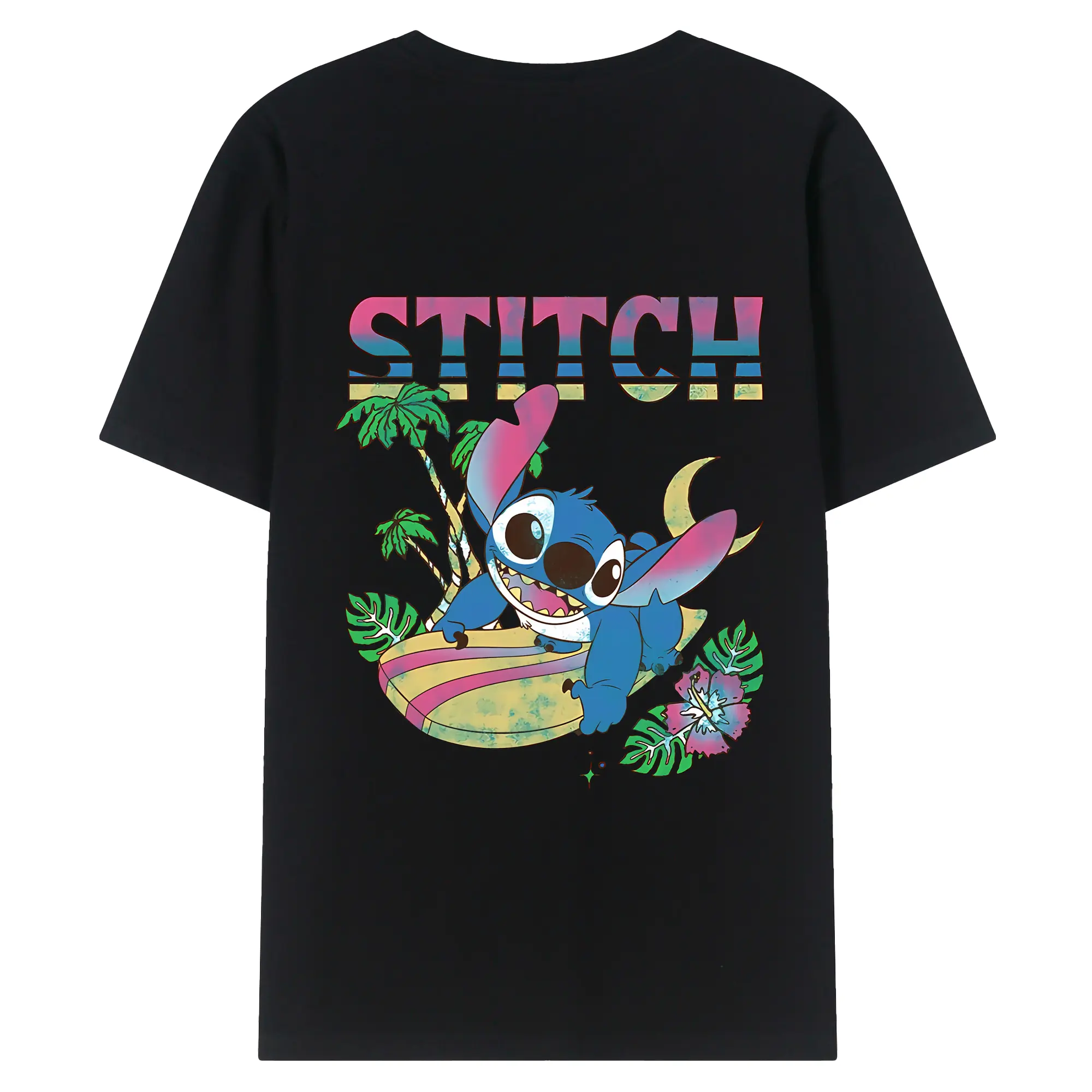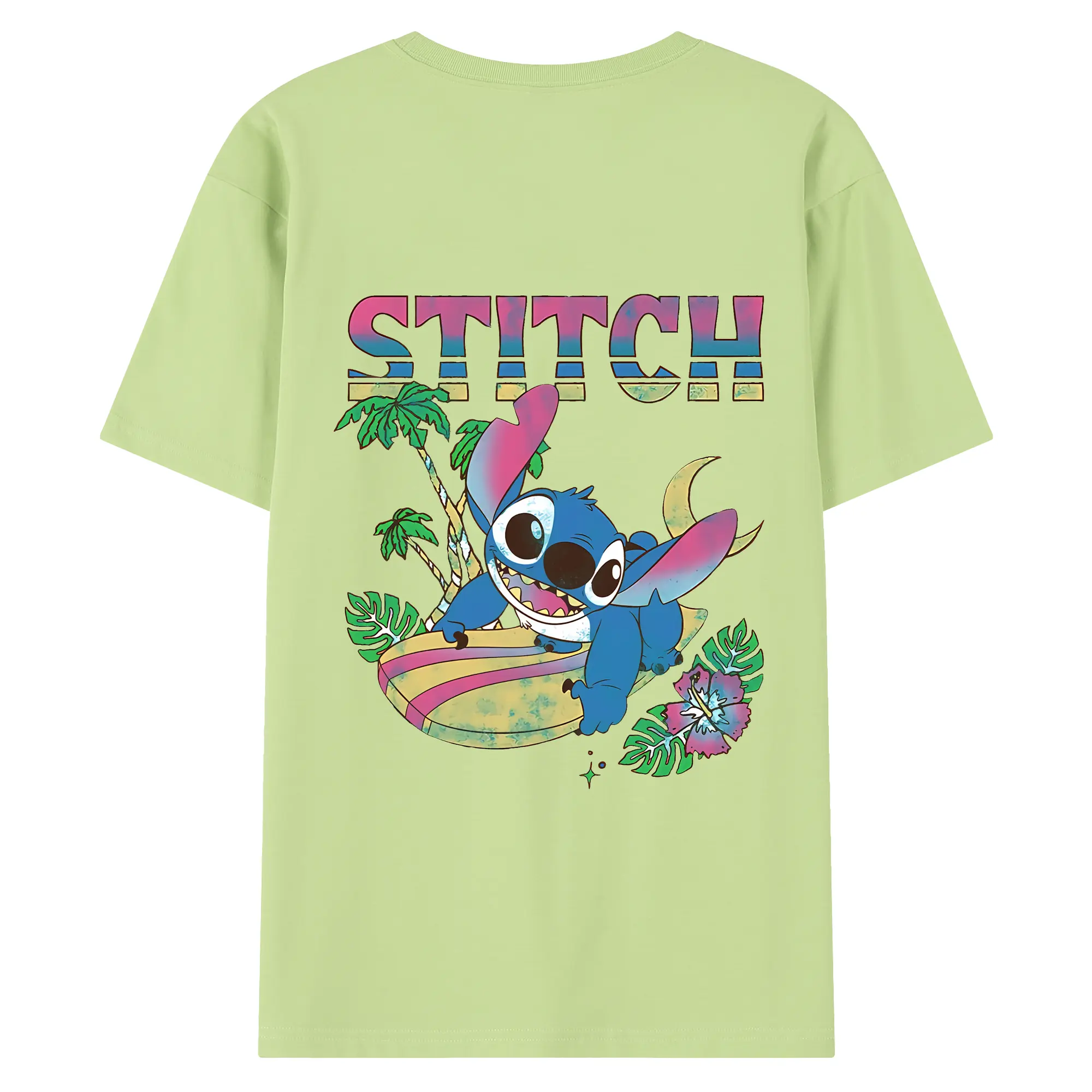 リロ&スティッチ グッズ スティッチ - 綿100% ヴィンテージ風 半袖Tシャツ ・ 背面プリント ・ 柔らか肌触り ・ 通気性 快適 ・ スポーツ カジュアル 外出用
