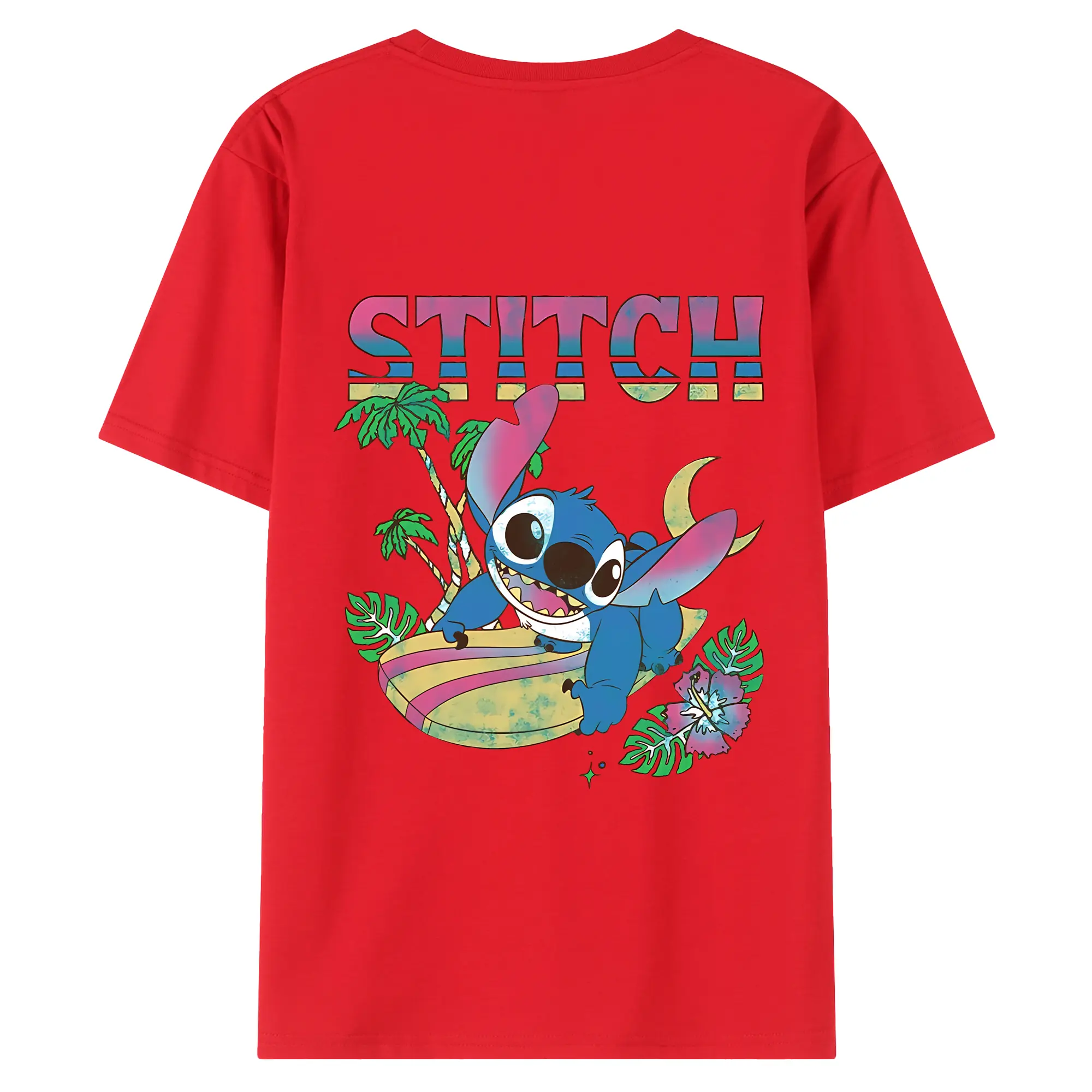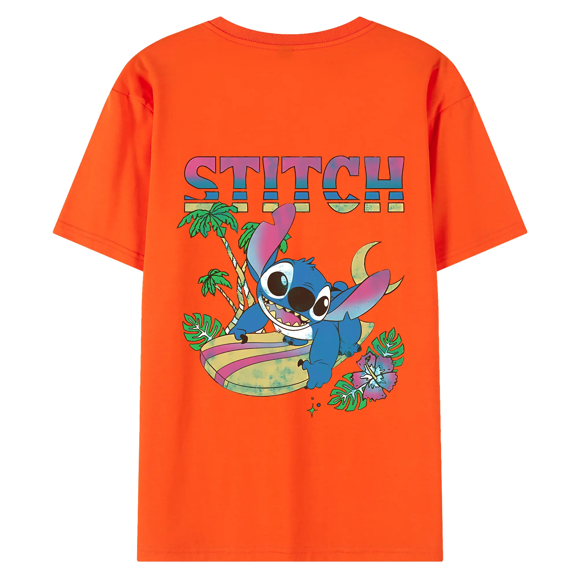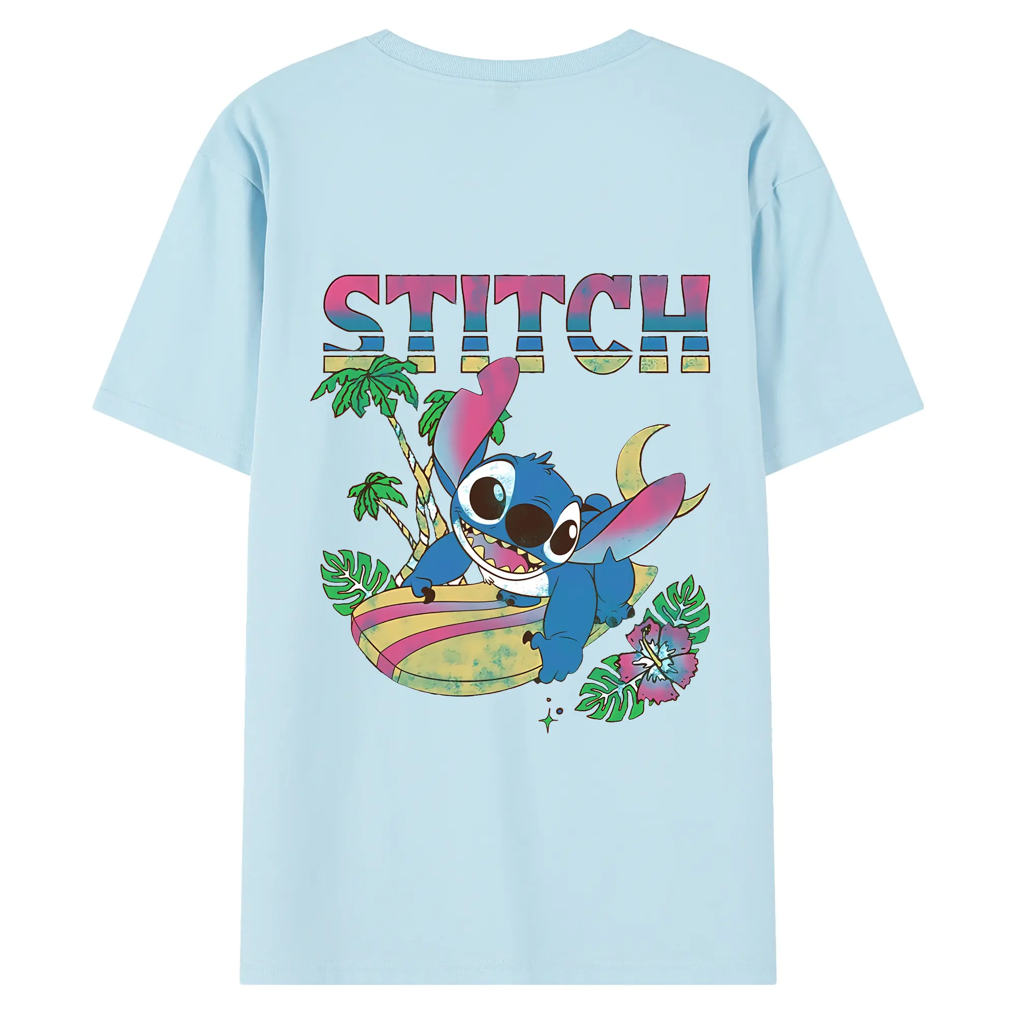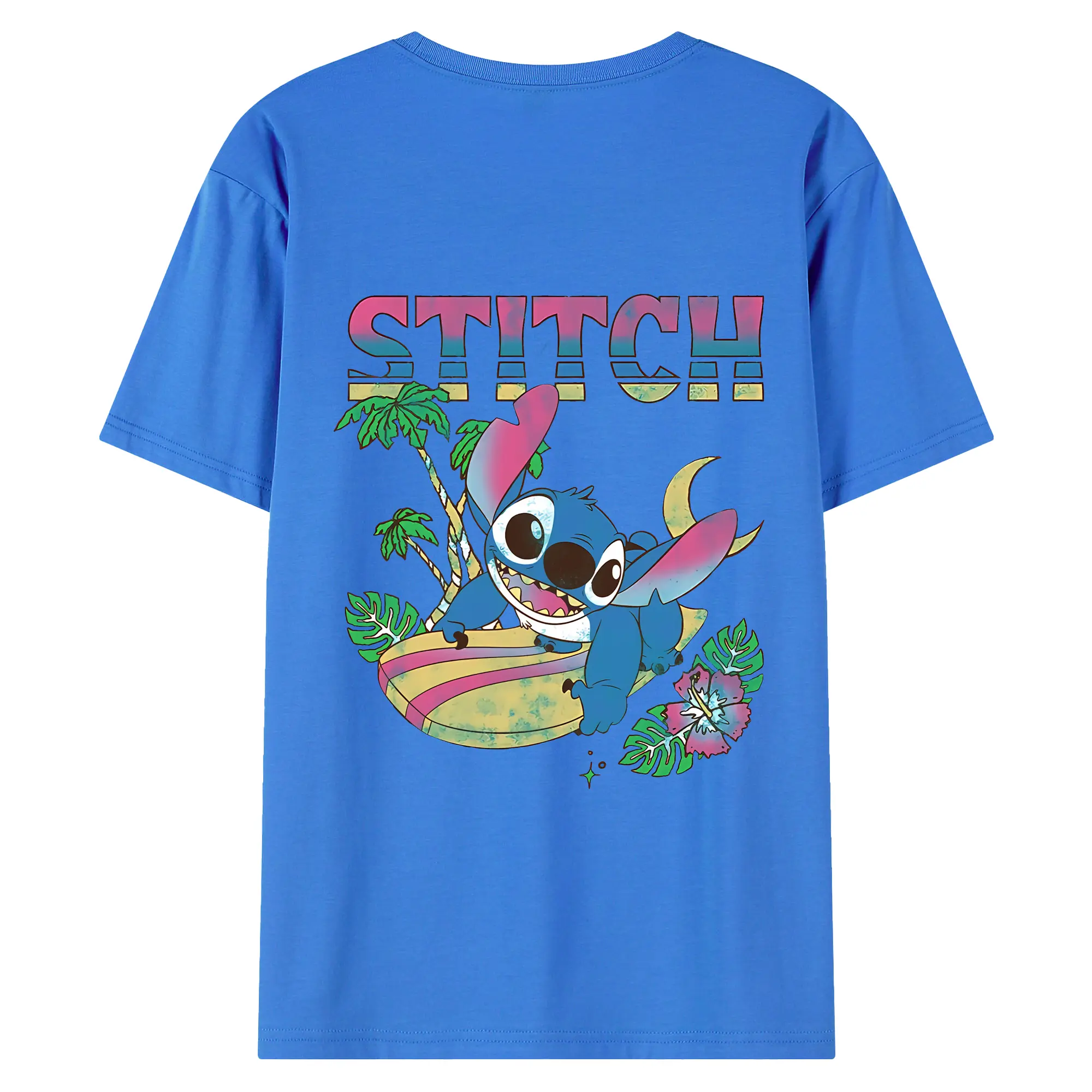 リロ&スティッチ グッズ スティッチ - 綿100% 半袖Tシャツ ・ フロントプリント ・ 快適 通気性 ・ 日常使い 散歩 スポーツ用