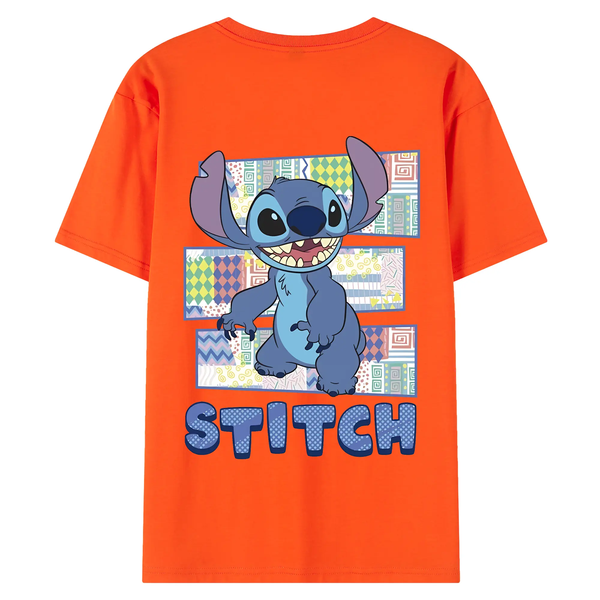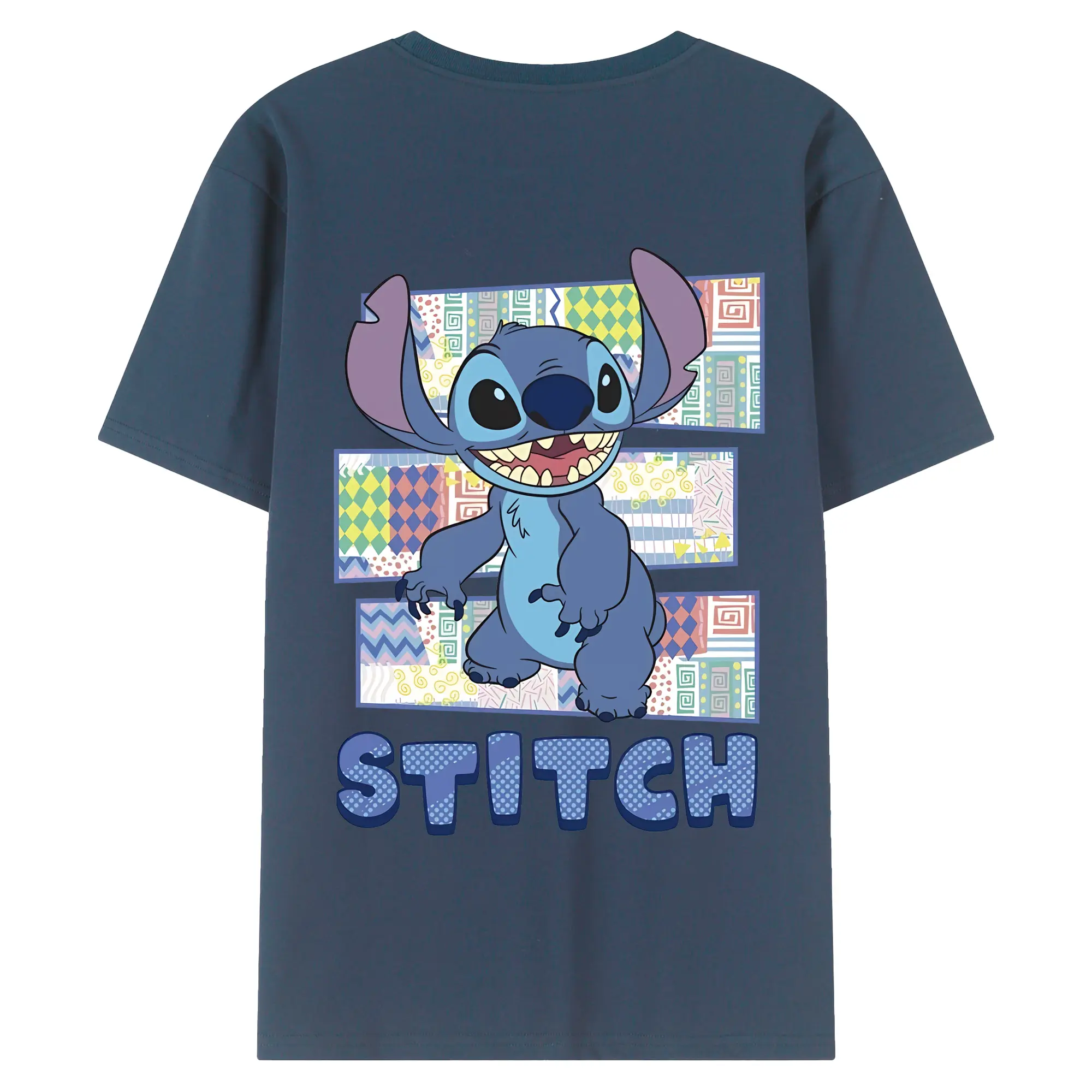 リロ&スティッチ グッズ スティッチ - 綿100% 半袖Tシャツ ・ フロントプリント ・ 快適 通気性 ・ 日常使い 散歩 スポーツ用