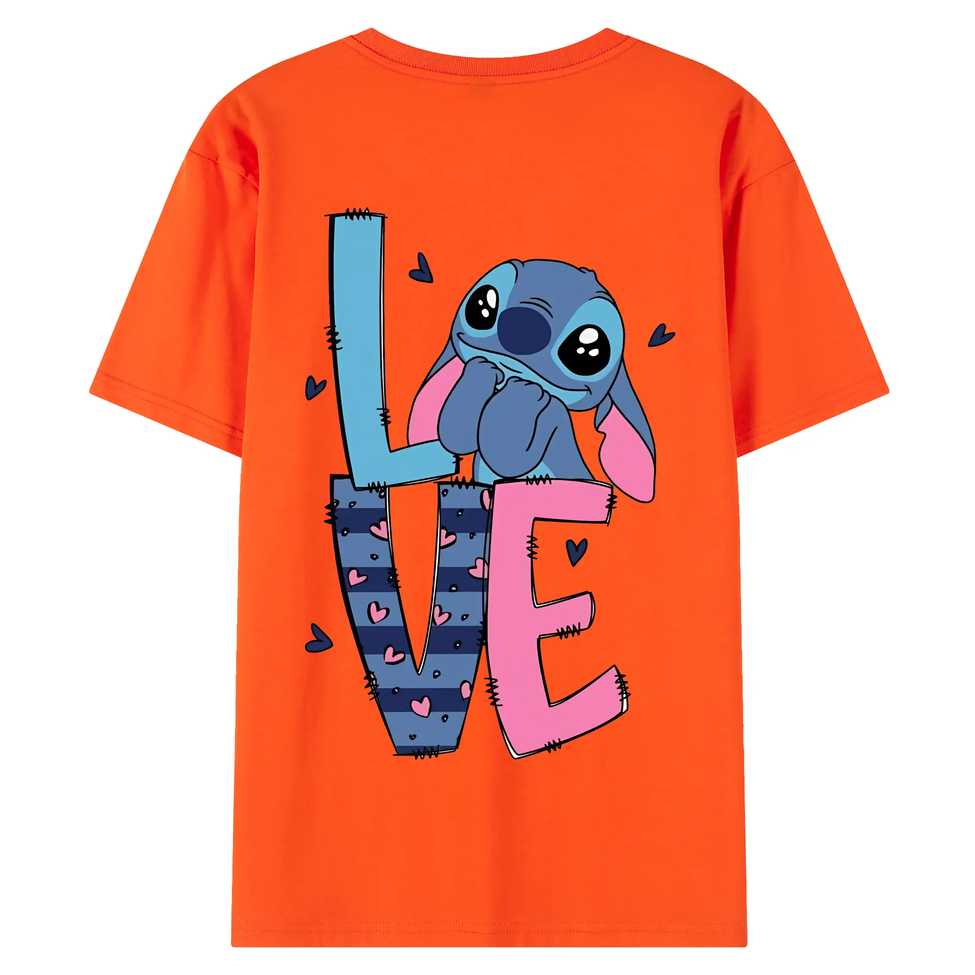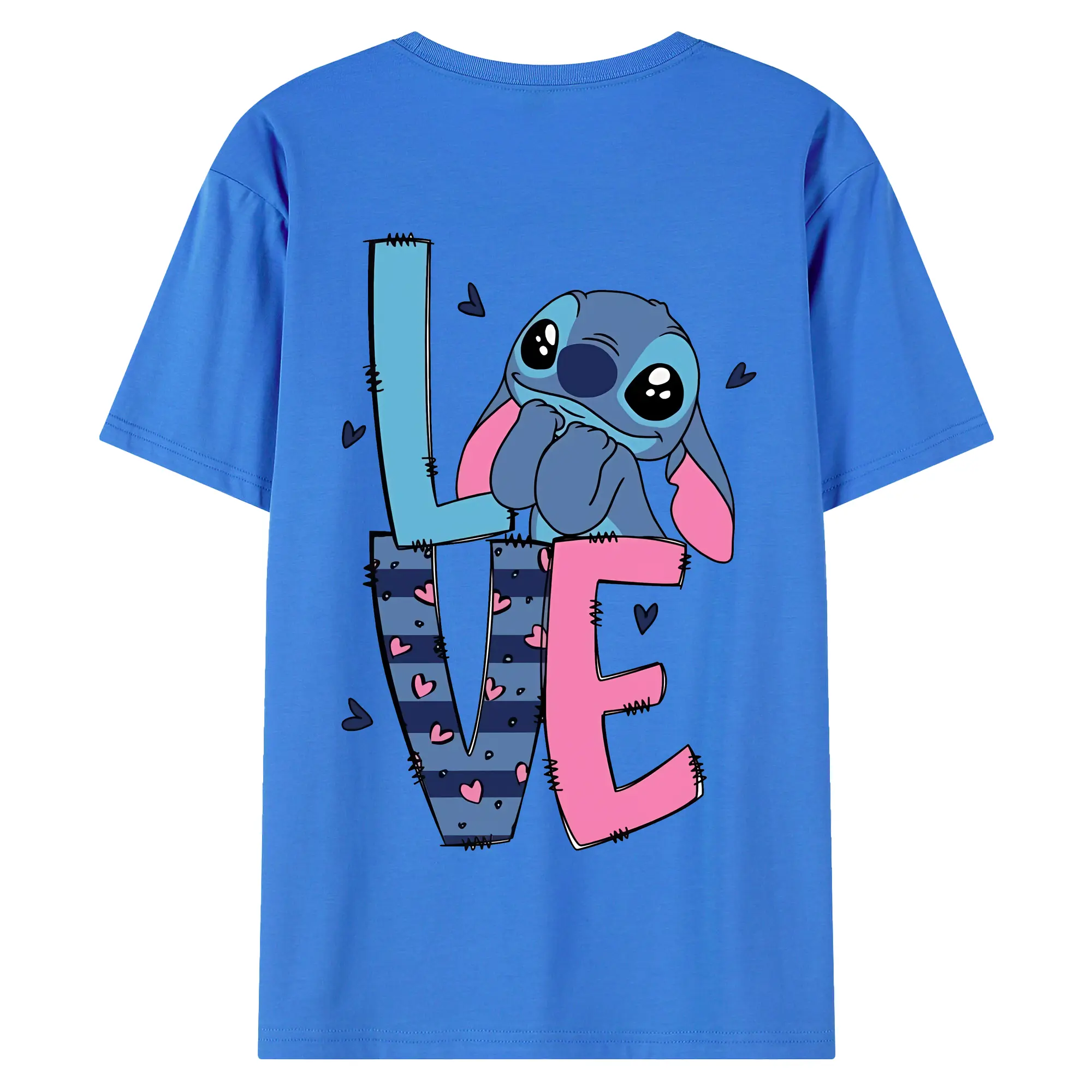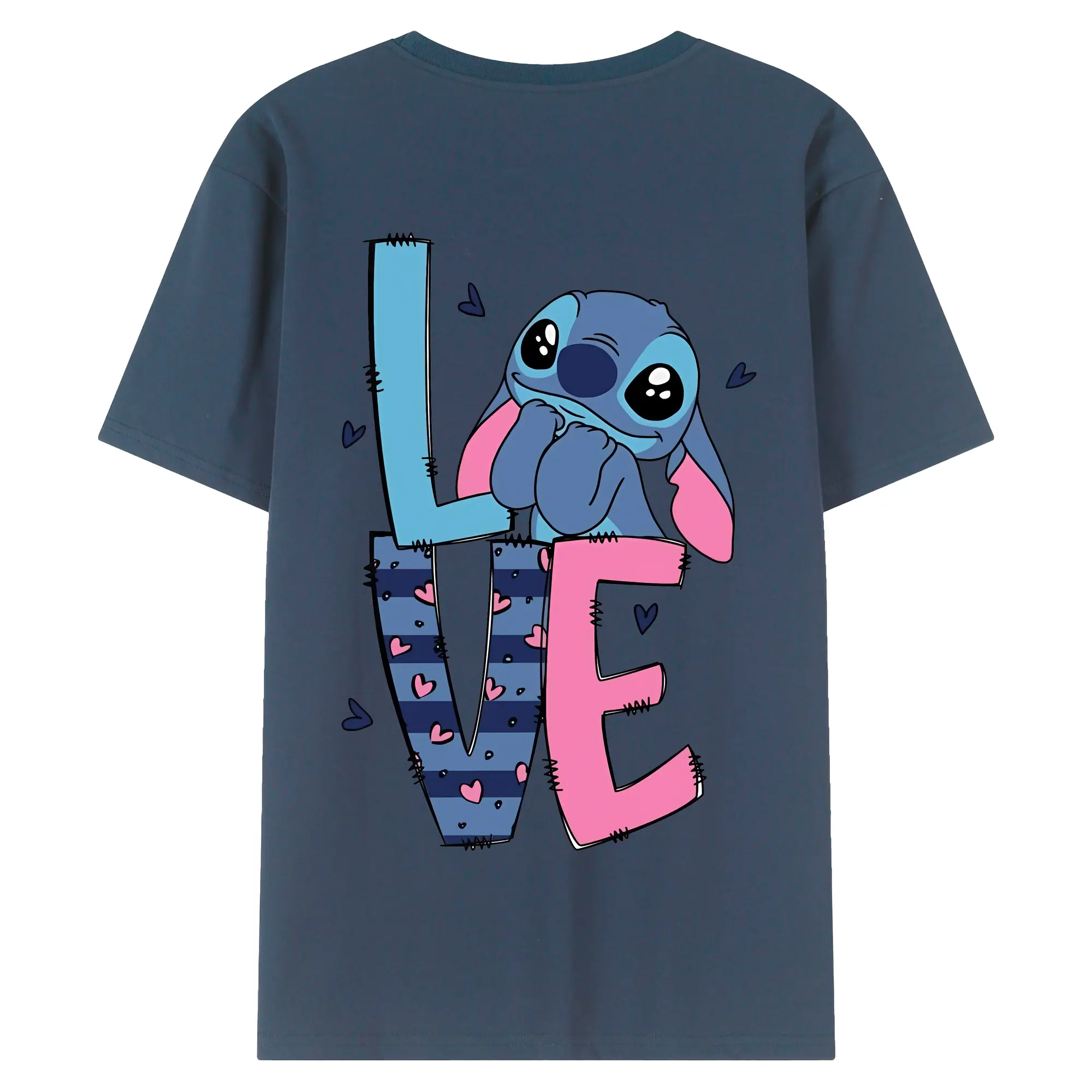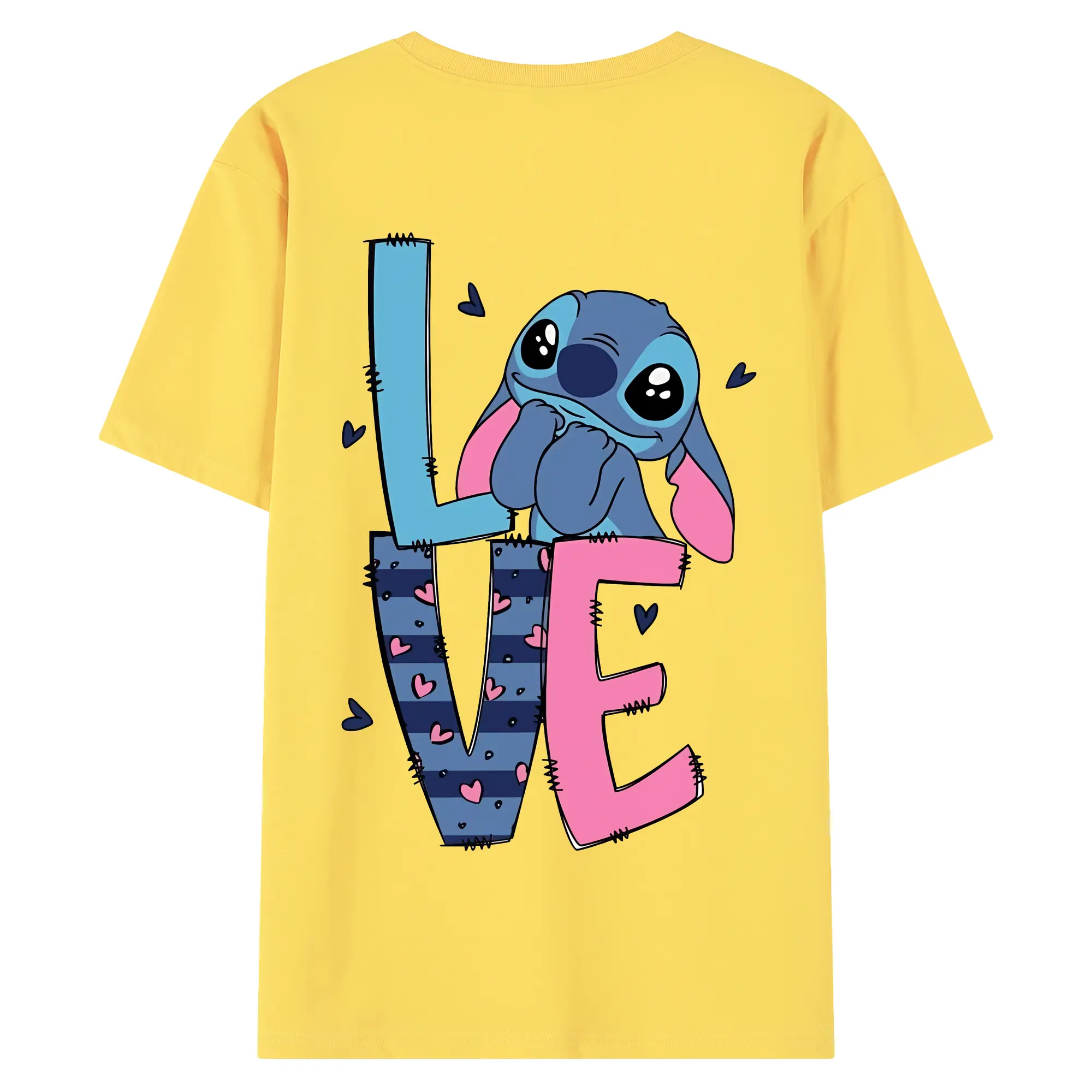 リロ&スティッチ グッズ スティッチ - 綿100% 半袖Tシャツ ・ フロントプリント ・ 快適 通気性 ・ 日常使い 散歩 スポーツ用
