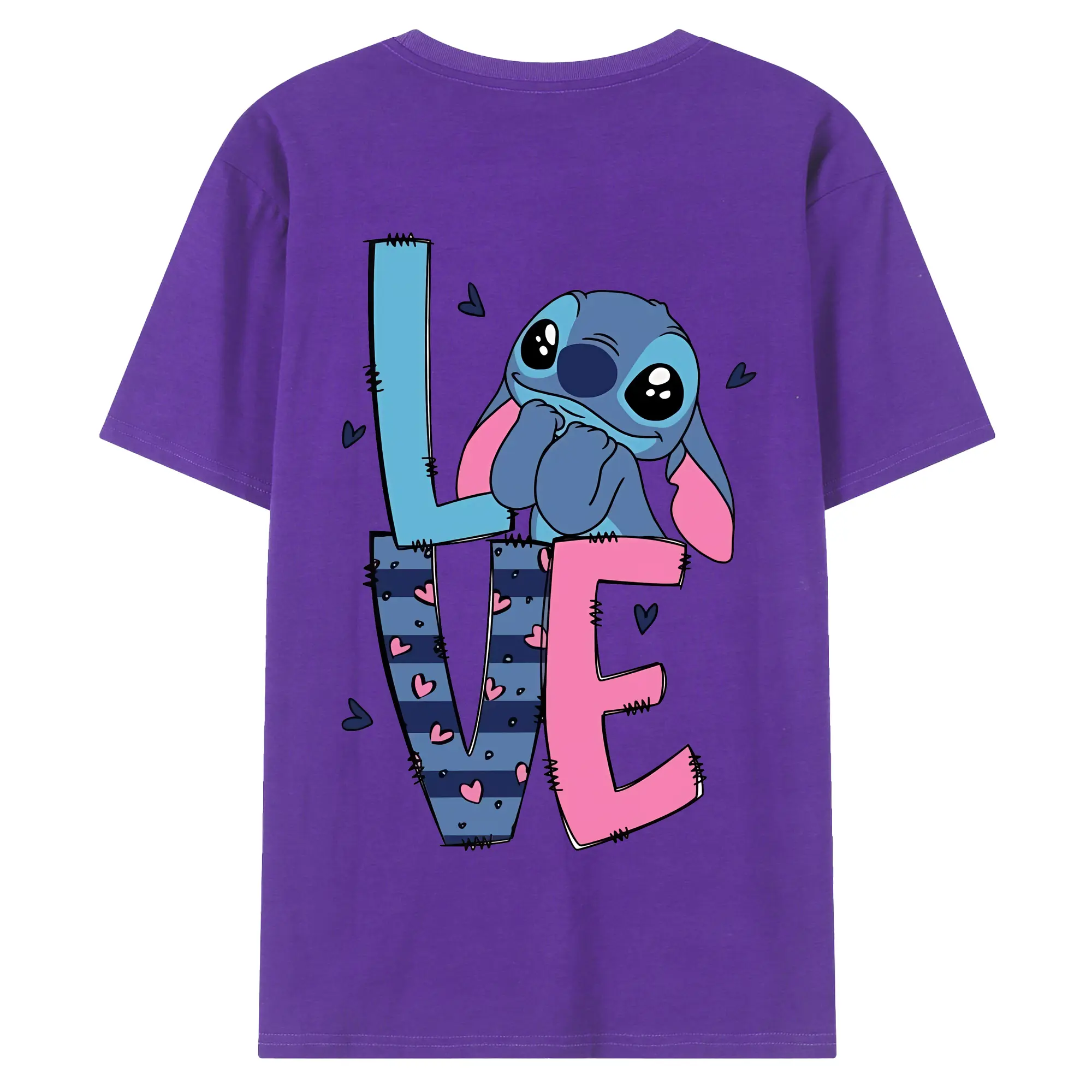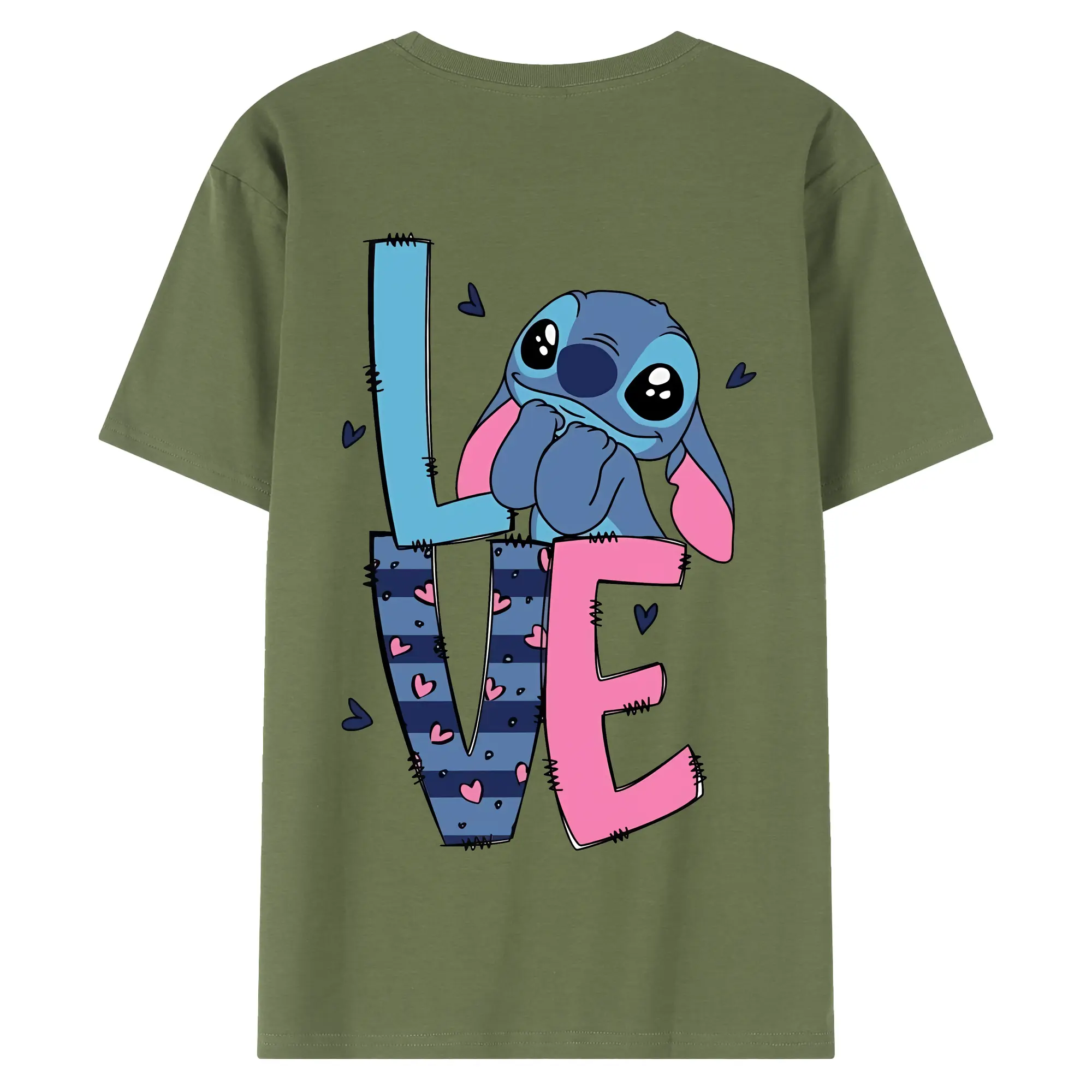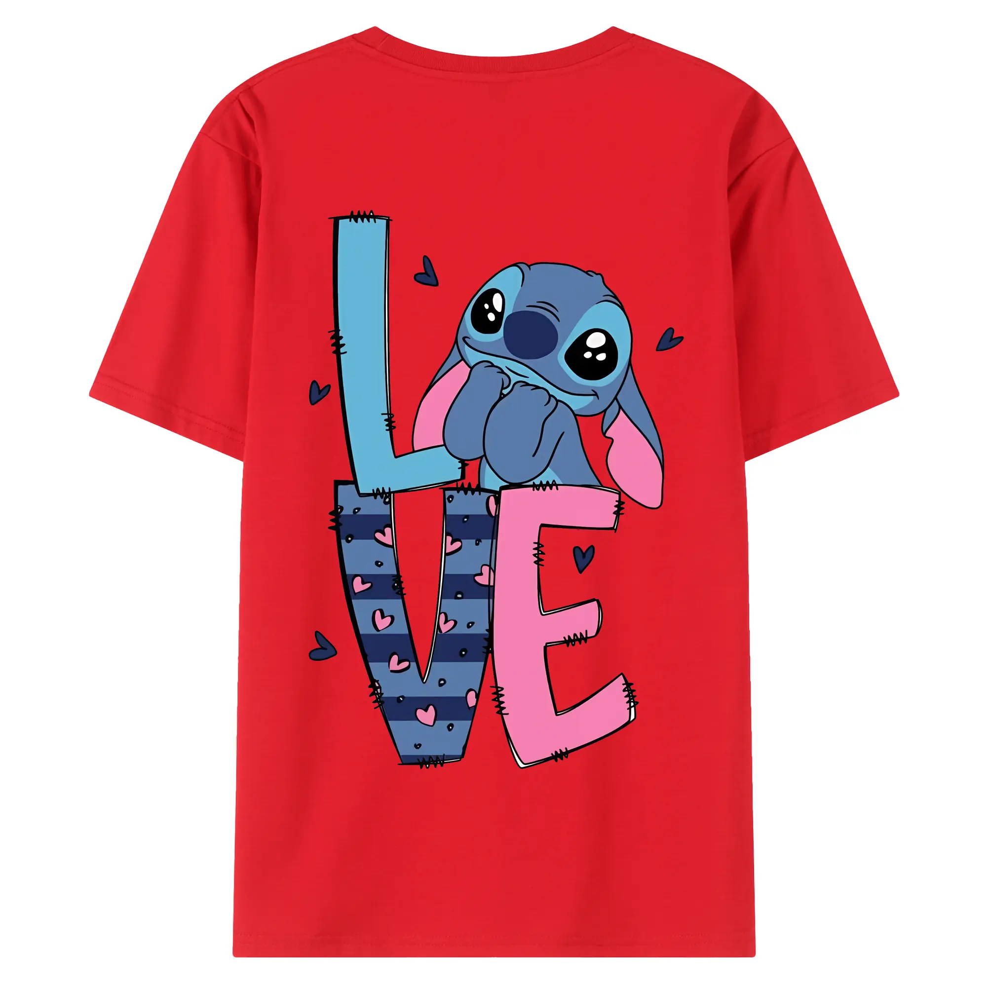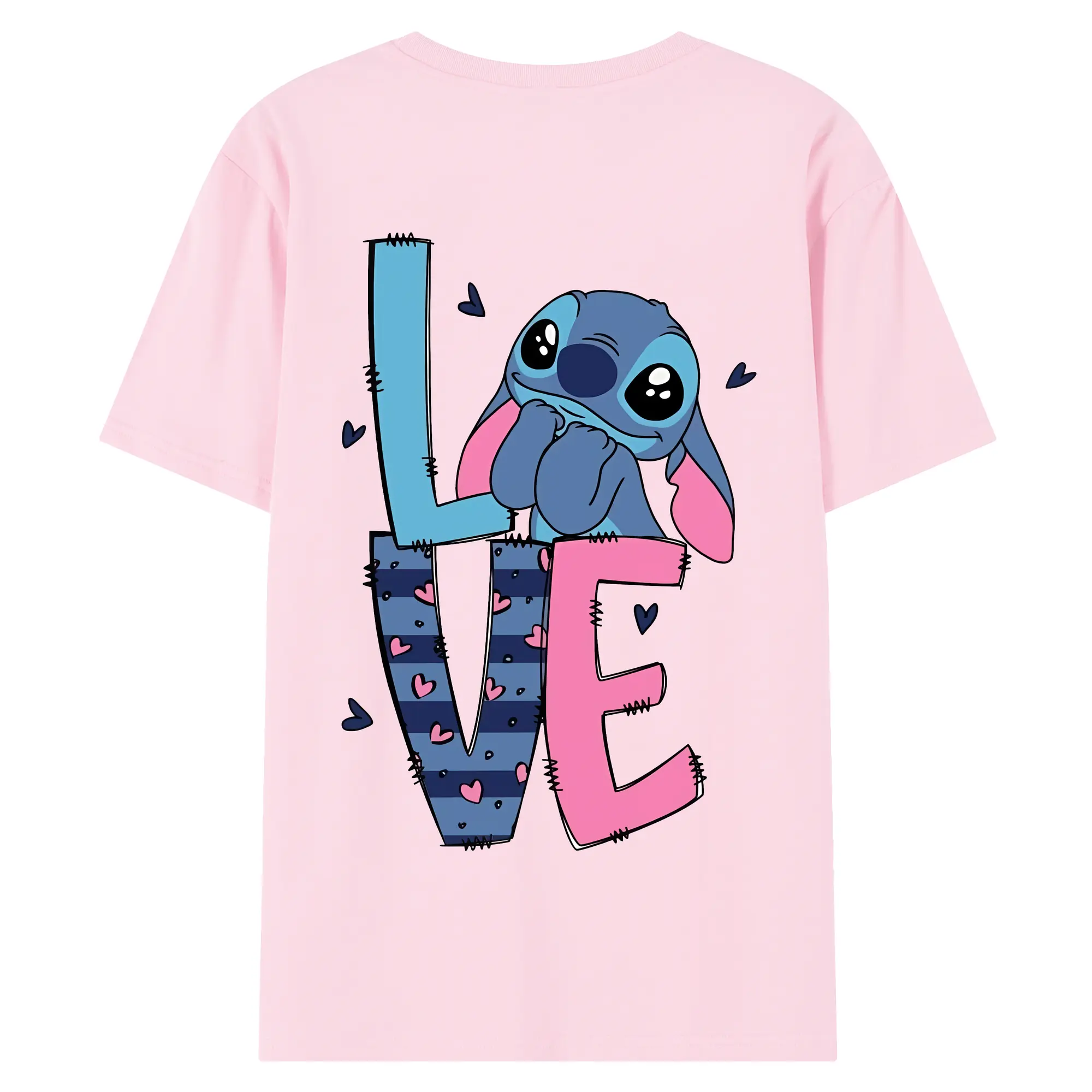 リロ&スティッチ グッズ スティッチ - 綿100% 半袖Tシャツ ・ フロントプリント ・ 快適 通気性 ・ 日常使い 散歩 スポーツ用