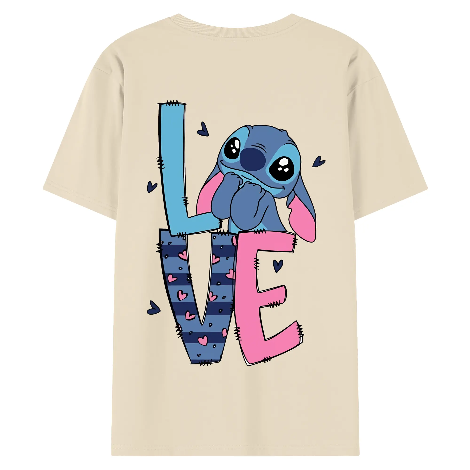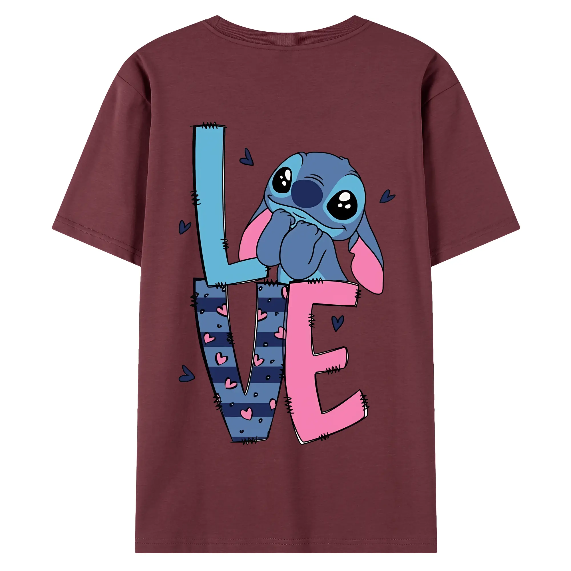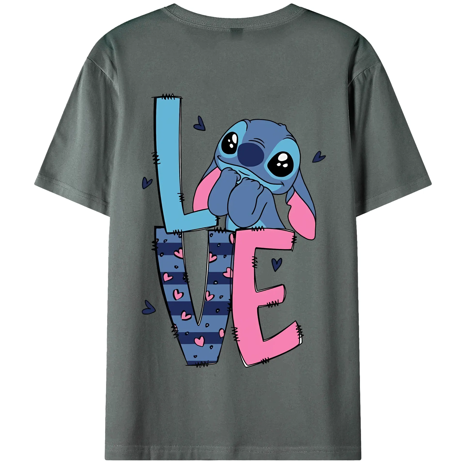 リロ&スティッチ グッズ スティッチ - 綿100% ヴィンテージ風 半袖Tシャツ ・ 背面プリント ・ 柔らか肌触り ・ 通気性 快適 ・ スポーツ カジュアル 外出用