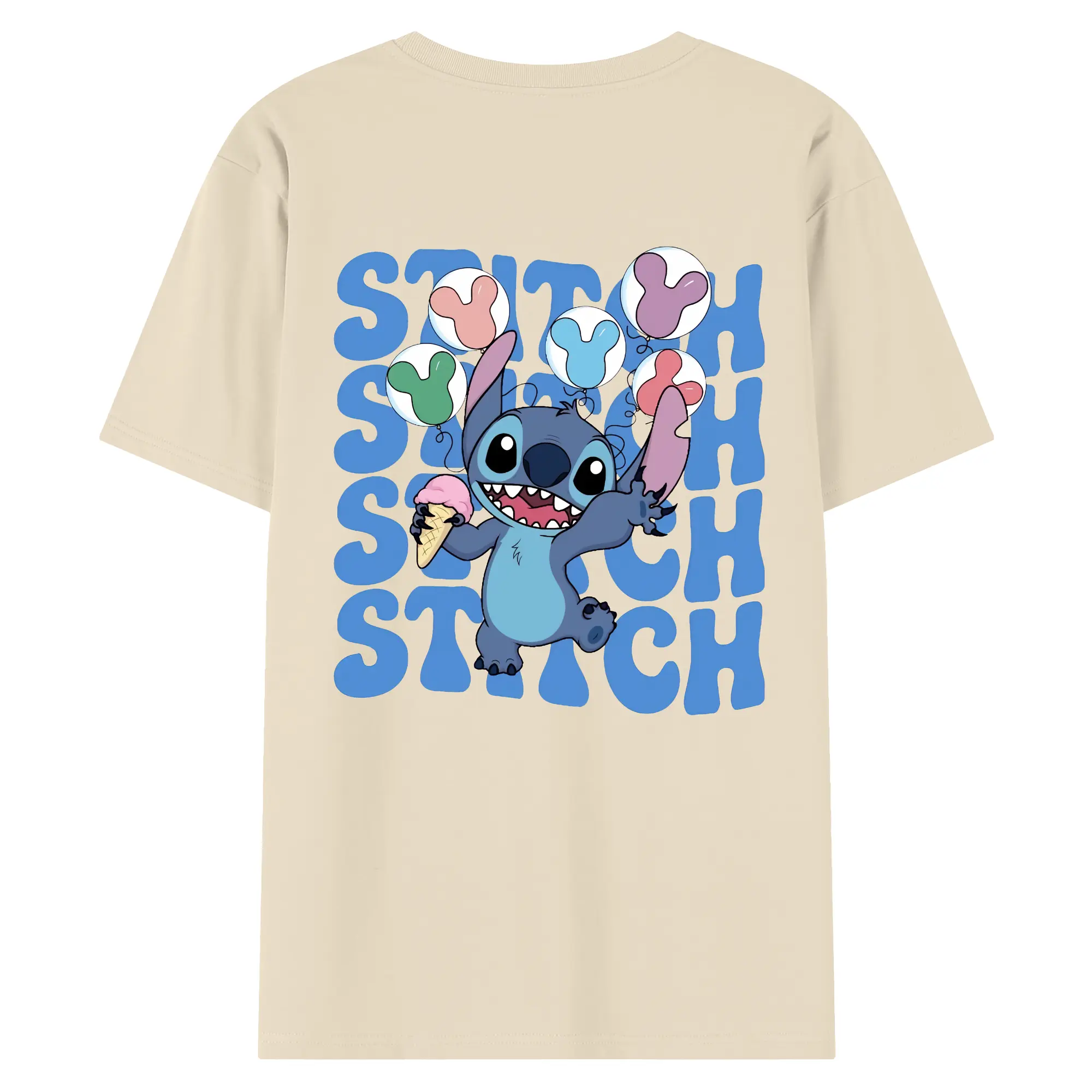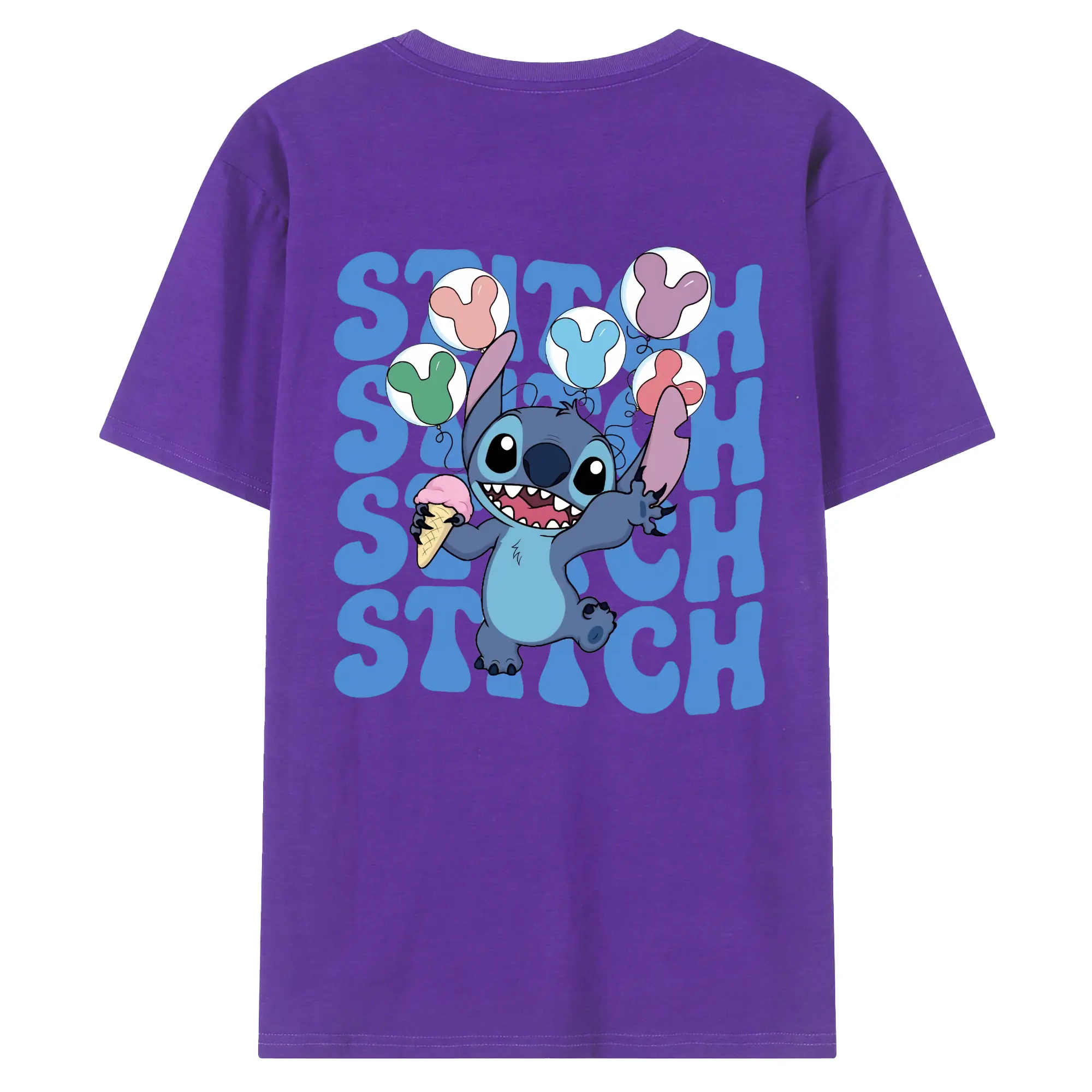 リロ&スティッチ グッズ スティッチ - 綿100% ヴィンテージ風 半袖Tシャツ ・ 背面プリント ・ 柔らか肌触り ・ 通気性 快適 ・ スポーツ カジュアル 外出用