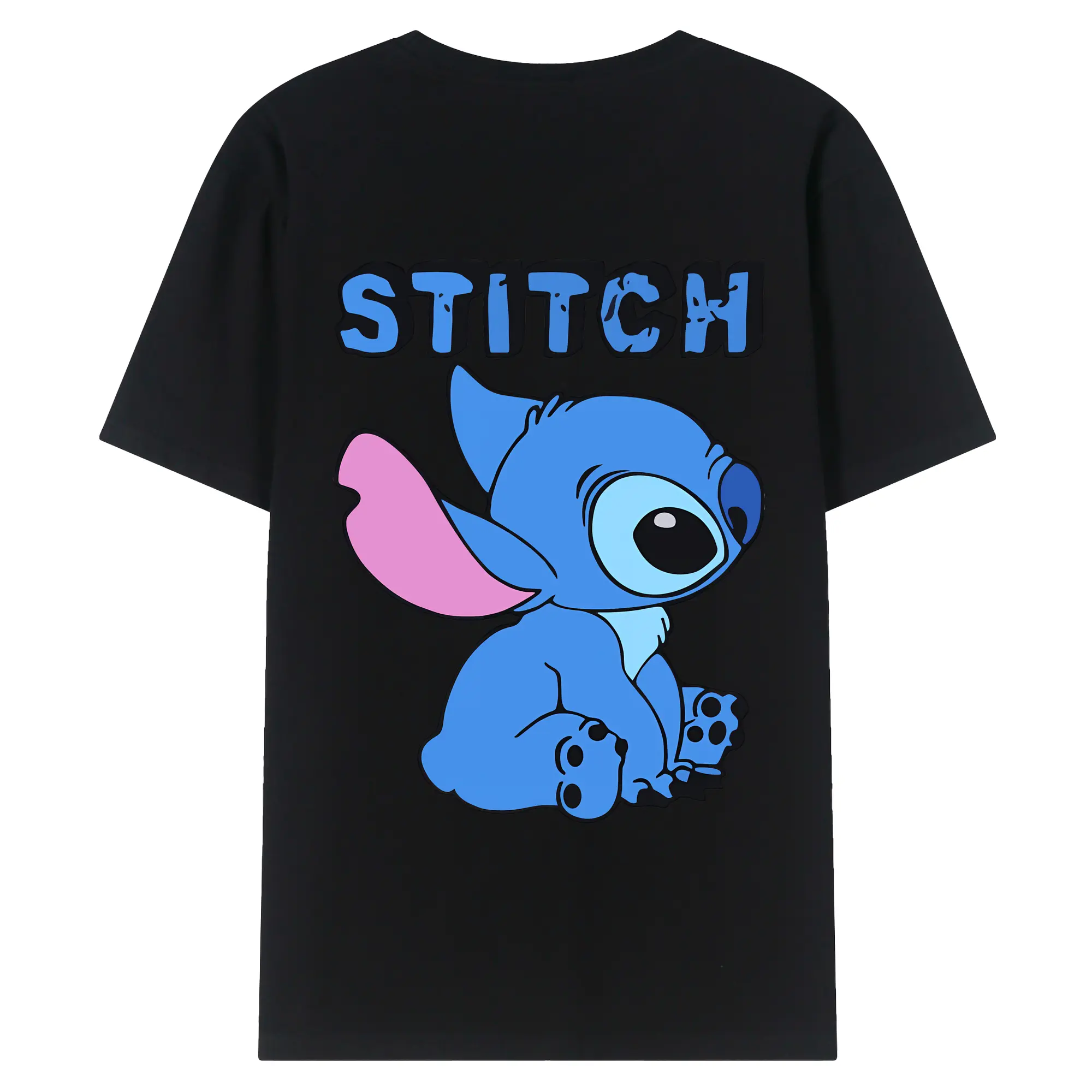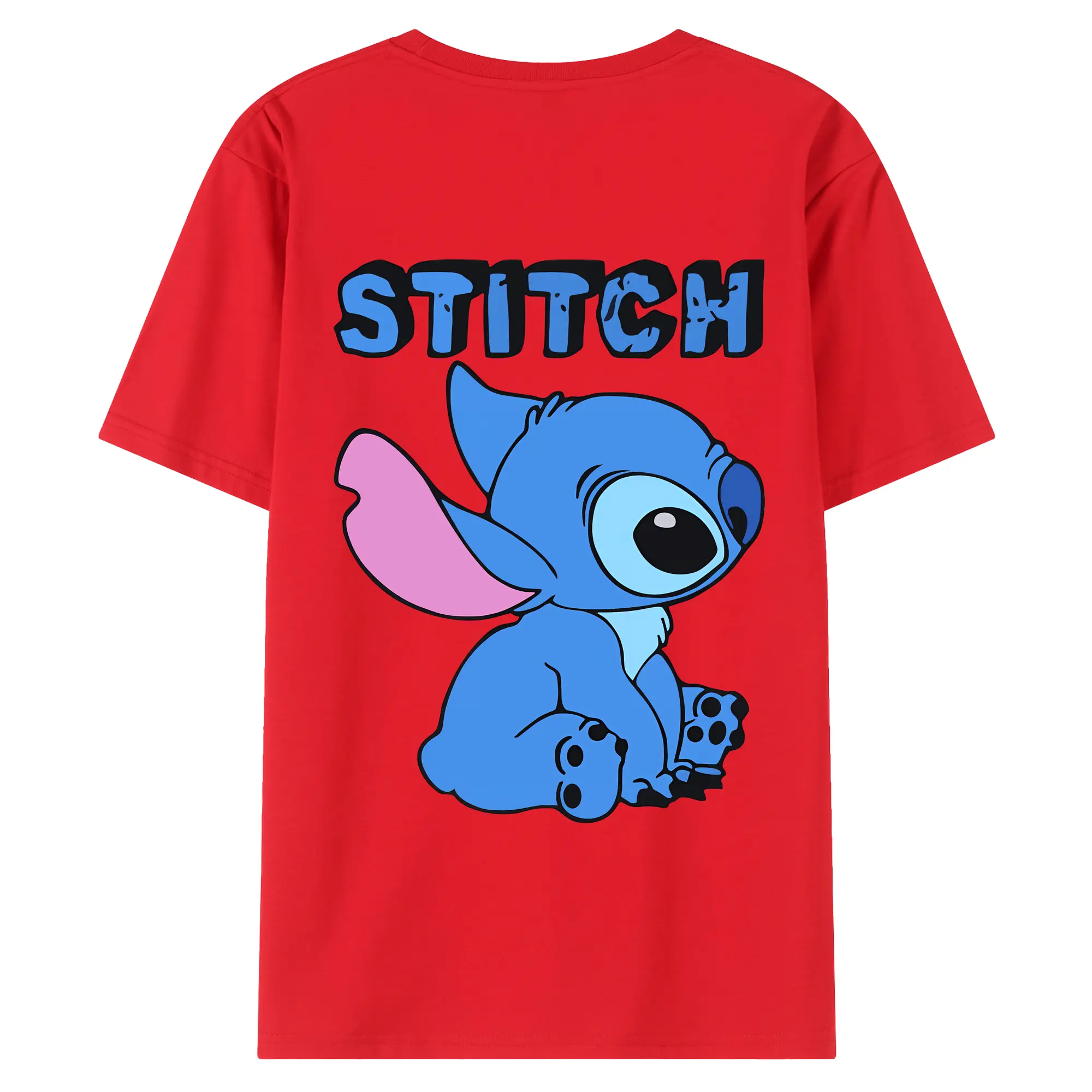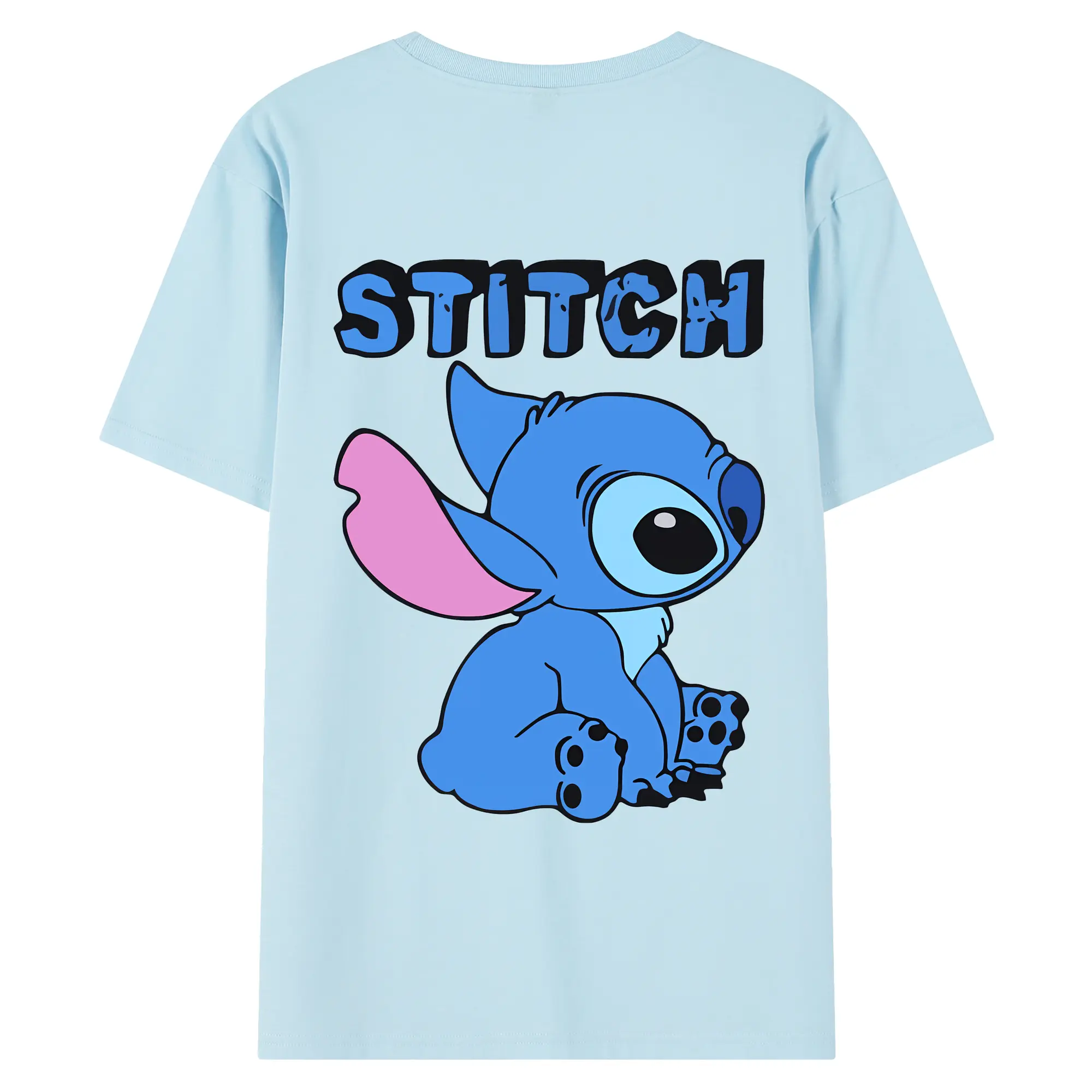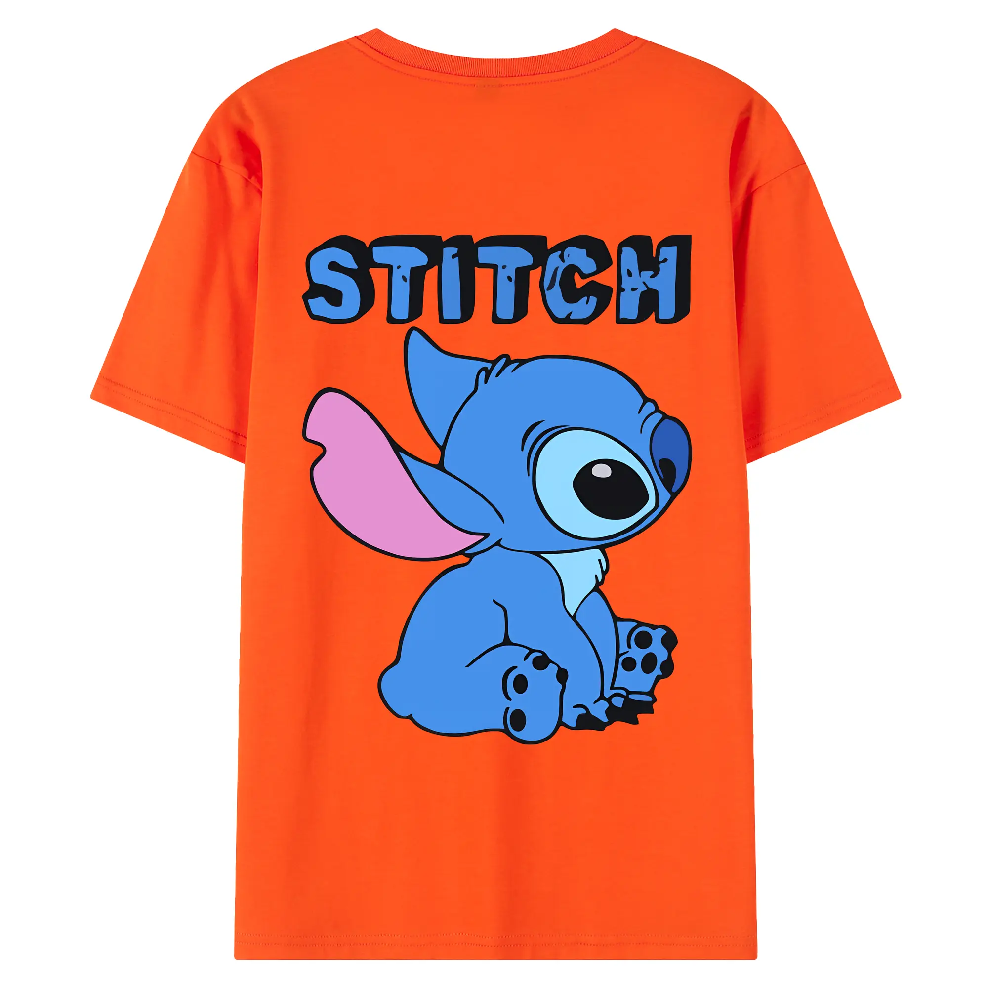 リロ&スティッチ グッズ スティッチ - 綿100% 半袖Tシャツ ・ フロントプリント ・ 快適 通気性 ・ 日常使い 散歩 スポーツ用
