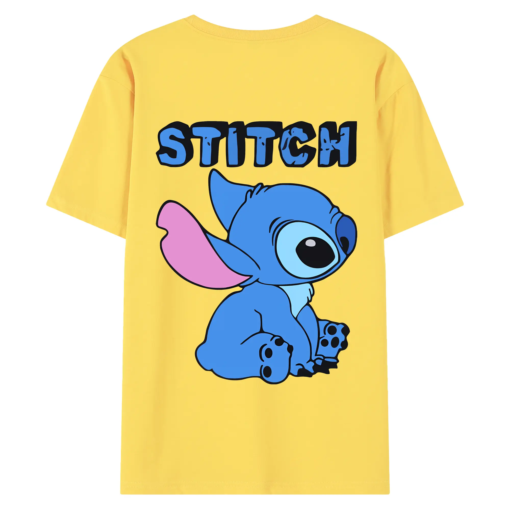 リロ&スティッチ グッズ スティッチ - 綿100% ヴィンテージ風 半袖Tシャツ ・ 背面プリント ・ 柔らか肌触り ・ 通気性 快適 ・ スポーツ カジュアル 外出用
