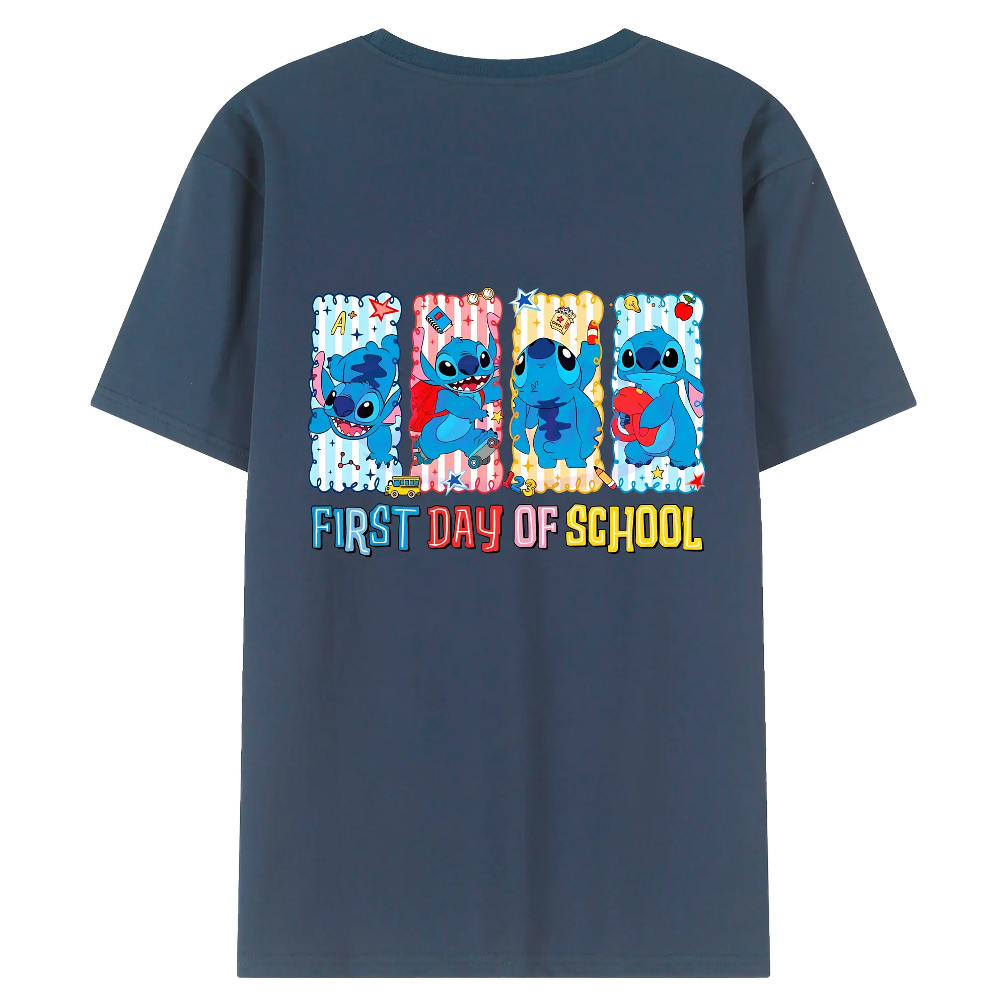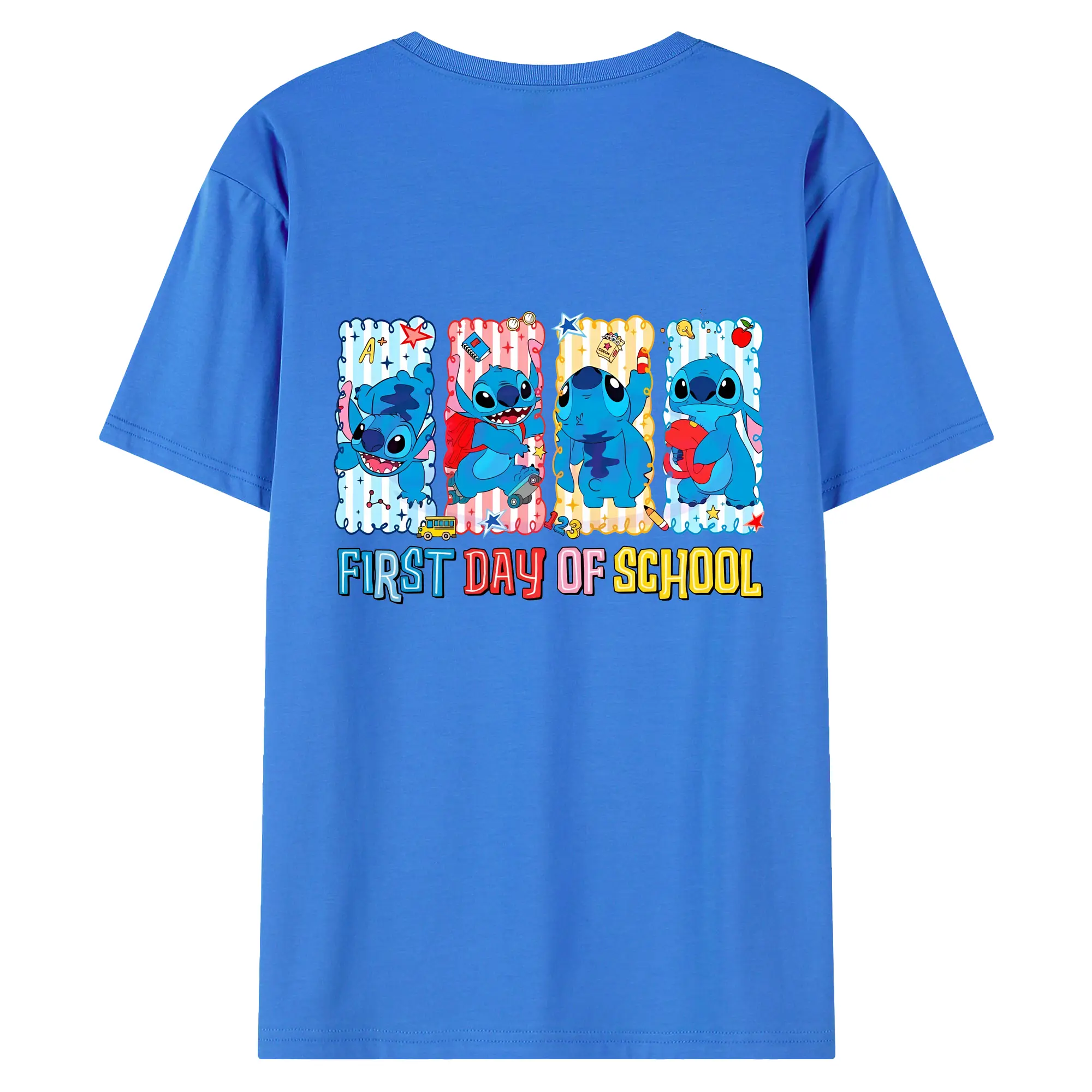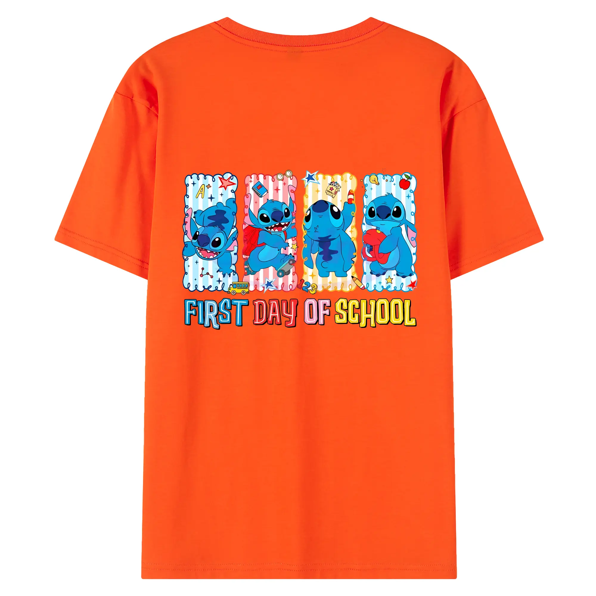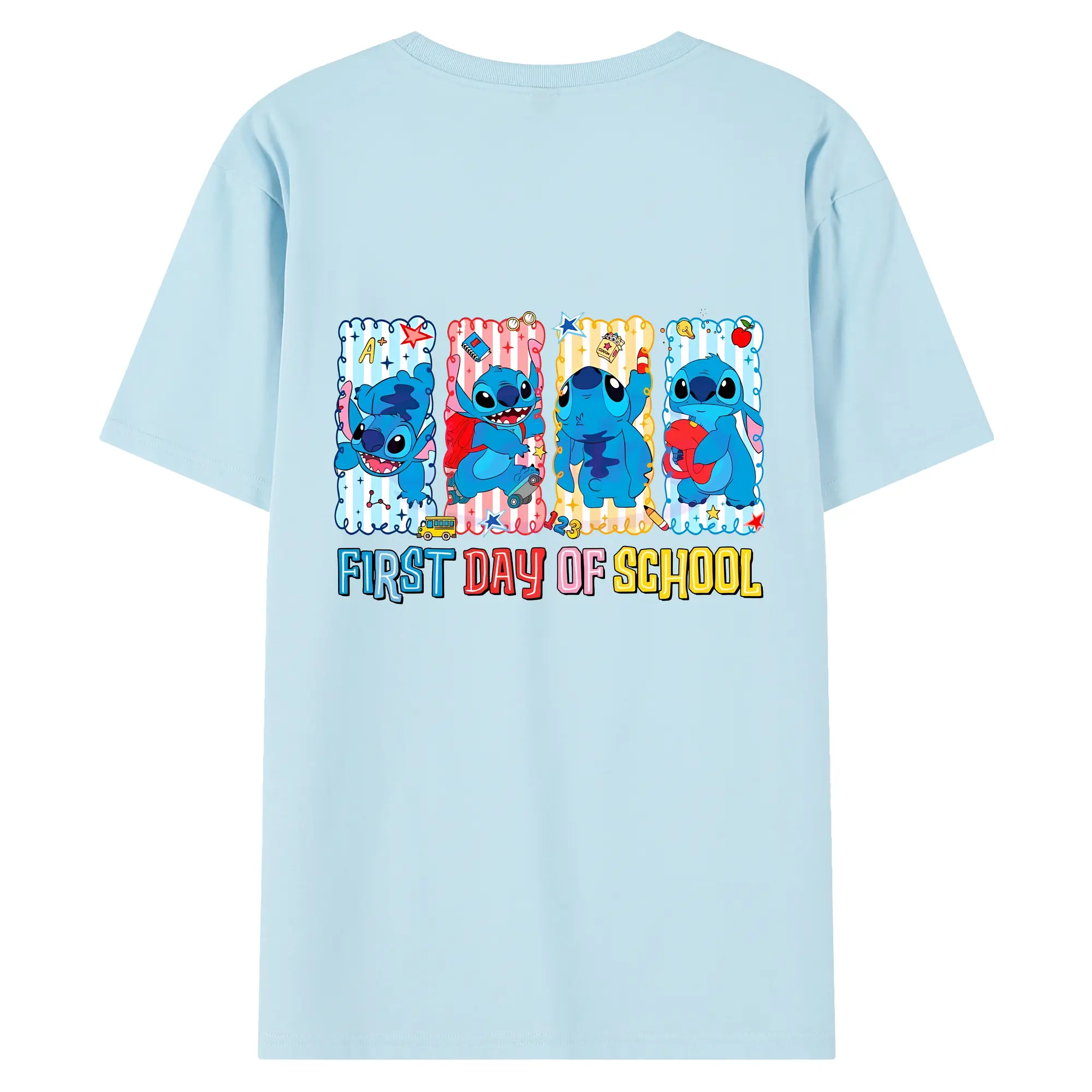 リロ&スティッチ グッズ スティッチ - 綿100% 半袖Tシャツ ・ フロントプリント ・ 快適 通気性 ・ 日常使い 散歩 スポーツ用