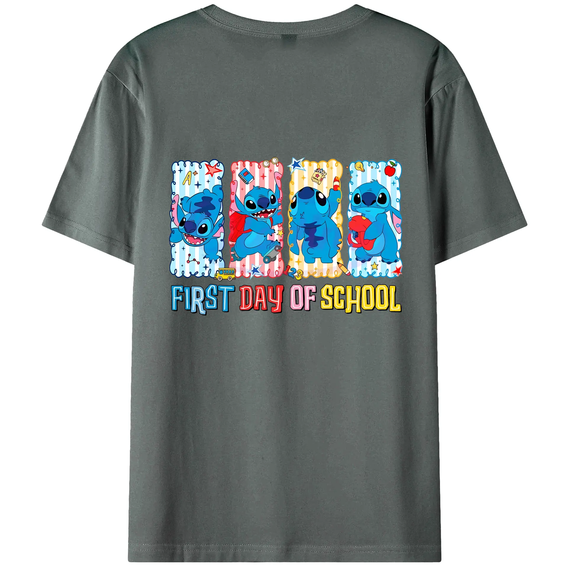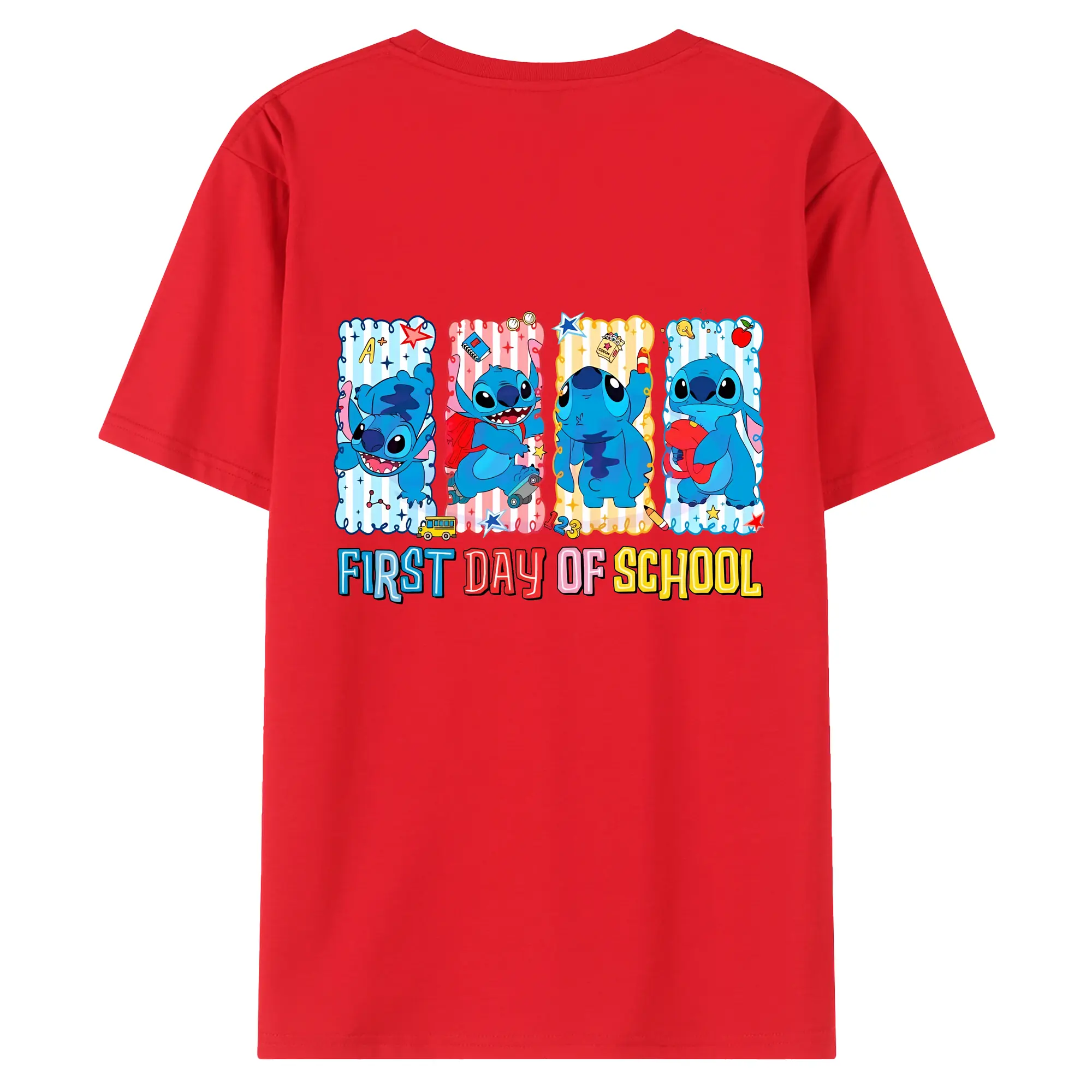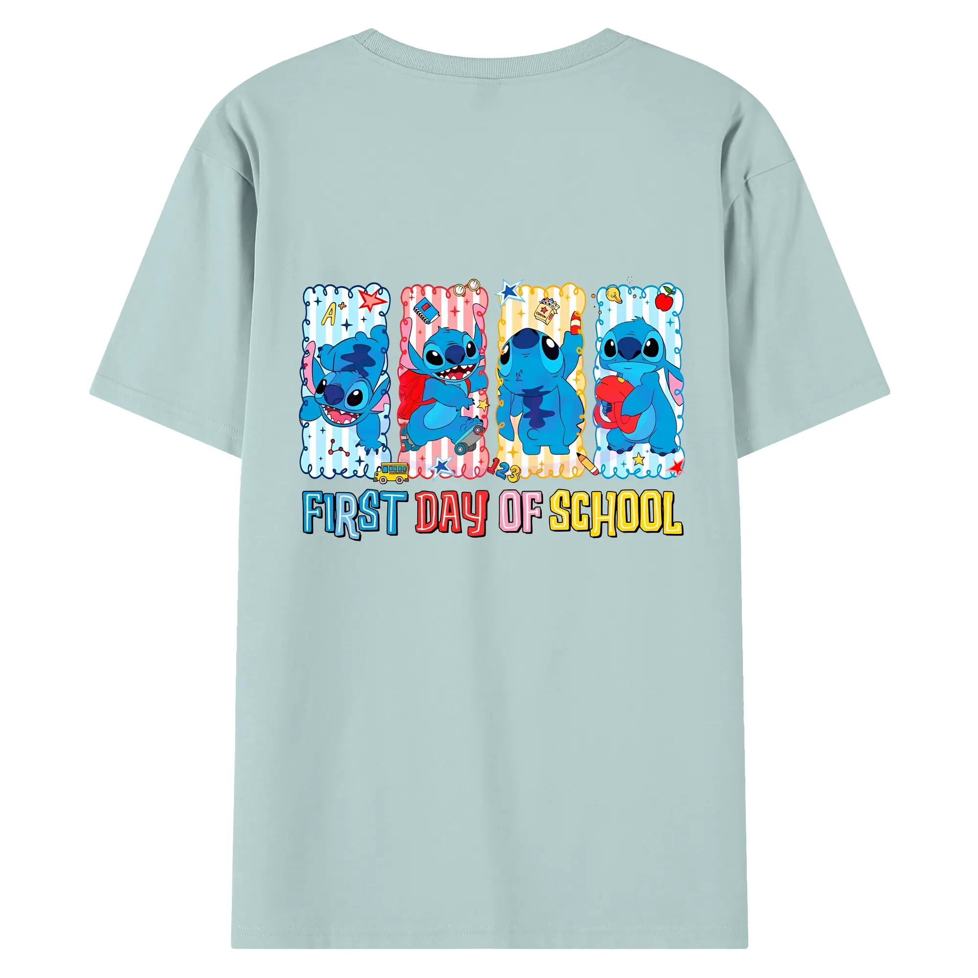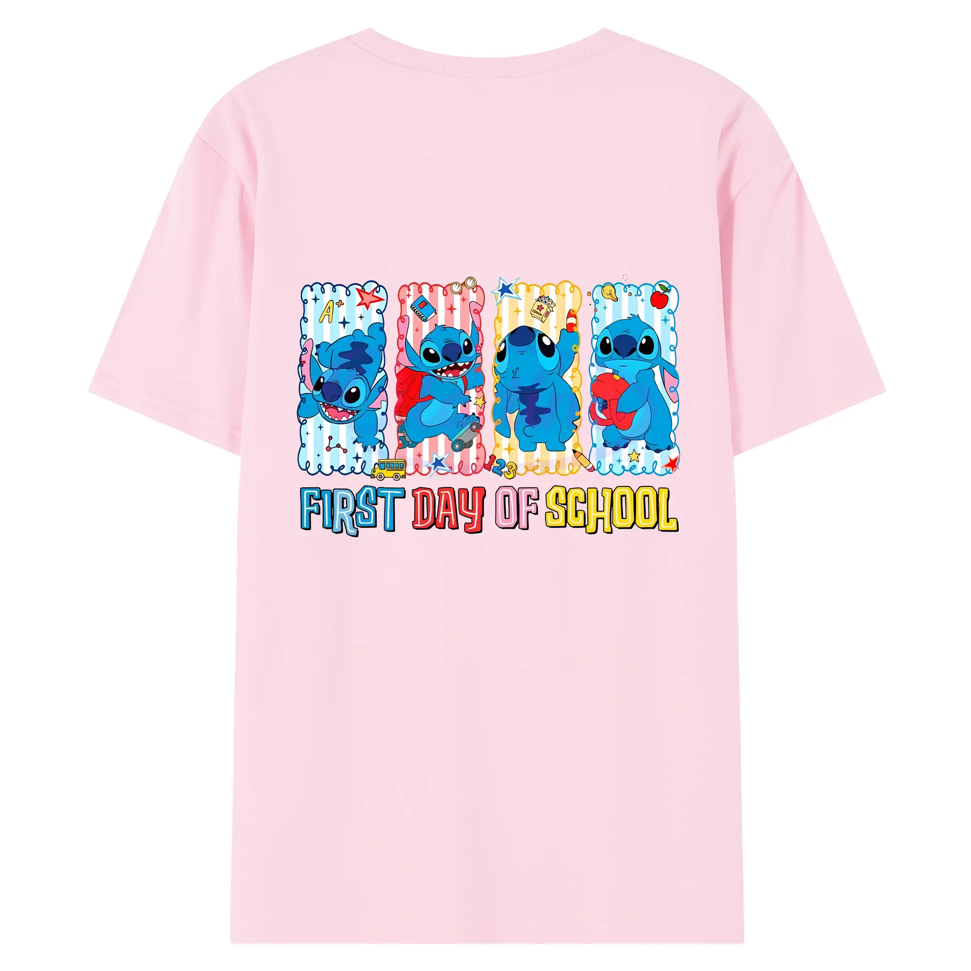 リロ&スティッチ グッズ スティッチ - 綿100% 半袖Tシャツ ・ フロントプリント ・ 快適 通気性 ・ 日常使い 散歩 スポーツ用