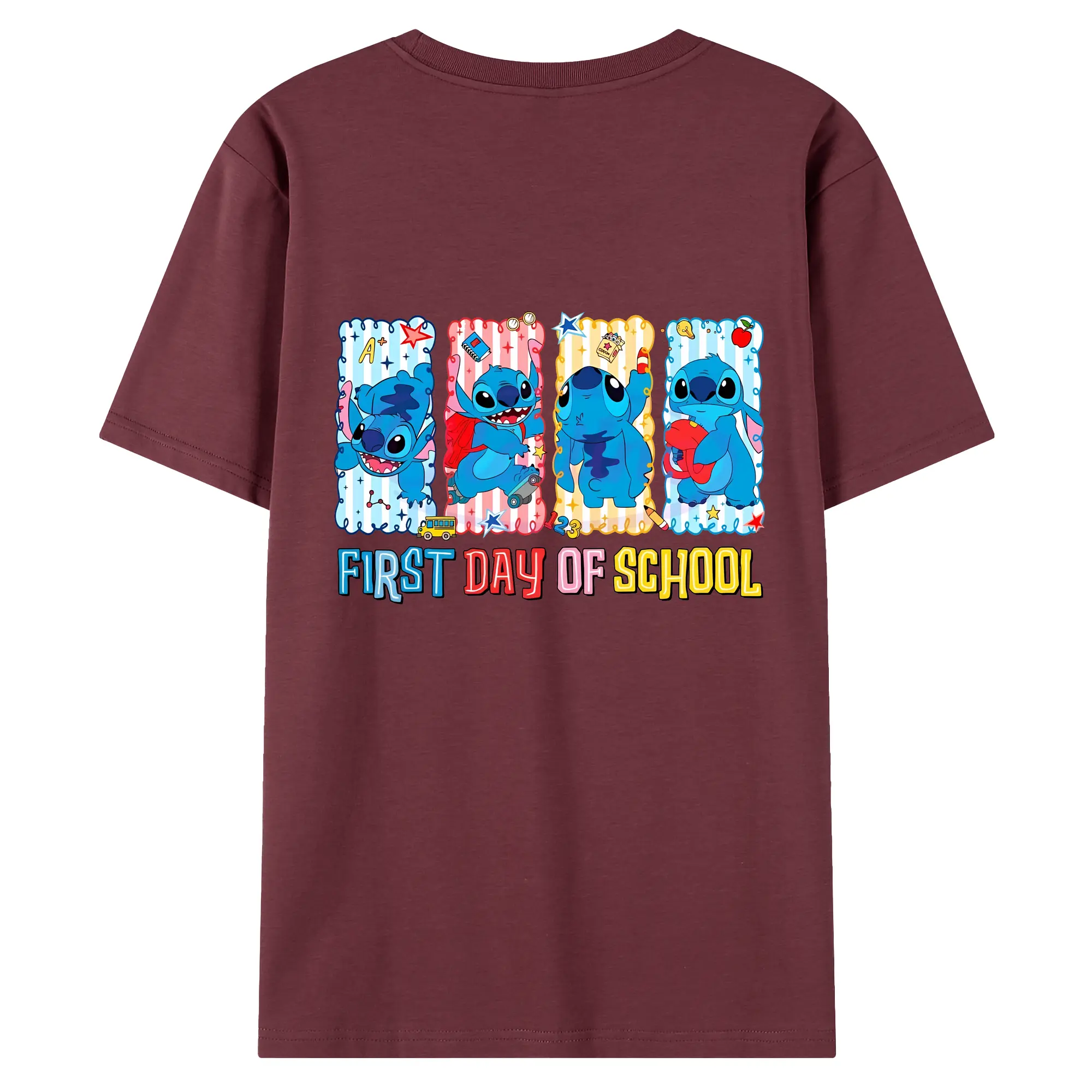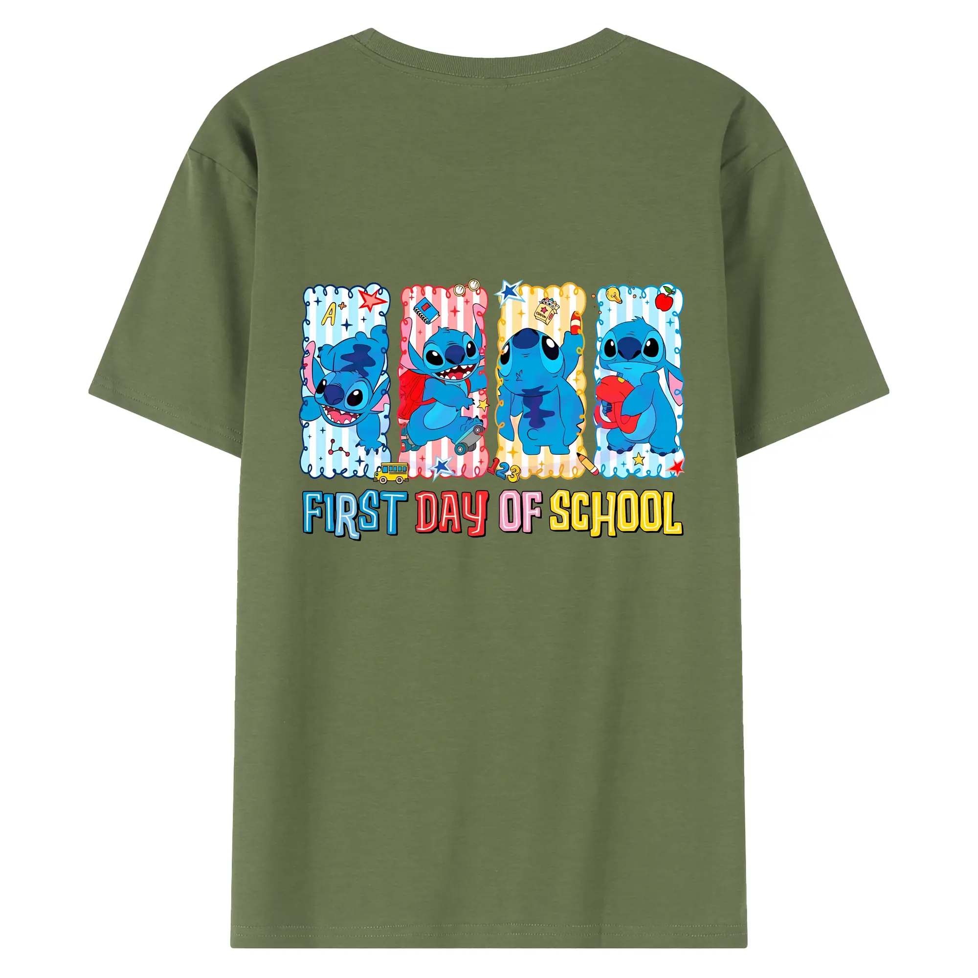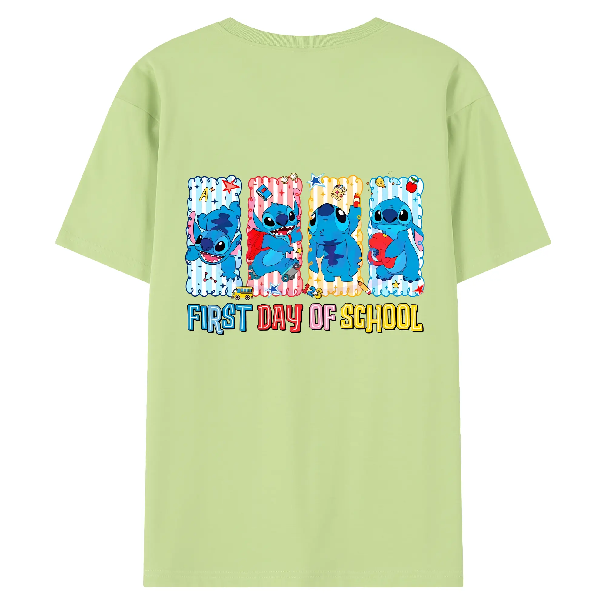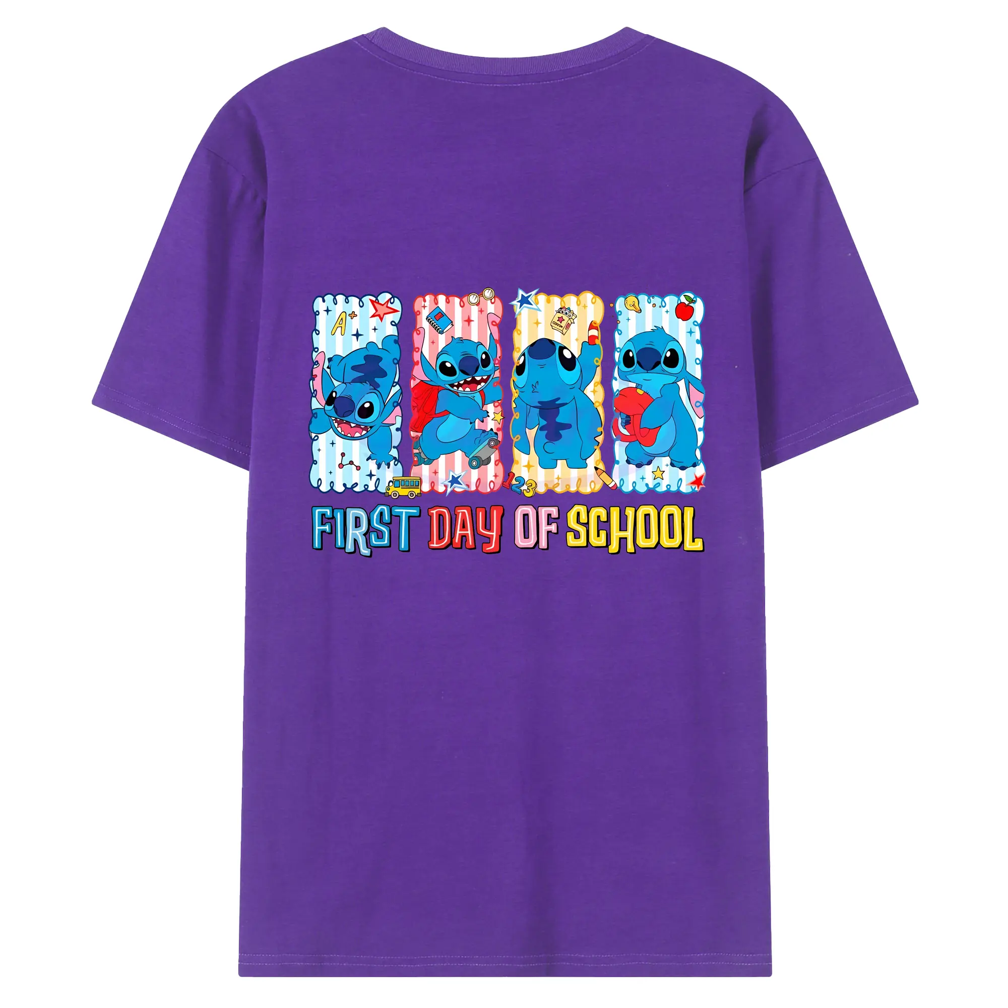 リロ&スティッチ グッズ スティッチ - 綿100% 半袖Tシャツ ・ フロントプリント ・ 快適 通気性 ・ 日常使い 散歩 スポーツ用