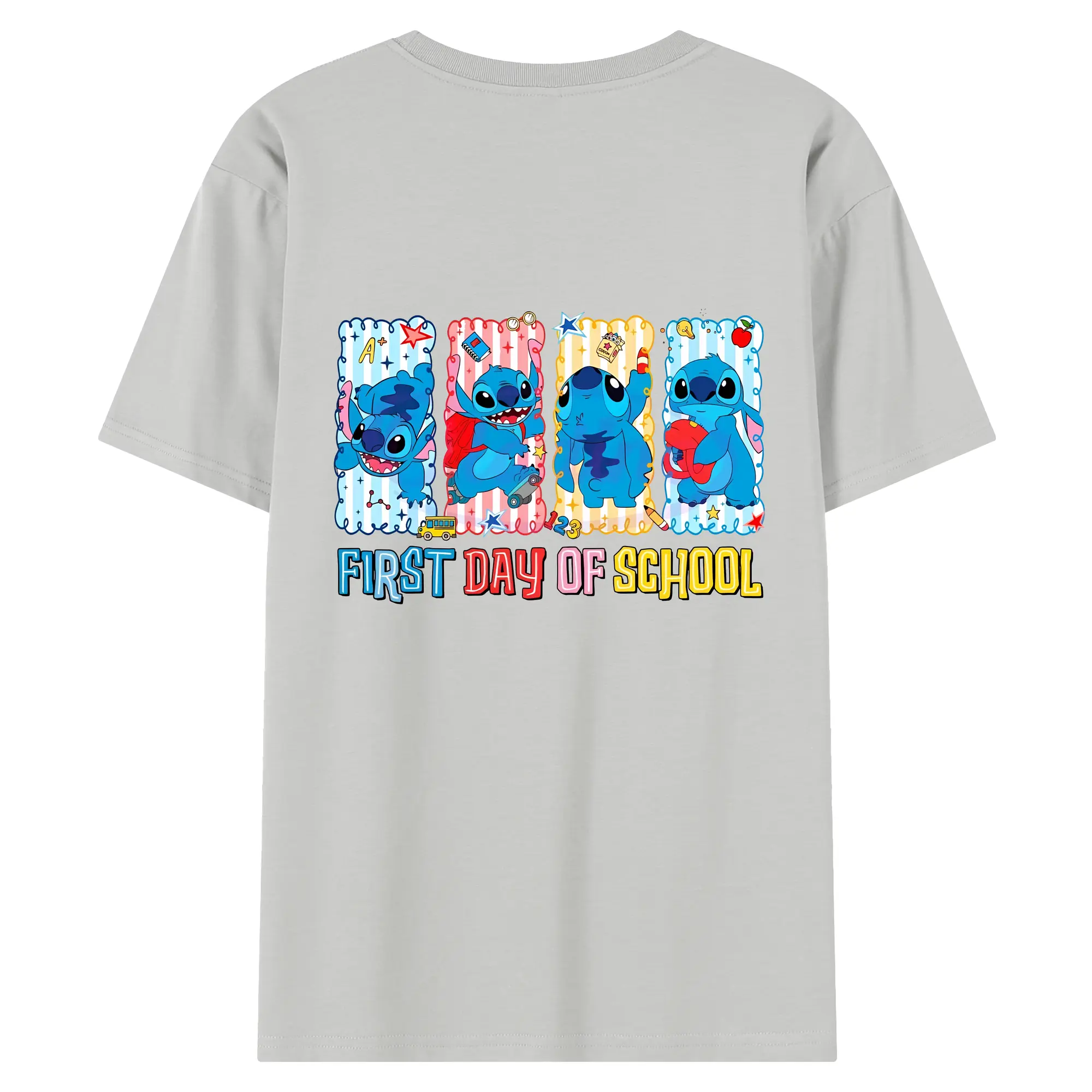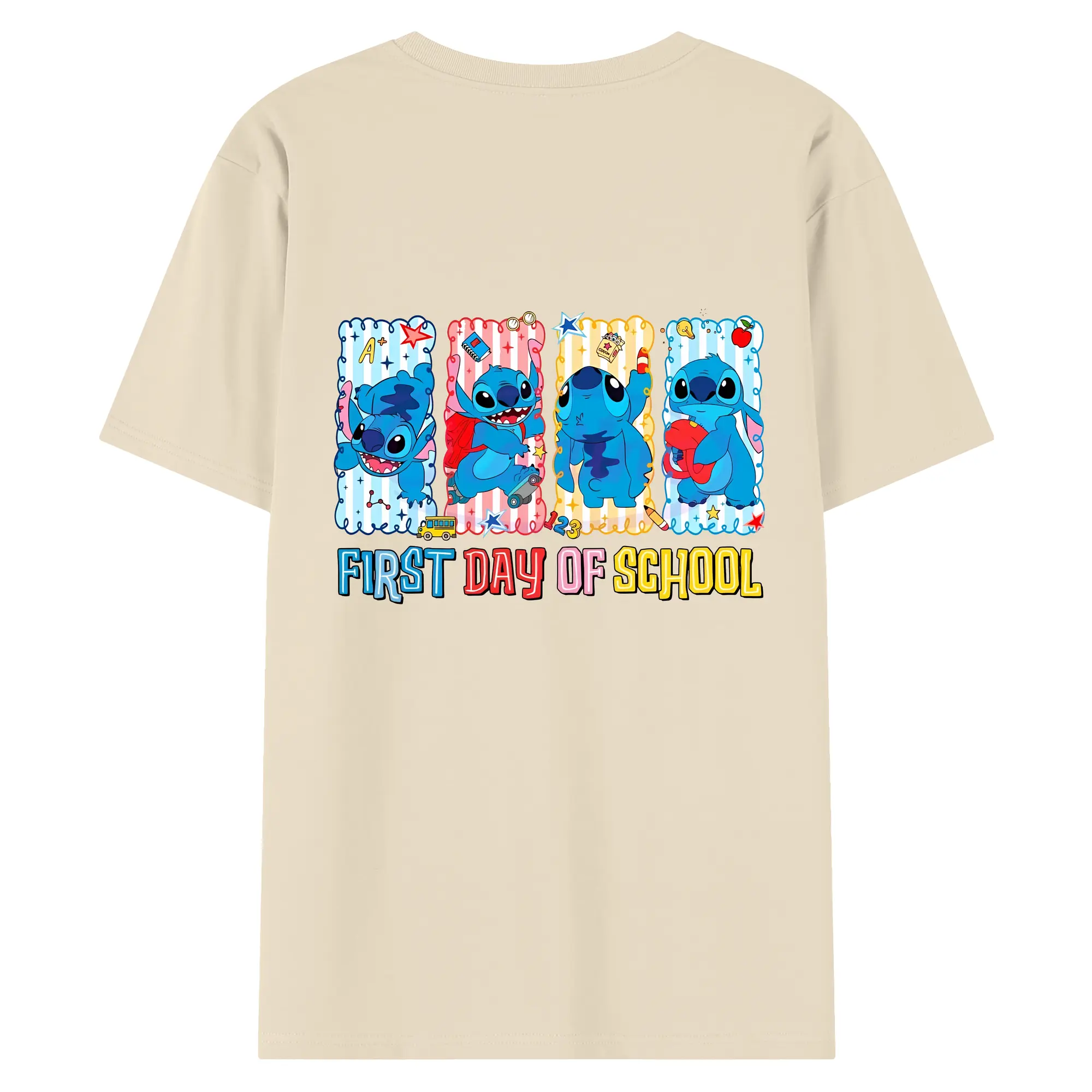 リロ&スティッチ グッズ スティッチ - 綿100% ヴィンテージ風 半袖Tシャツ ・ 背面プリント ・ 柔らか肌触り ・ 通気性 快適 ・ スポーツ カジュアル 外出用