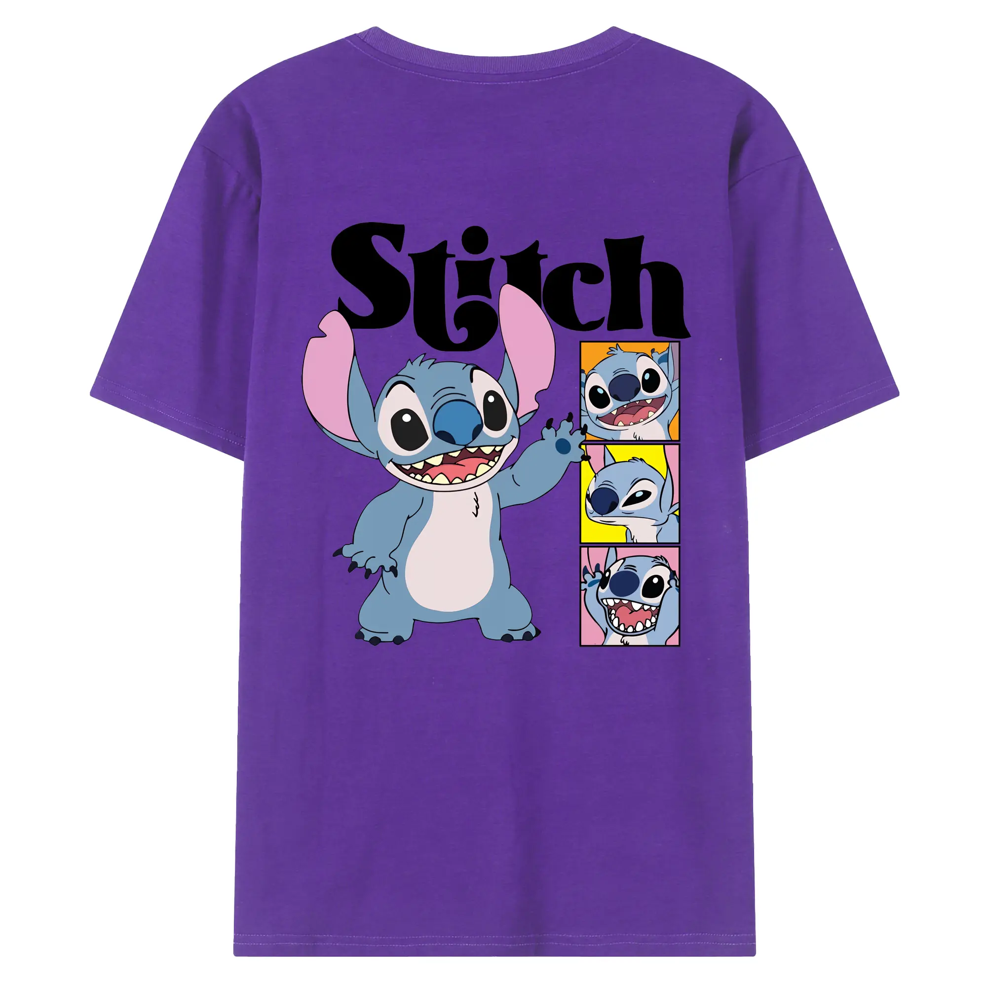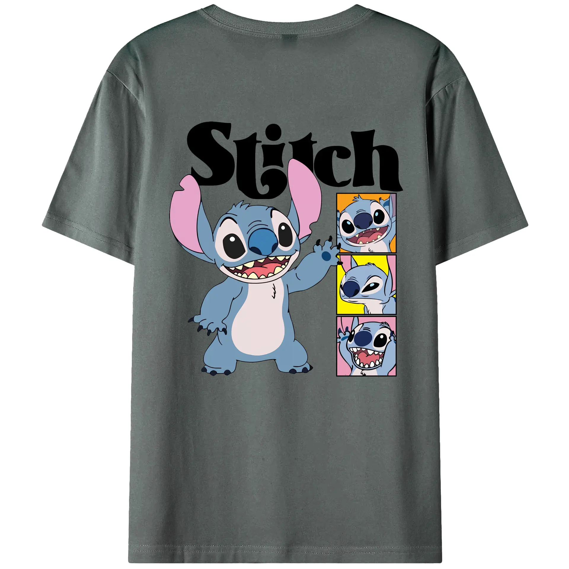 リロ&スティッチ グッズ スティッチ - 綿100% ヴィンテージ風 半袖Tシャツ ・ 背面プリント ・ 柔らか肌触り ・ 通気性 快適 ・ スポーツ カジュアル 外出用