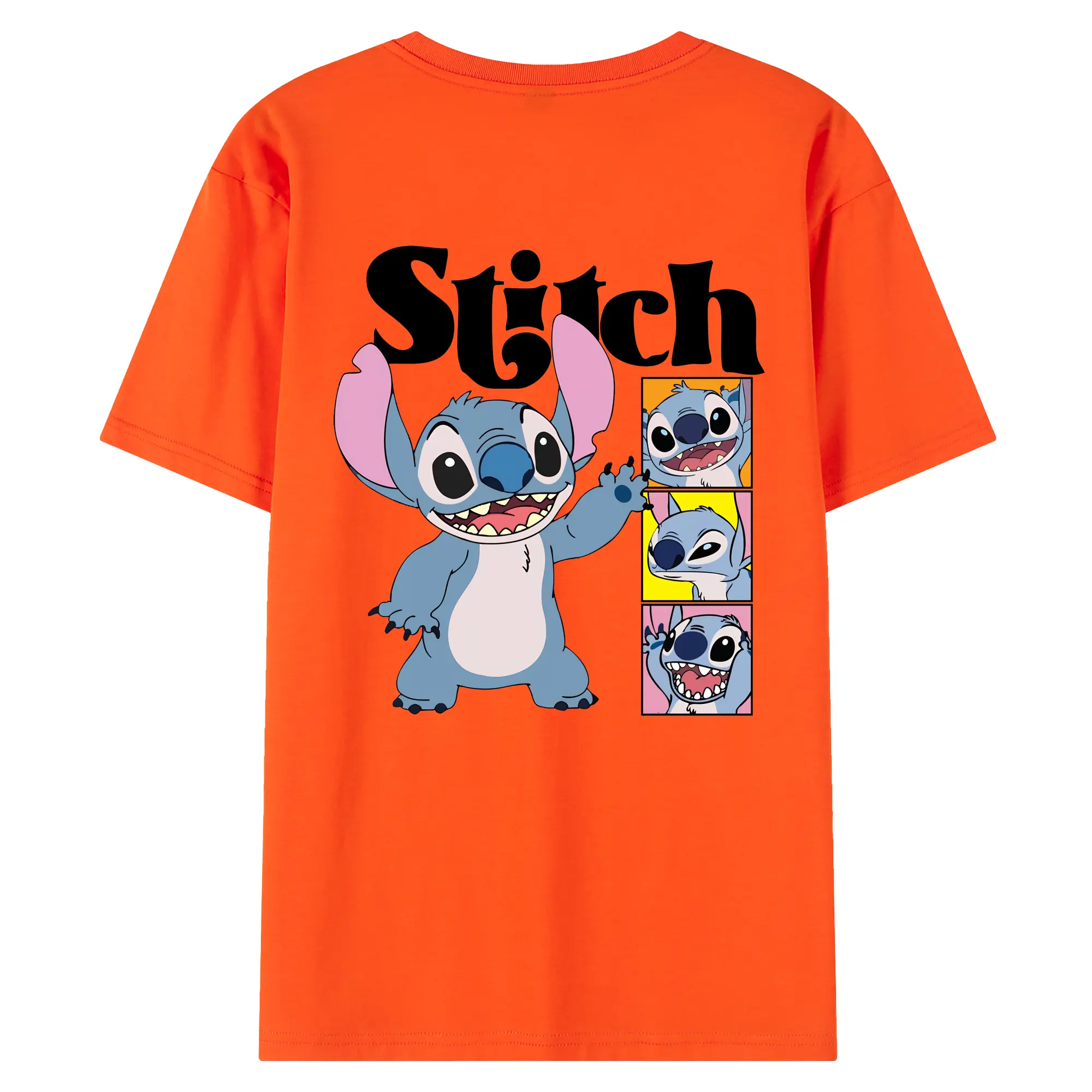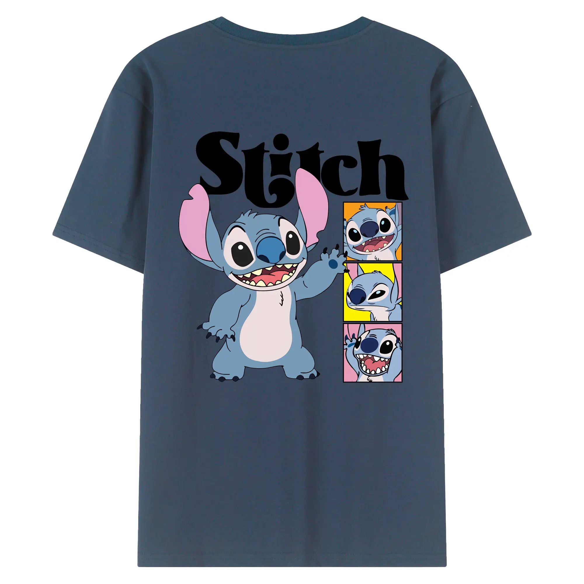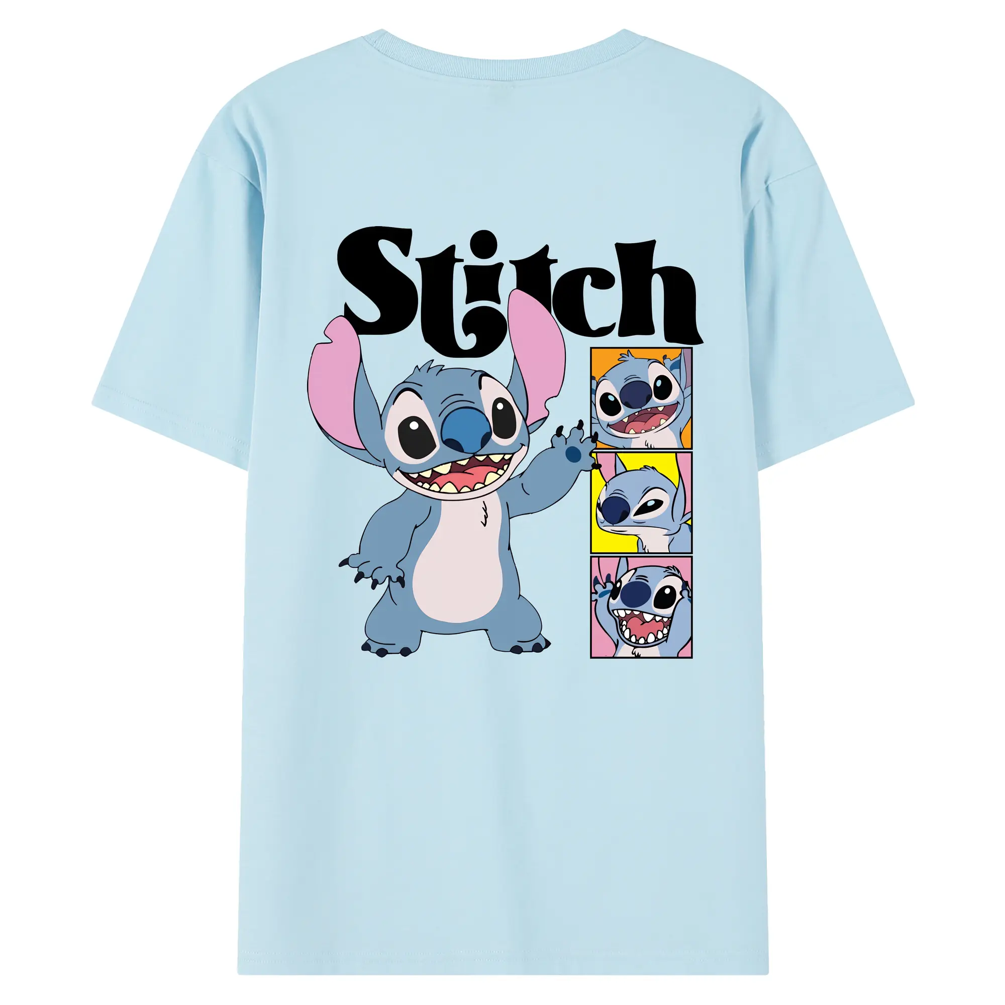 リロ&スティッチ グッズ スティッチ - 綿100% 半袖Tシャツ ・ フロントプリント ・ 快適 通気性 ・ 日常使い 散歩 スポーツ用