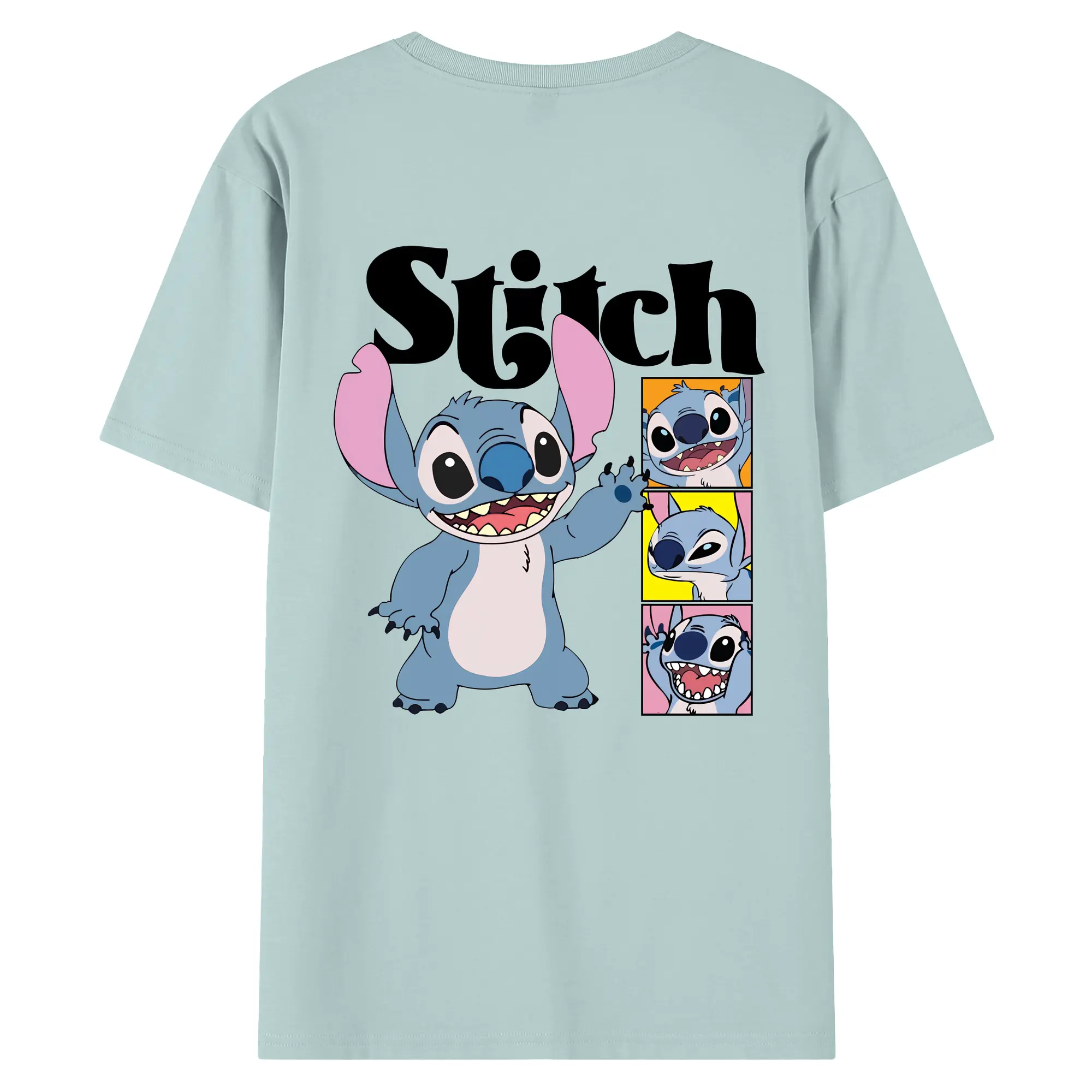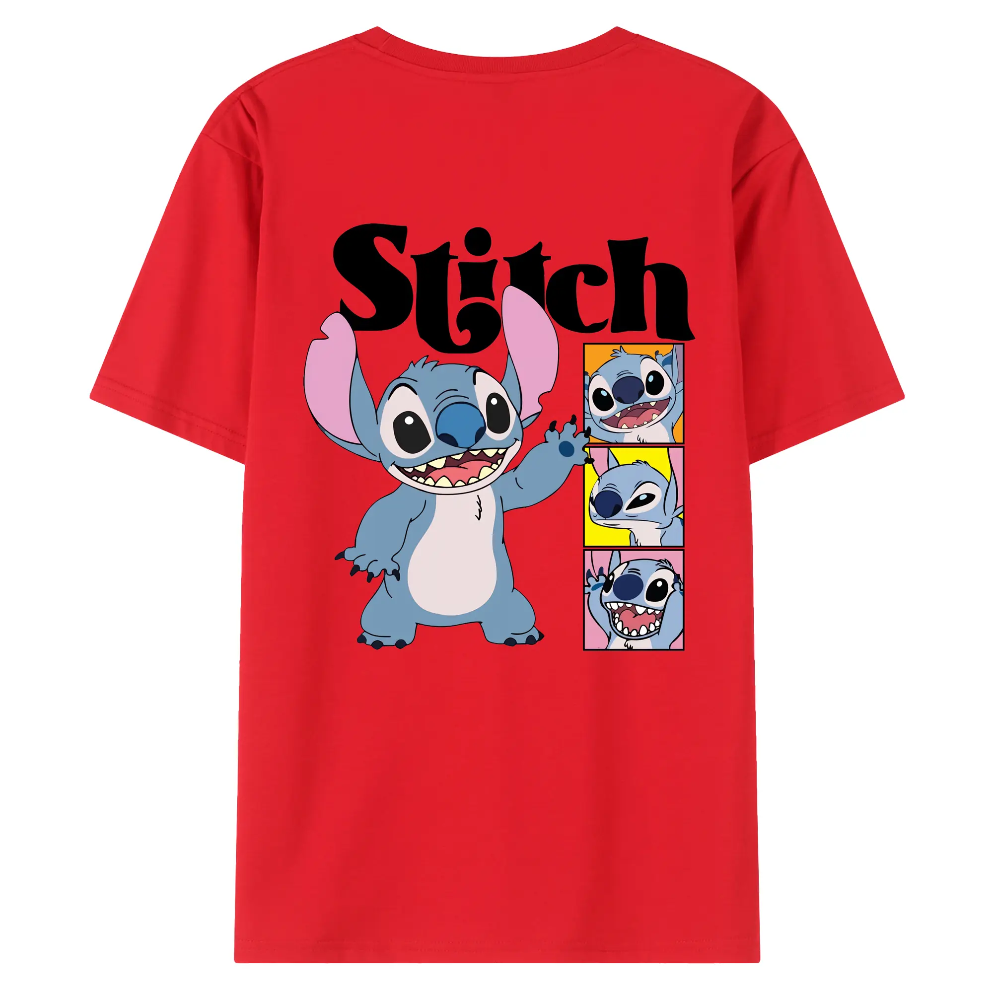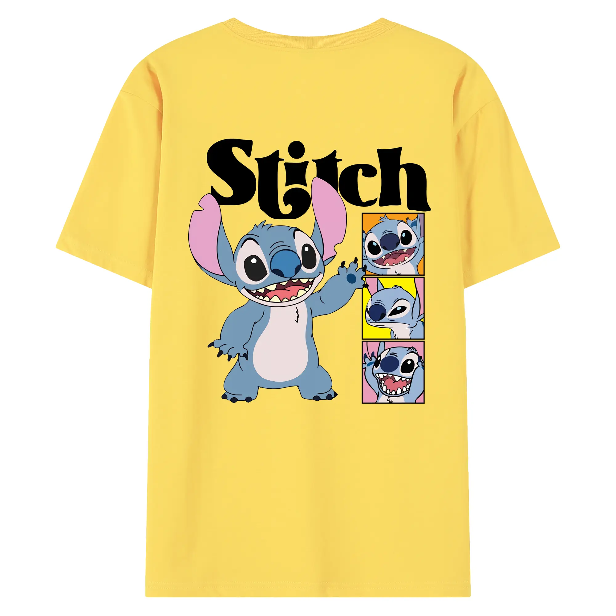 リロ&スティッチ グッズ スティッチ - 綿100% 半袖Tシャツ ・ フロントプリント ・ 快適 通気性 ・ 日常使い 散歩 スポーツ用