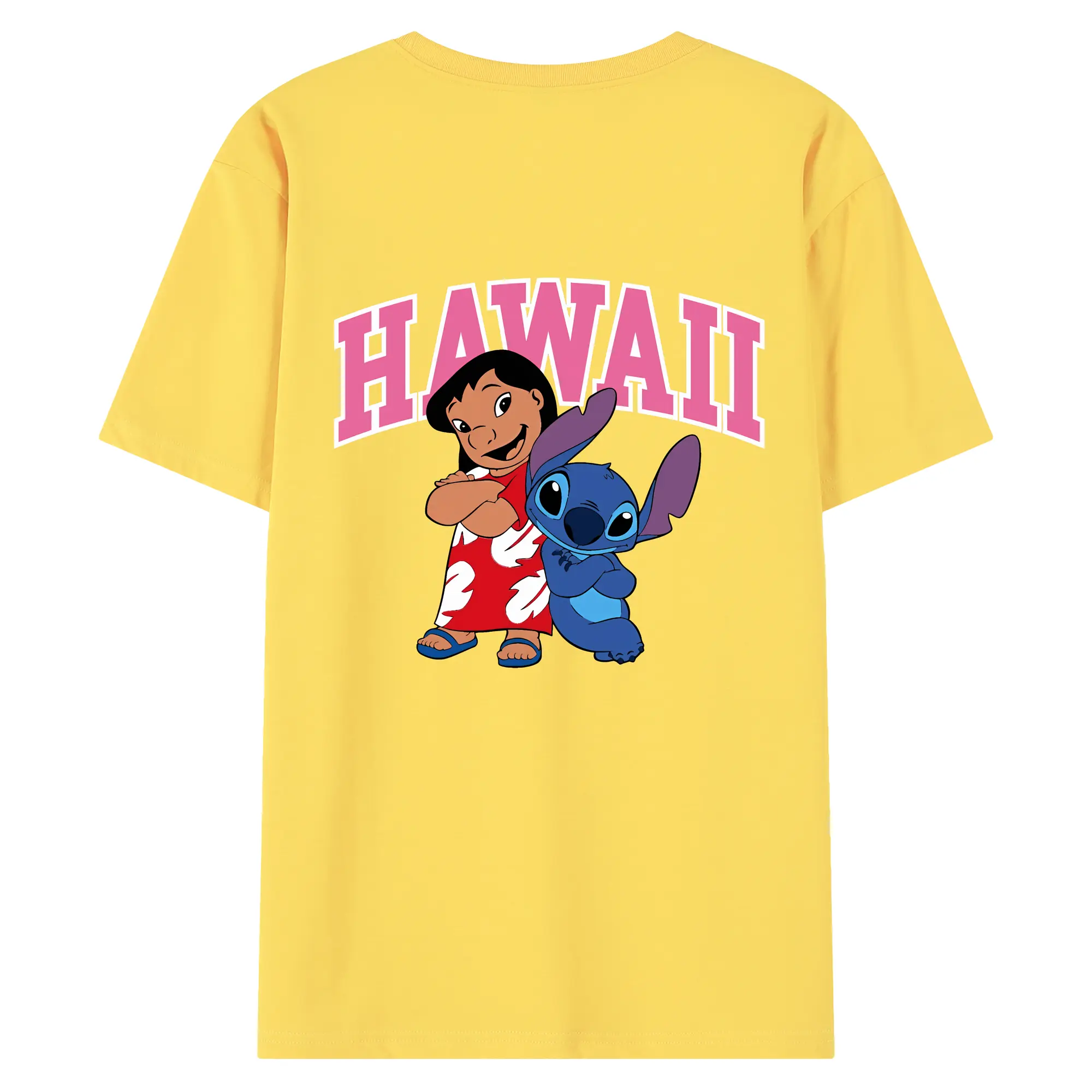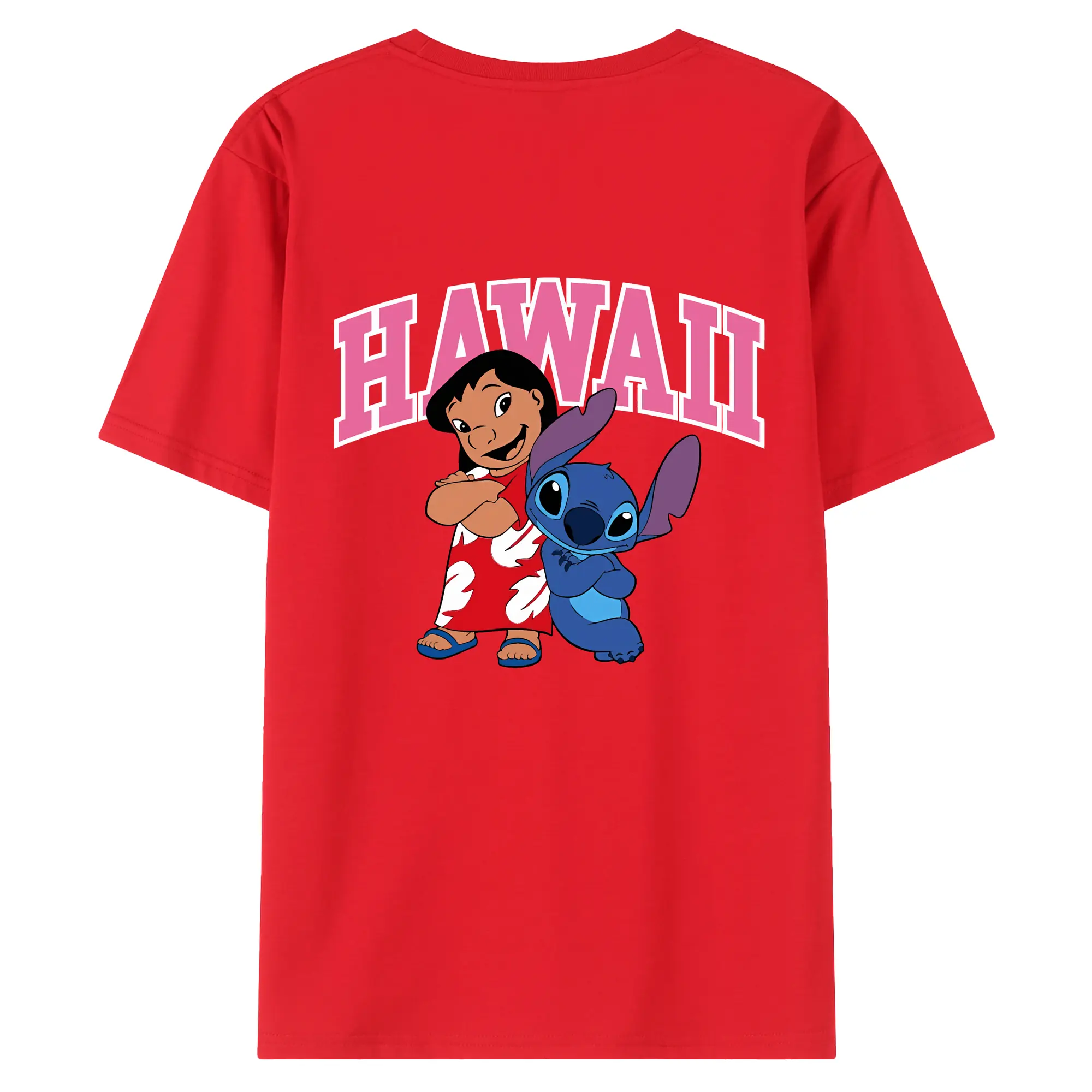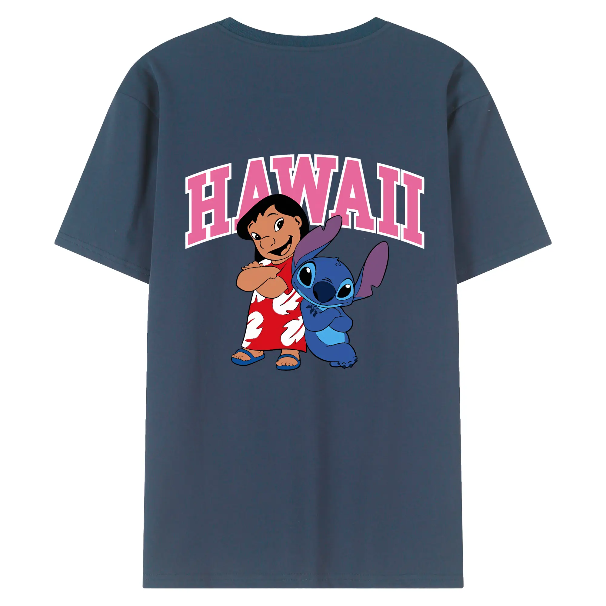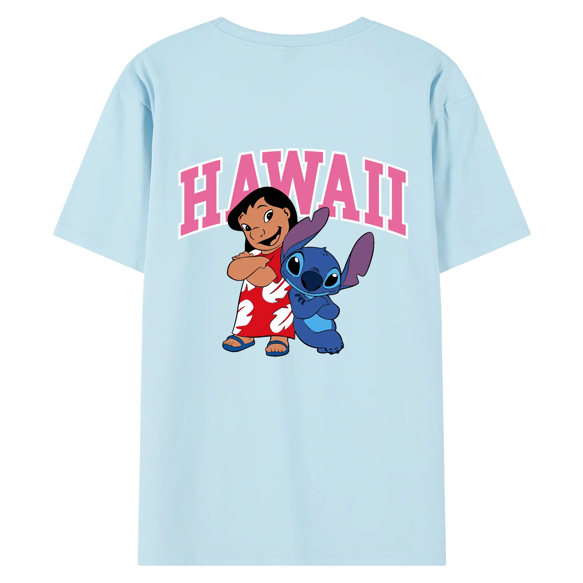 リロ&スティッチ グッズ スティッチ - 綿100% 半袖Tシャツ ・ バックプリント ・ 快適 通気性 ・ 日常使い 散歩 スポーツ用
