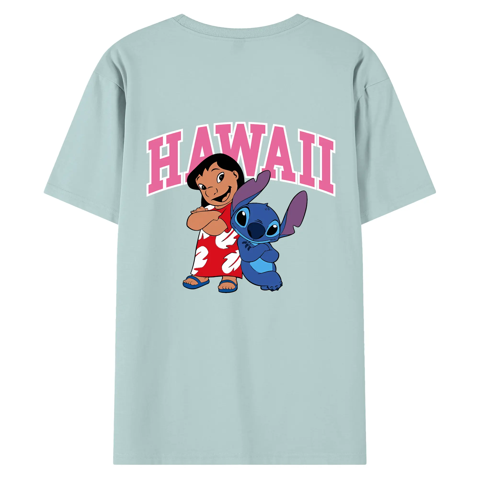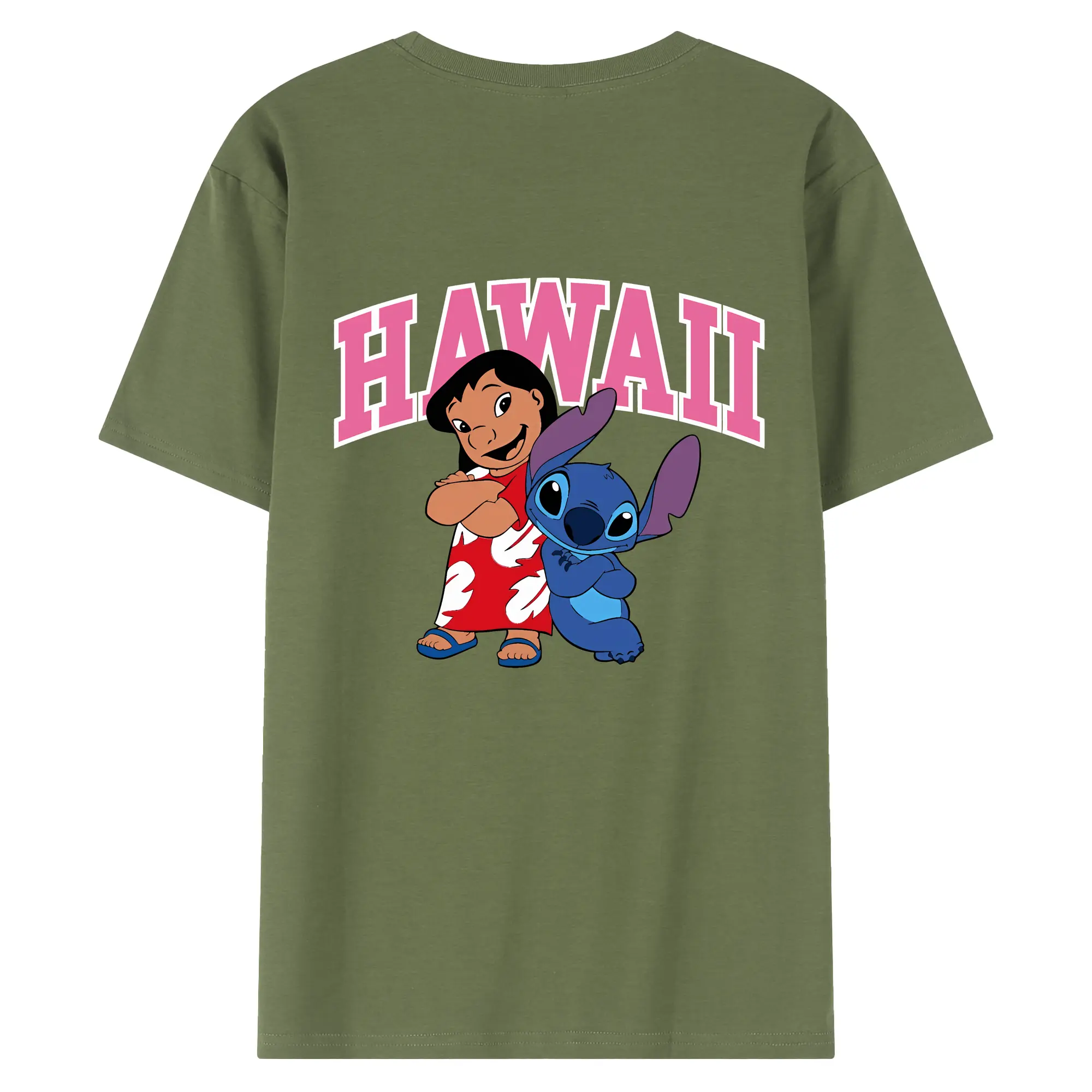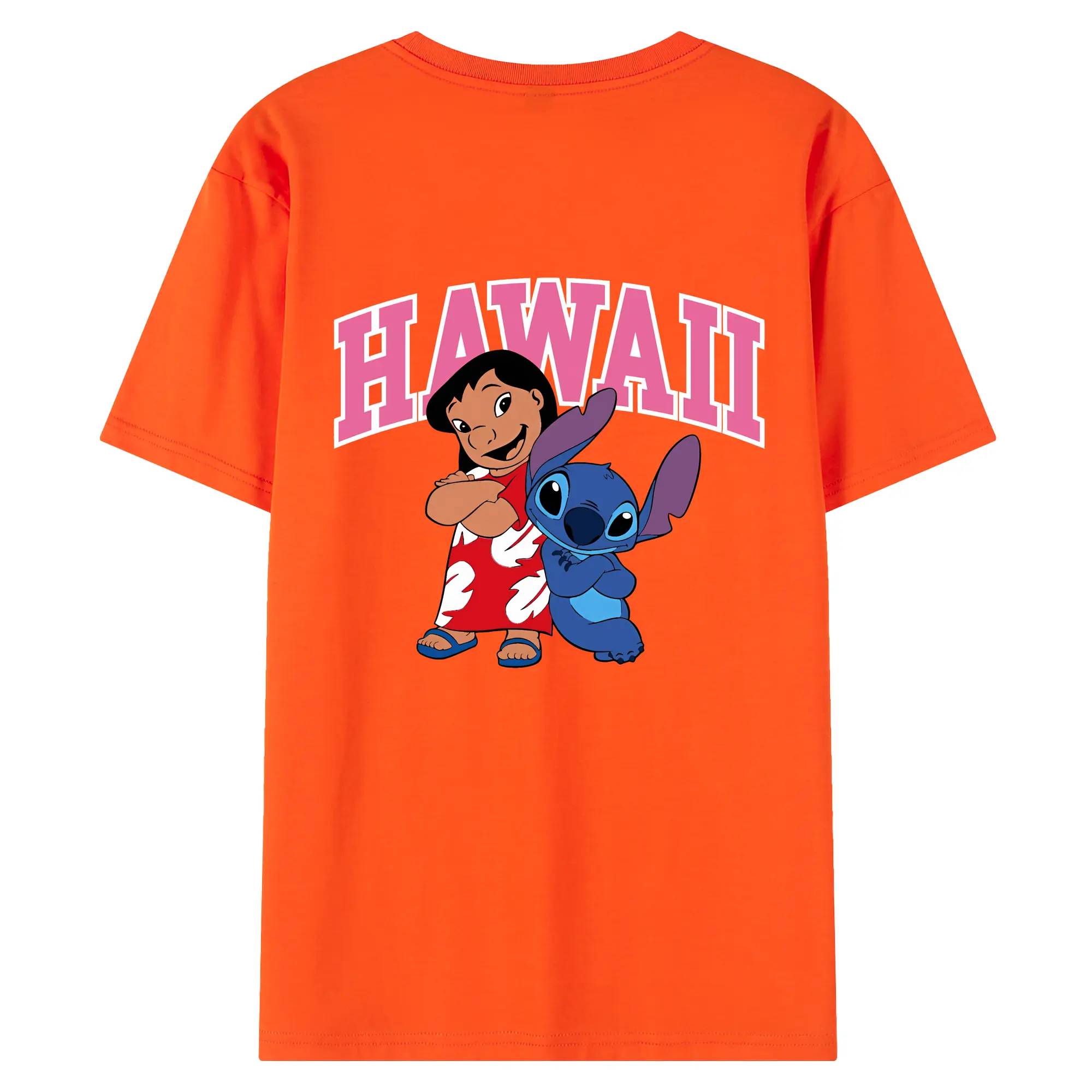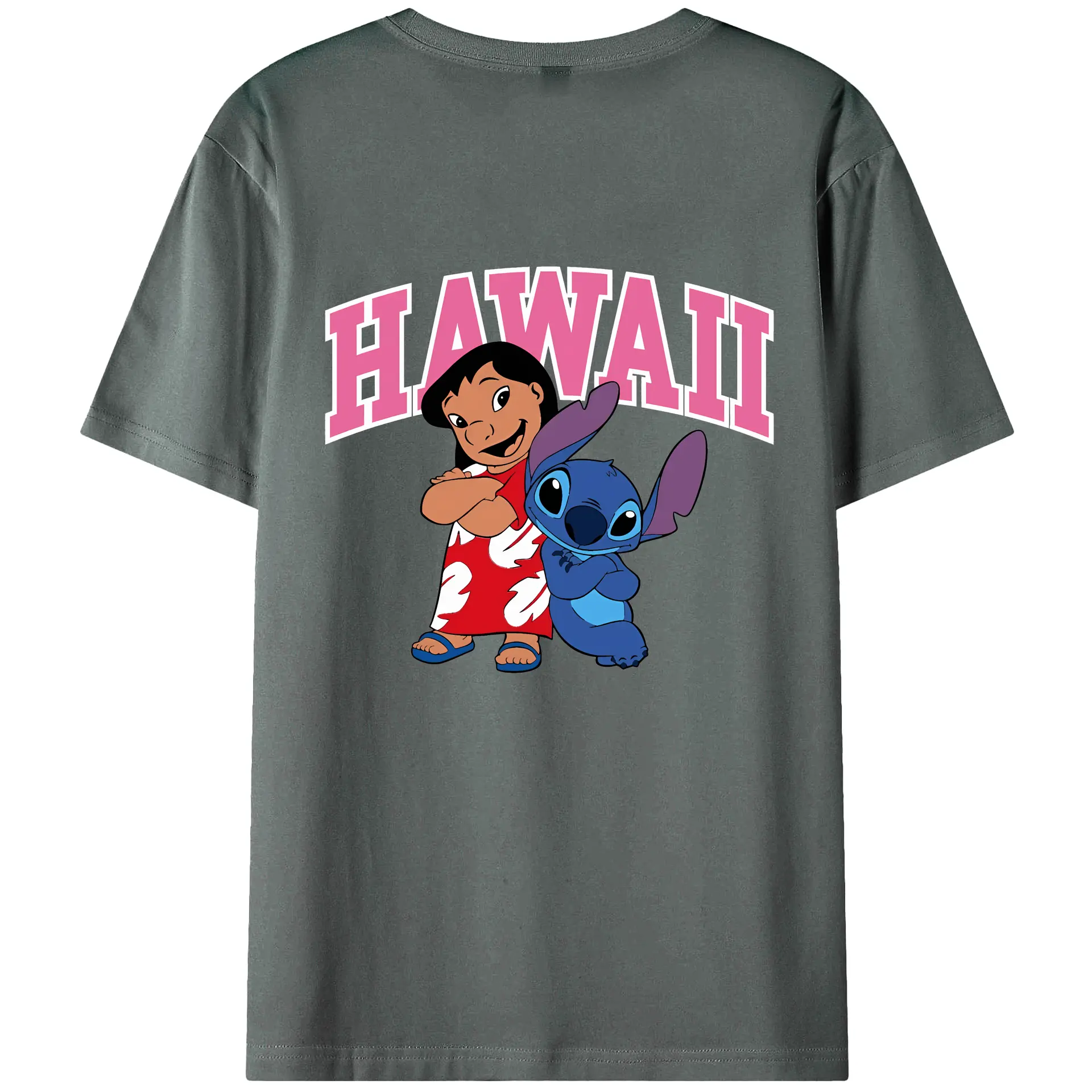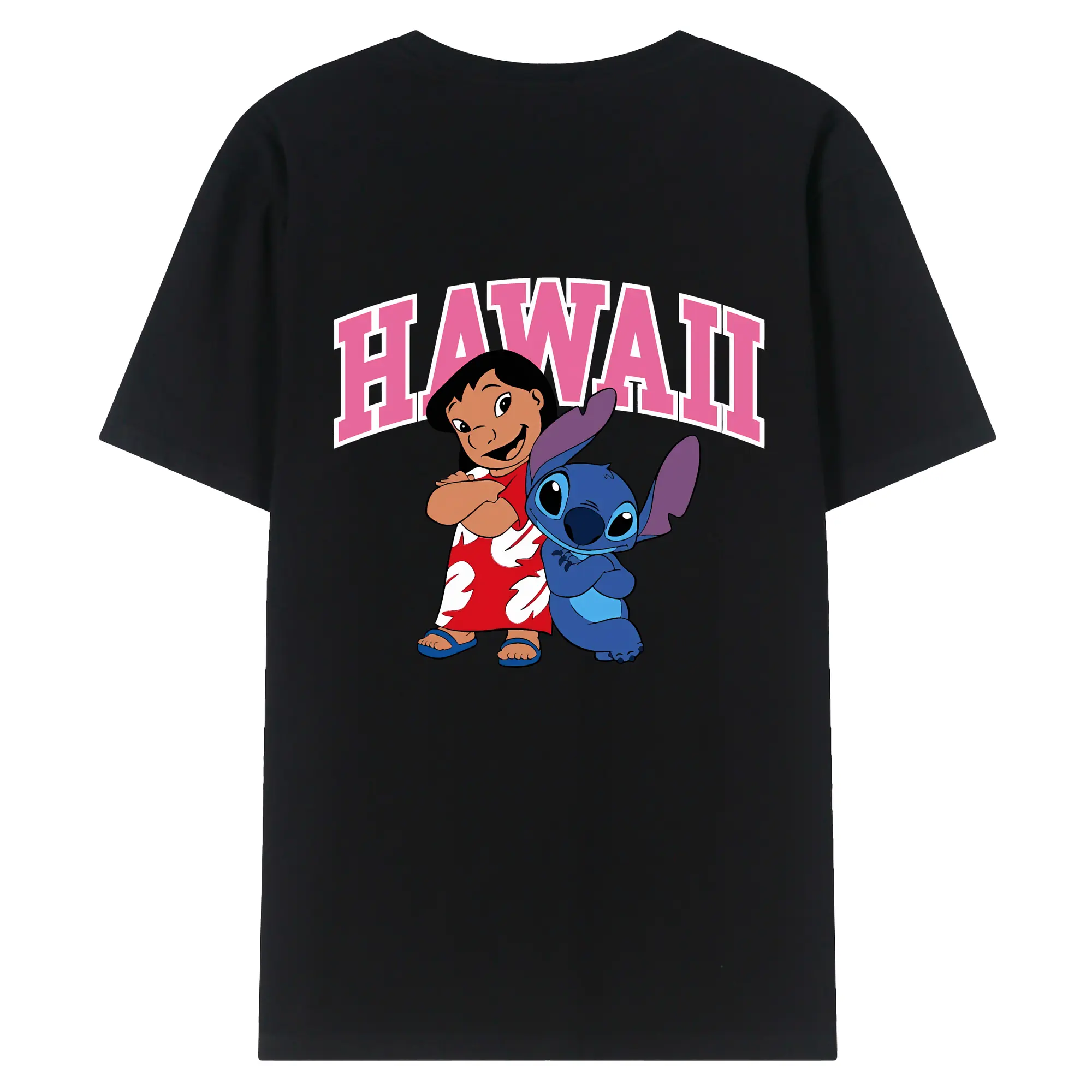 リロ&スティッチ グッズ スティッチ - 綿100% 半袖Tシャツ ・ バックプリント ・ 快適 通気性 ・ 日常使い 散歩 スポーツ用