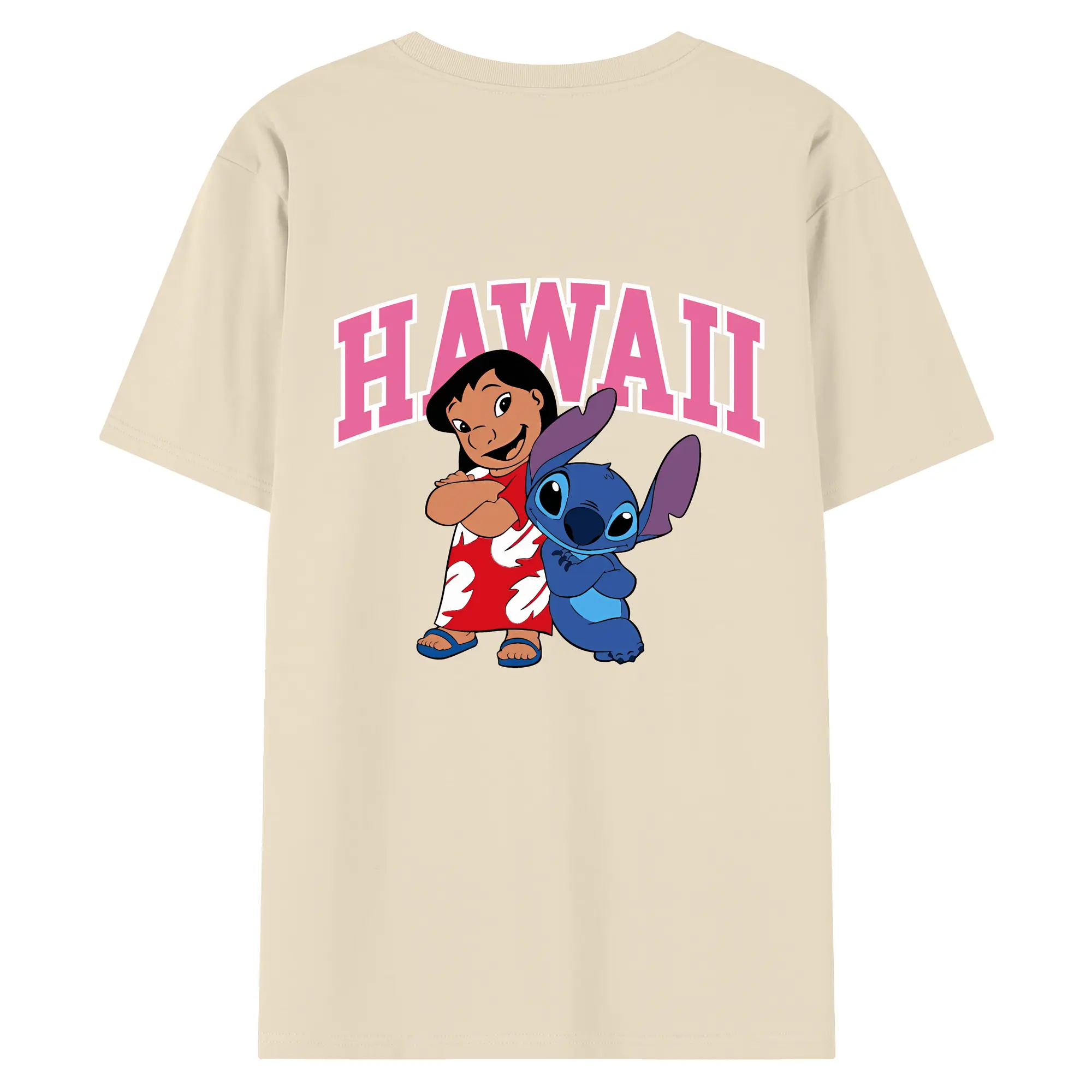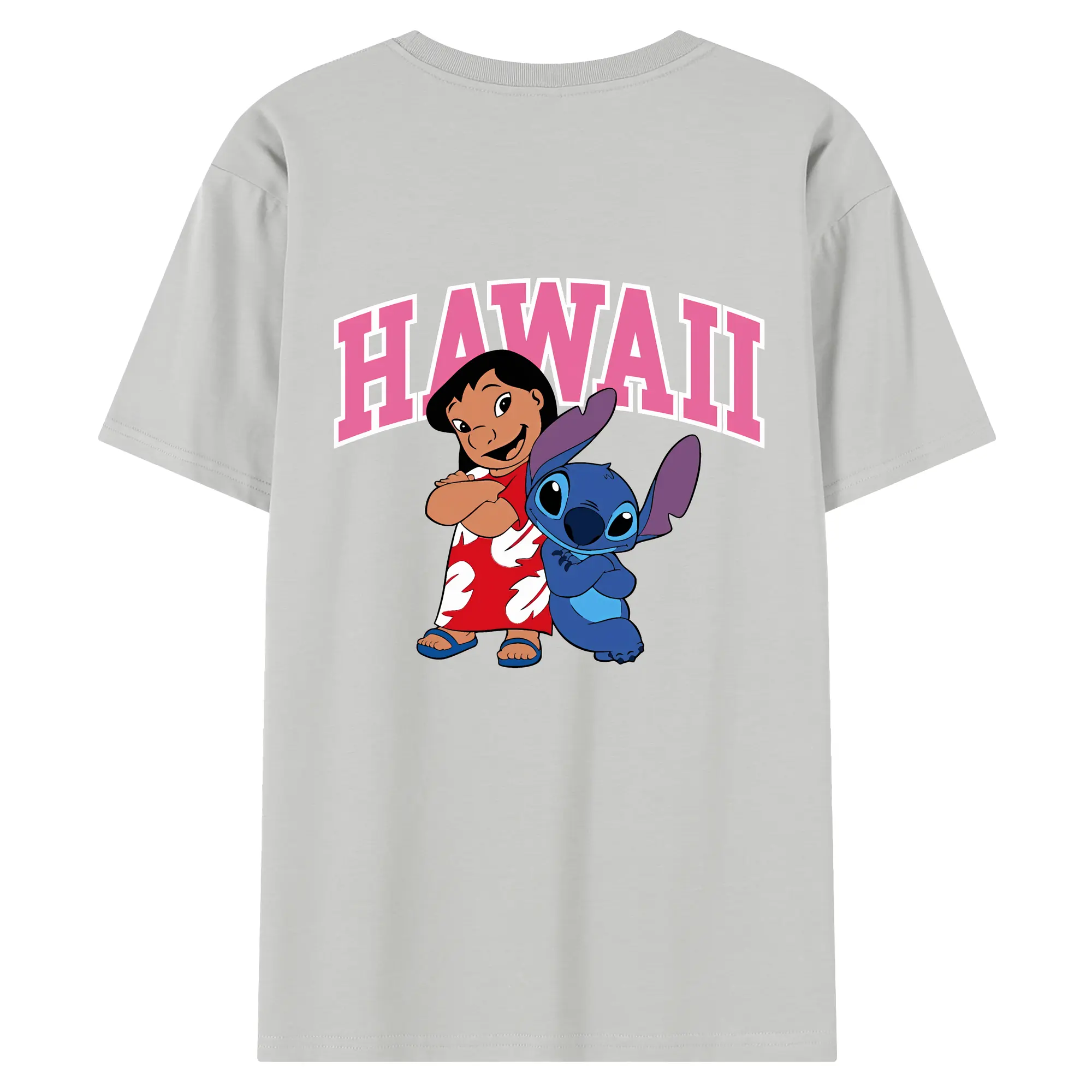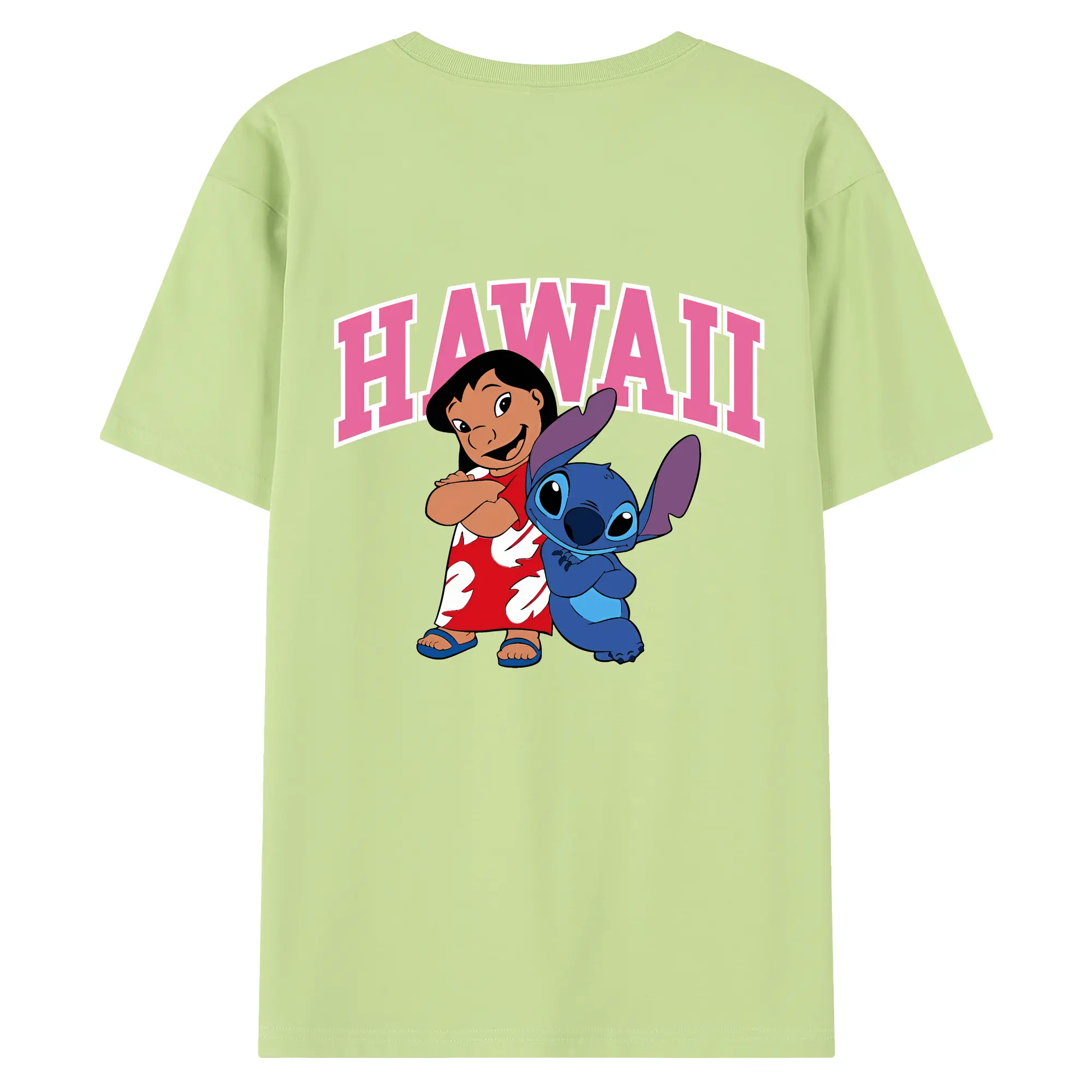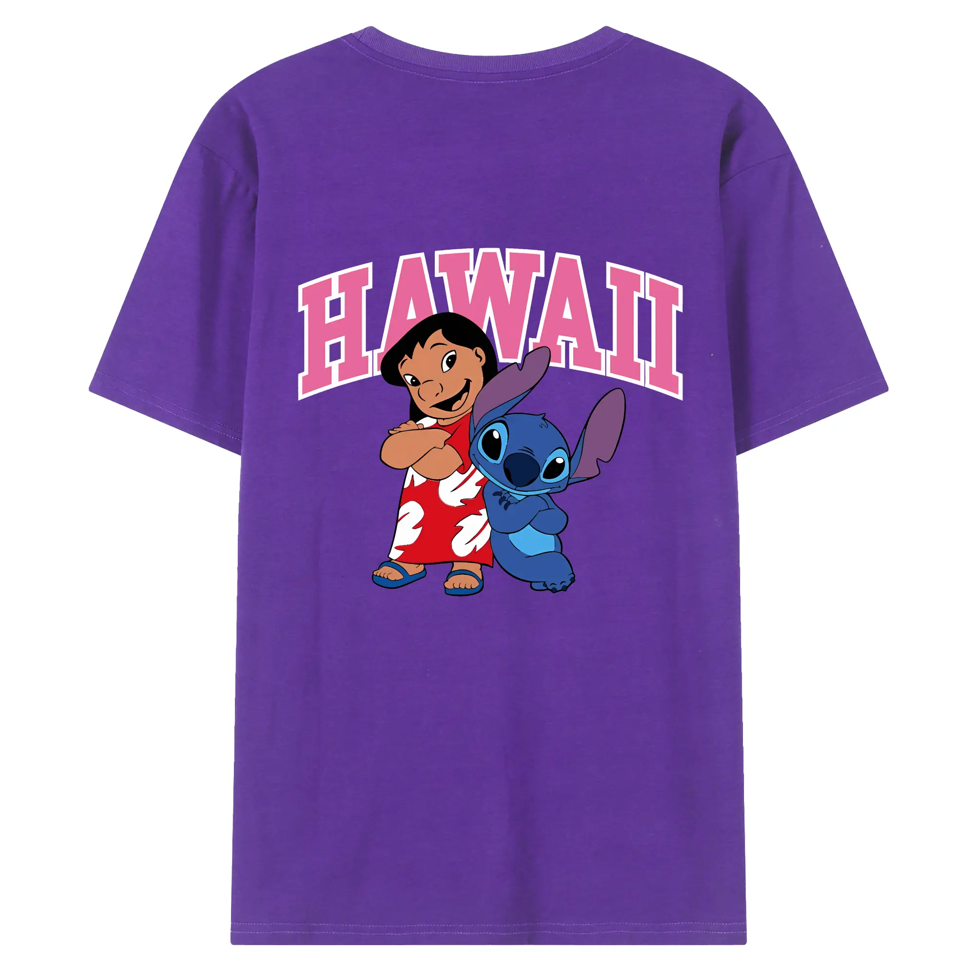 リロ&スティッチ グッズ スティッチ - 綿100% 半袖Tシャツ ・ バックプリント ・ 快適 通気性 ・ 日常使い 散歩 スポーツ用