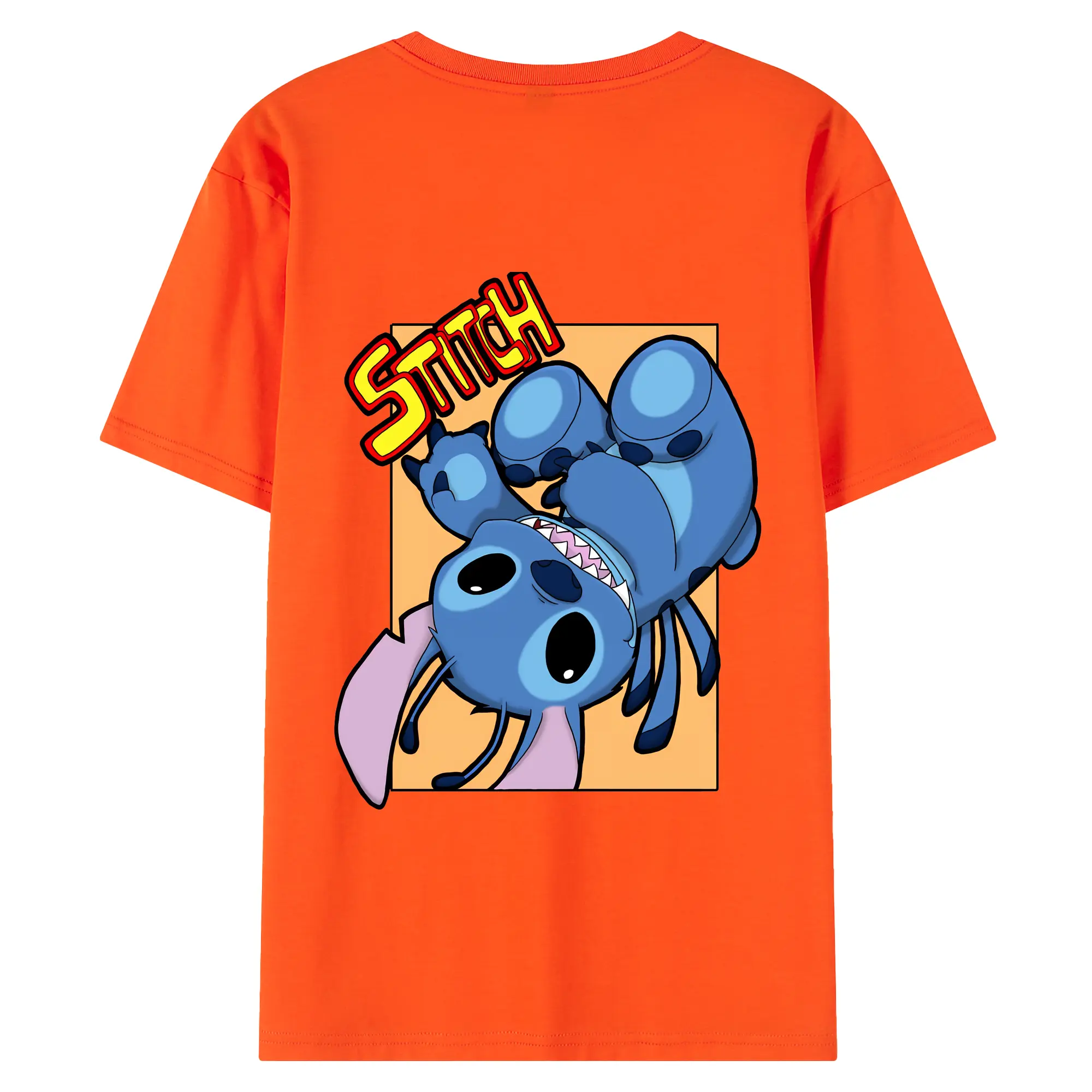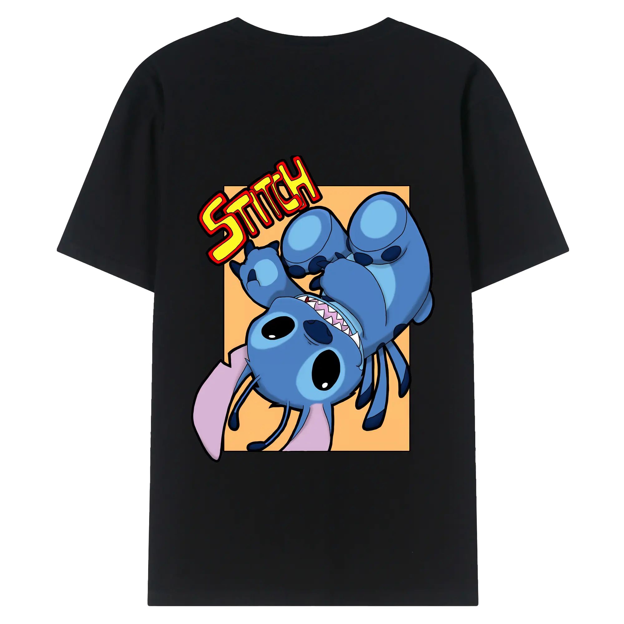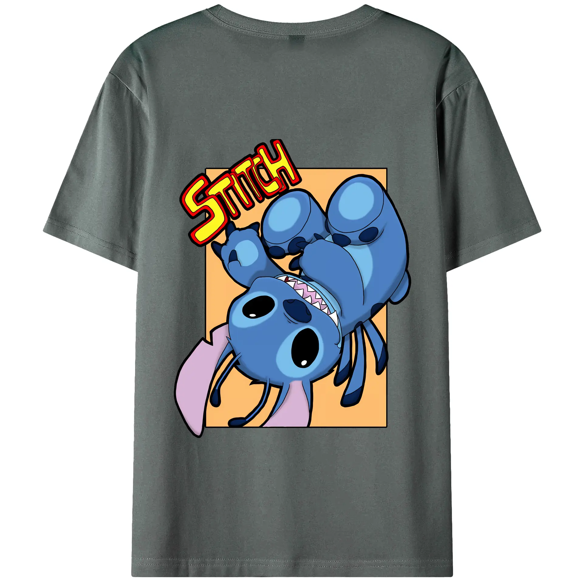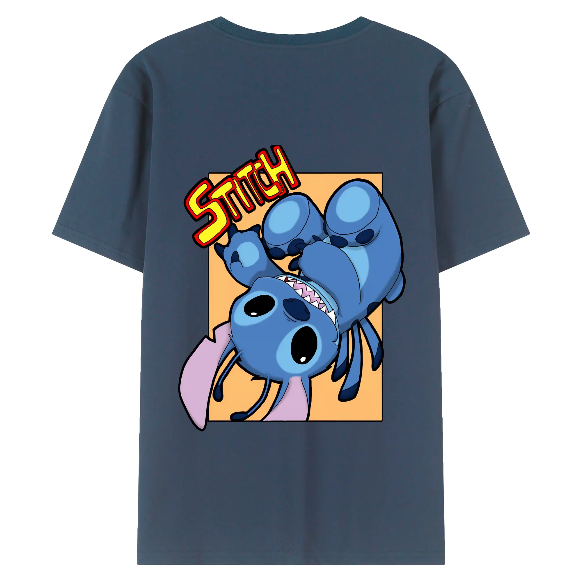 リロ&スティッチ グッズ スティッチ - 綿100% ヴィンテージ風 半袖Tシャツ ・ 背面プリント ・ 柔らか肌触り ・ 通気性 快適 ・ スポーツ カジュアル 外出用