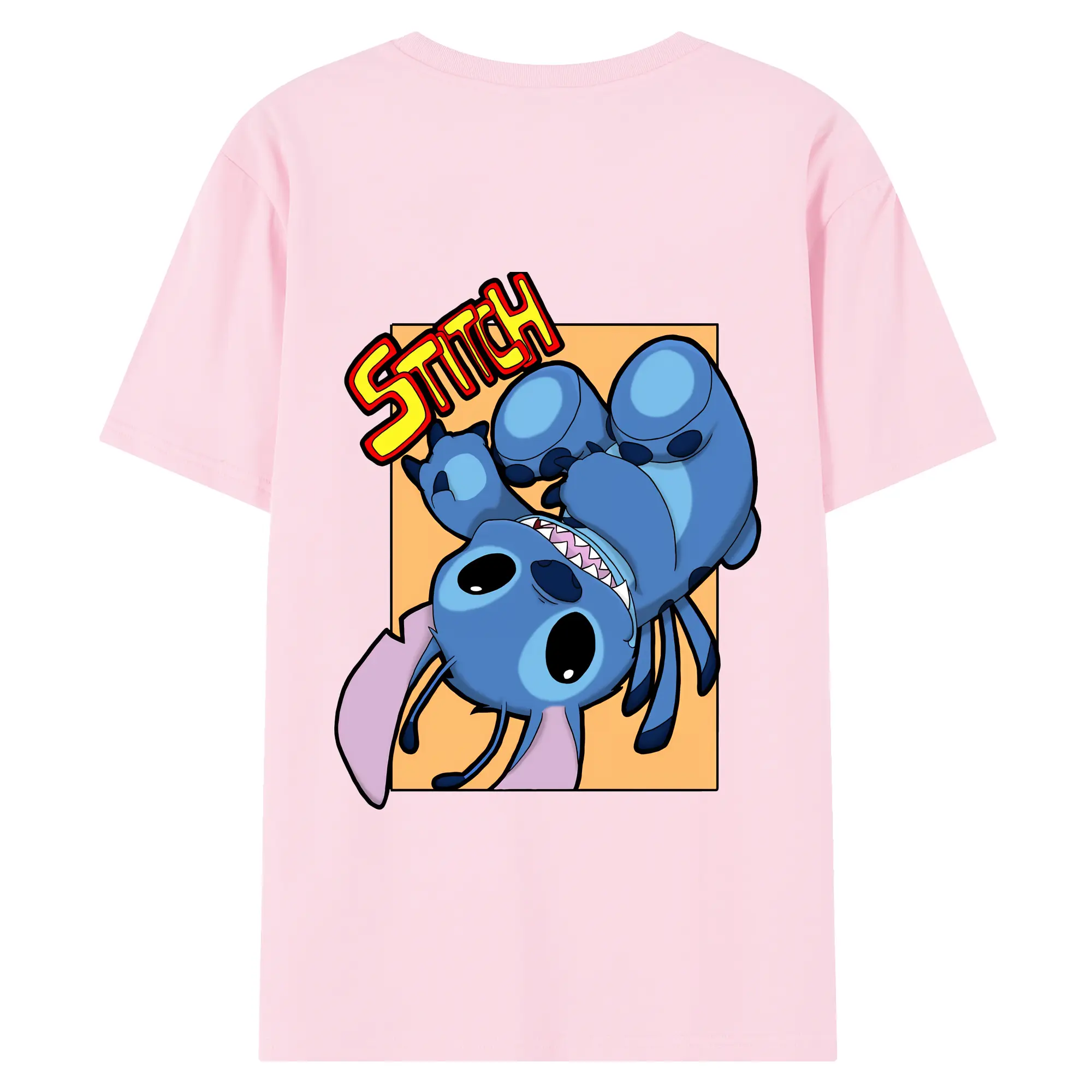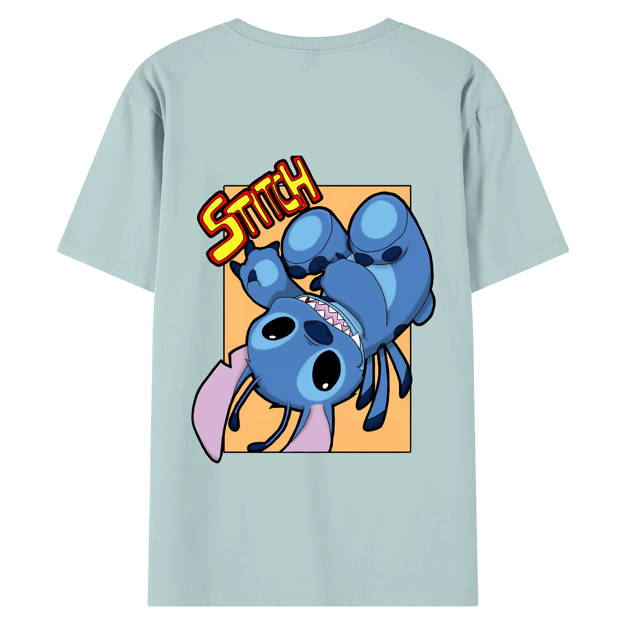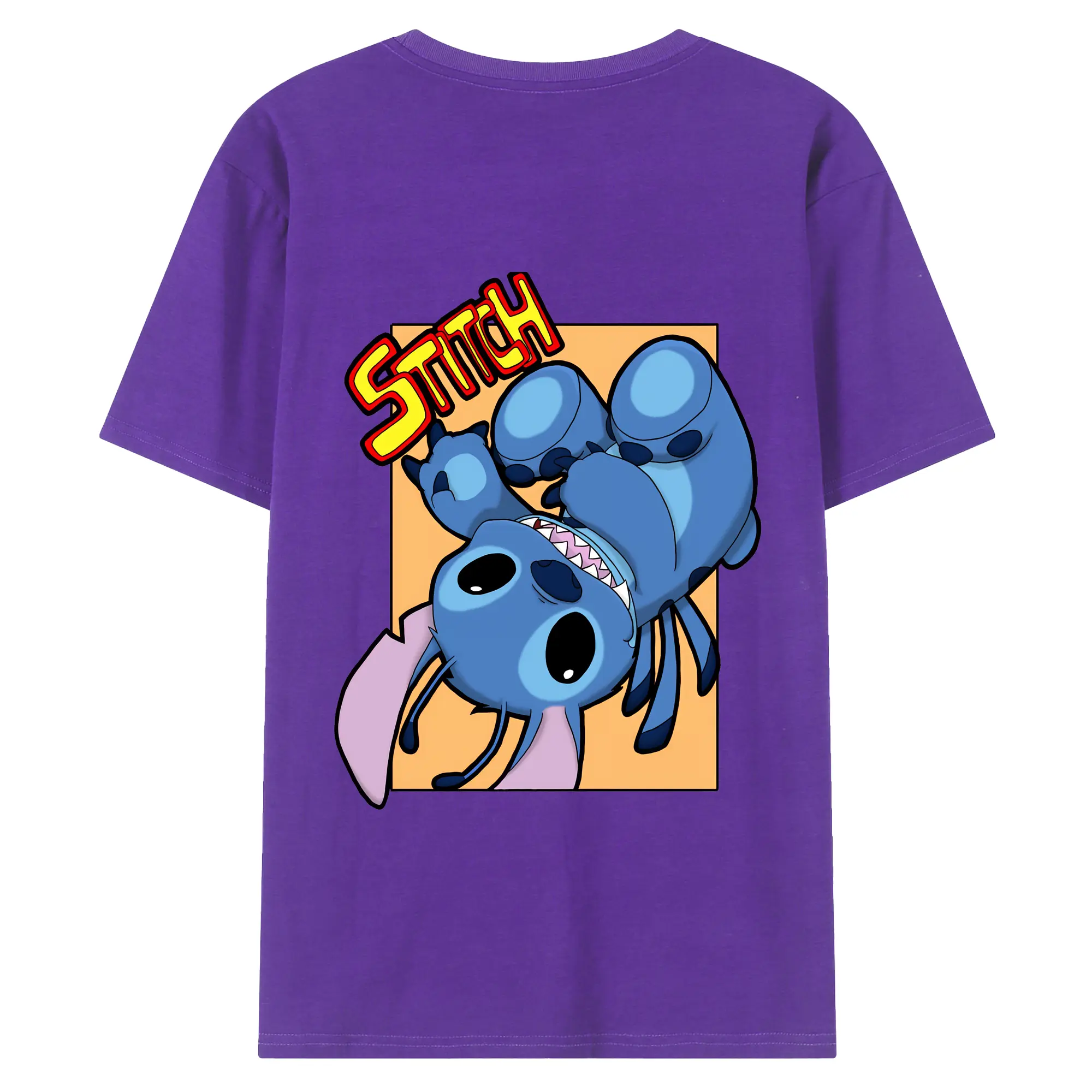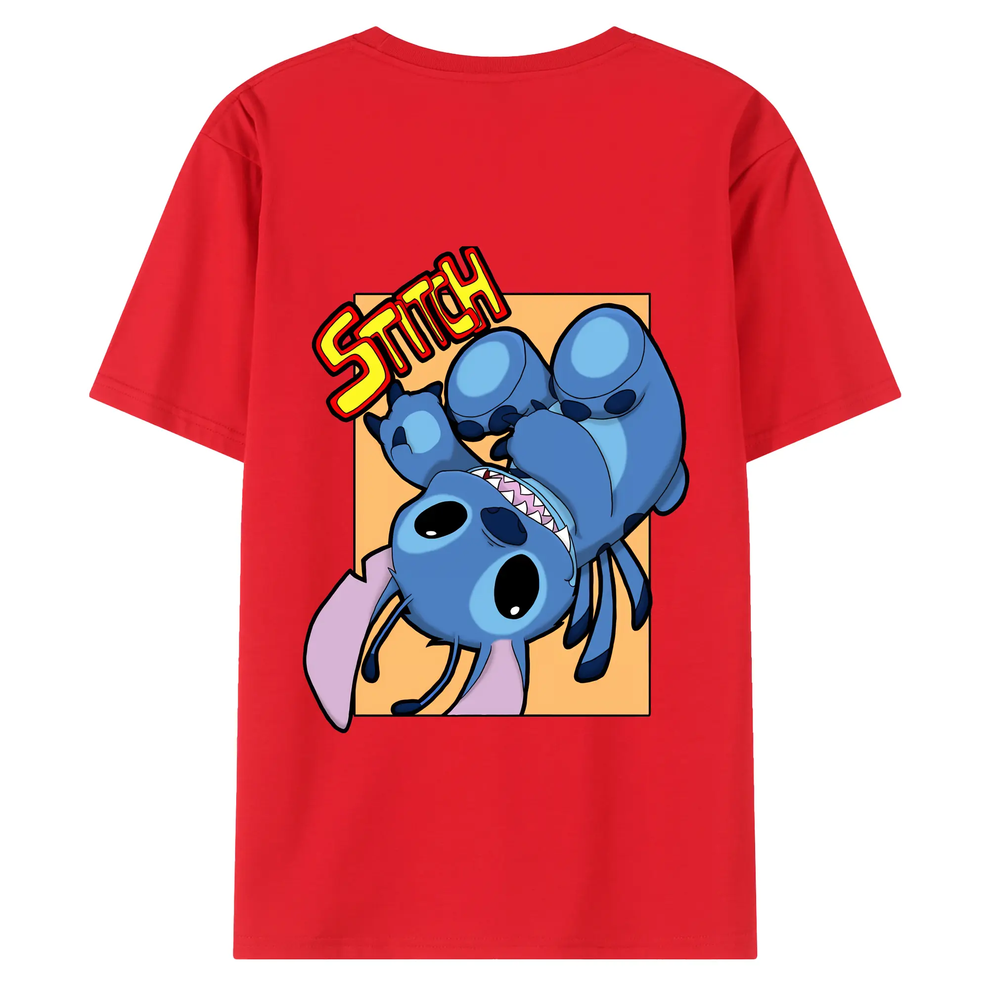 リロ&スティッチ グッズ スティッチ - 綿100% ヴィンテージ風 半袖Tシャツ ・ 背面プリント ・ 柔らか肌触り ・ 通気性 快適 ・ スポーツ カジュアル 外出用