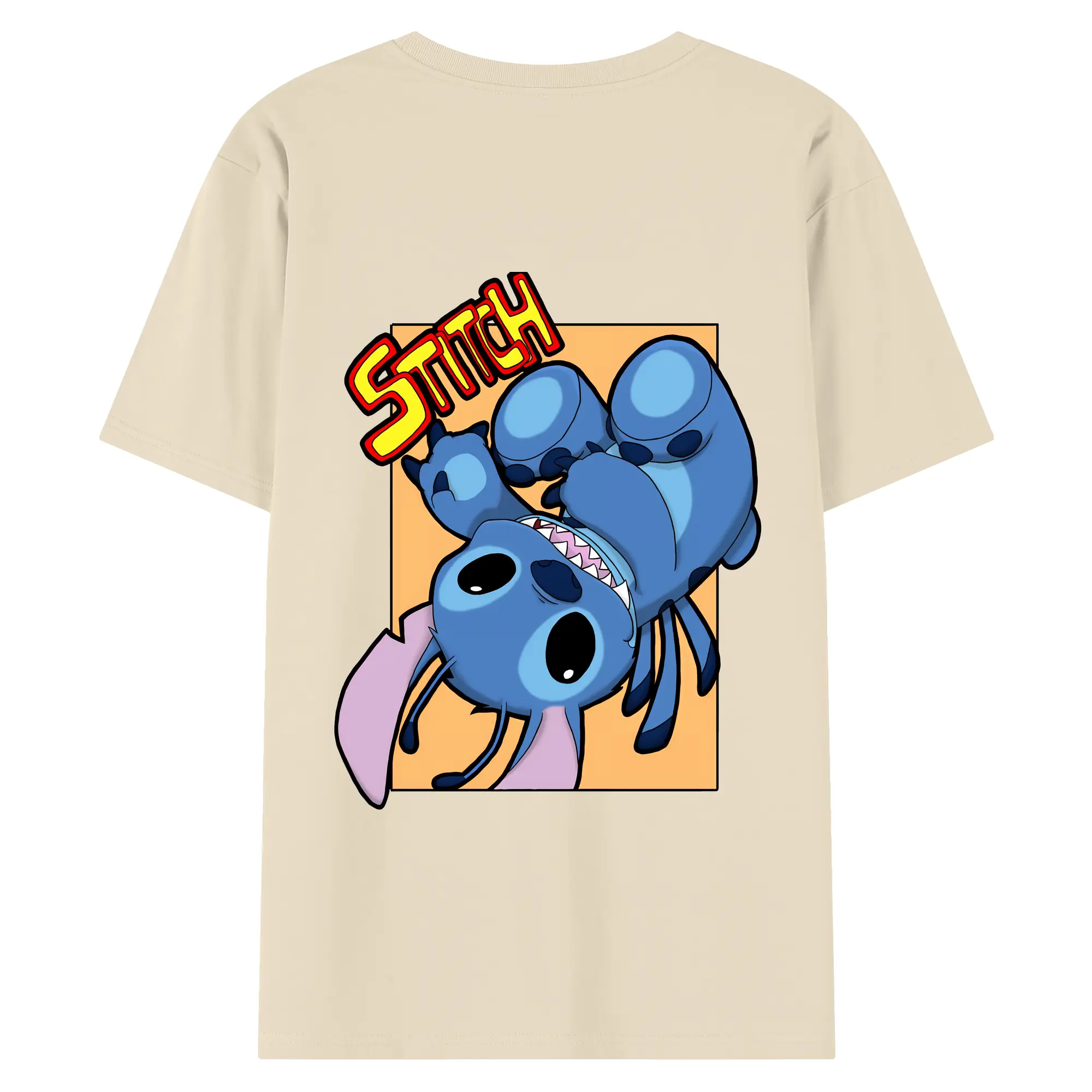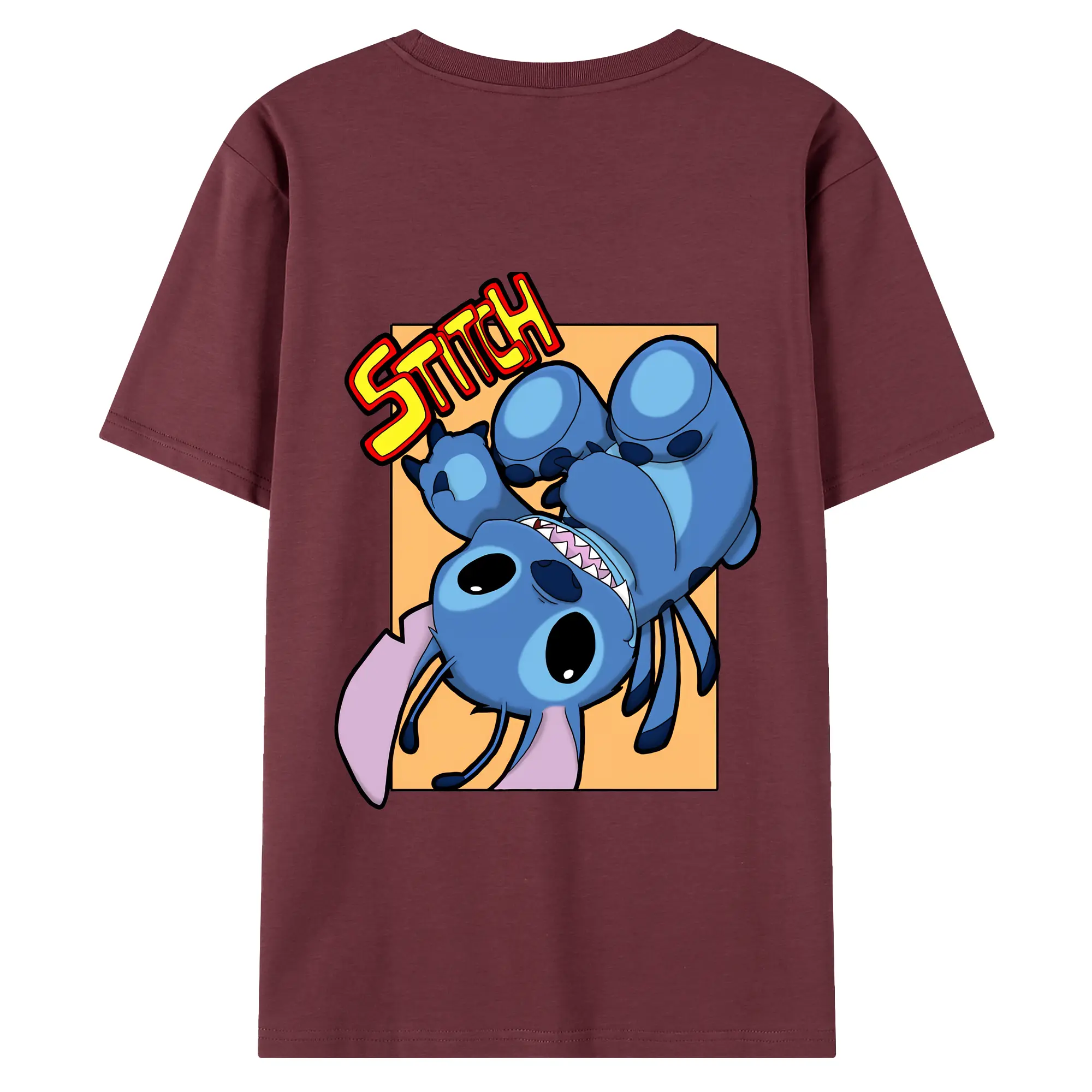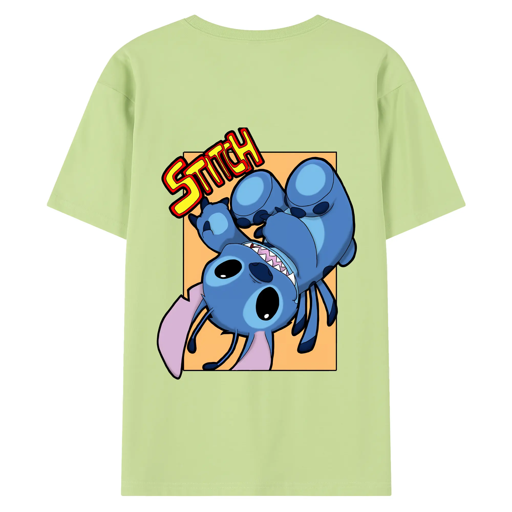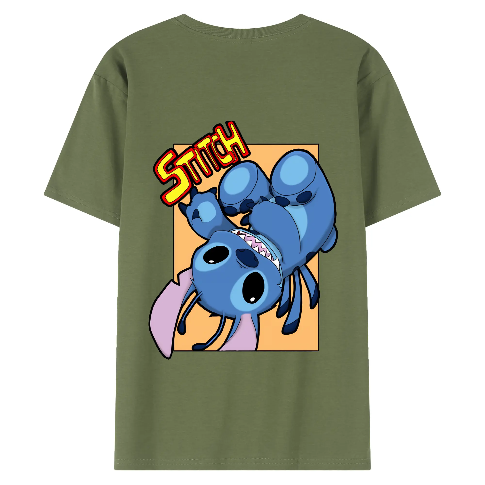 リロ&スティッチ グッズ スティッチ - 綿100% ヴィンテージ風 半袖Tシャツ ・ 背面プリント ・ 柔らか肌触り ・ 通気性 快適 ・ スポーツ カジュアル 外出用