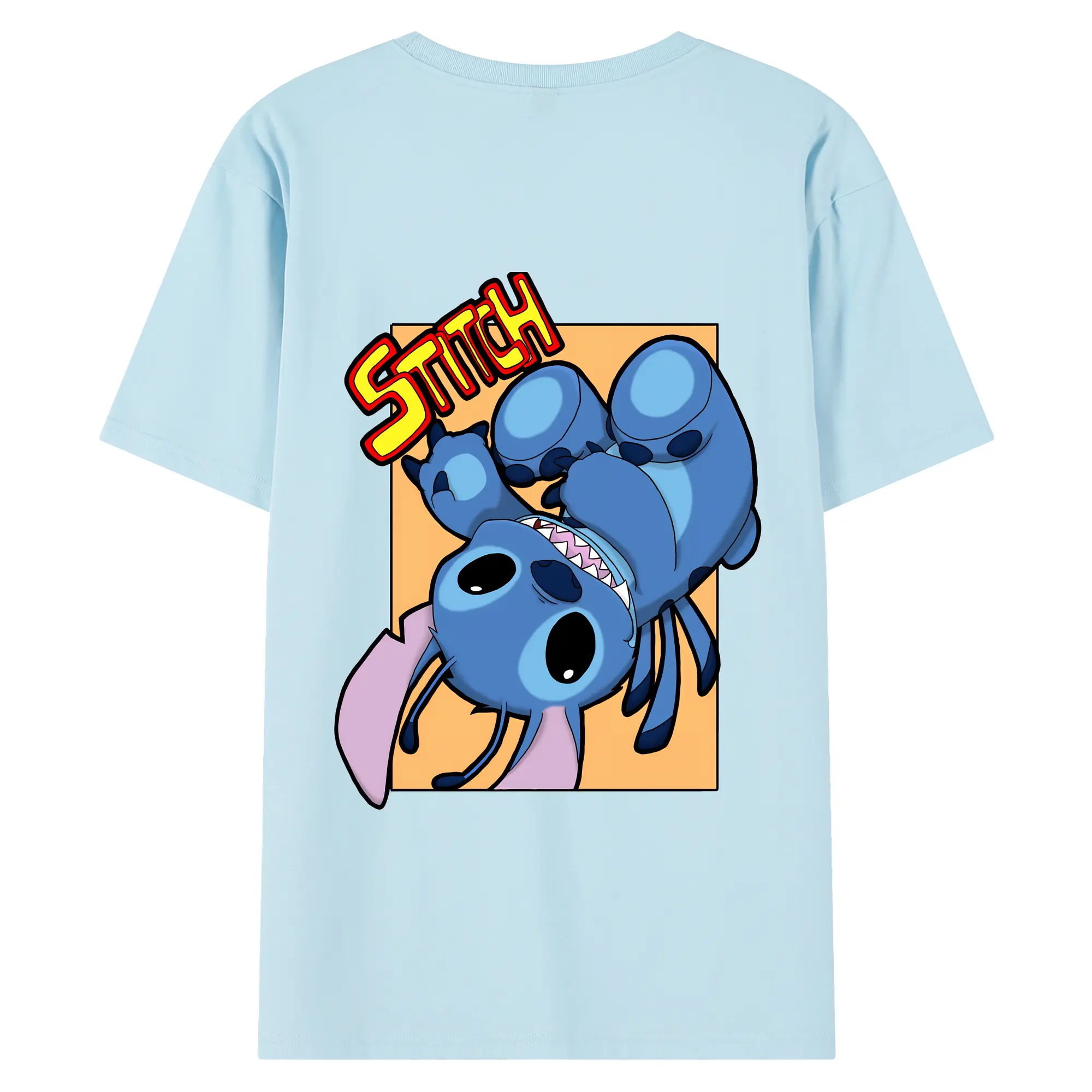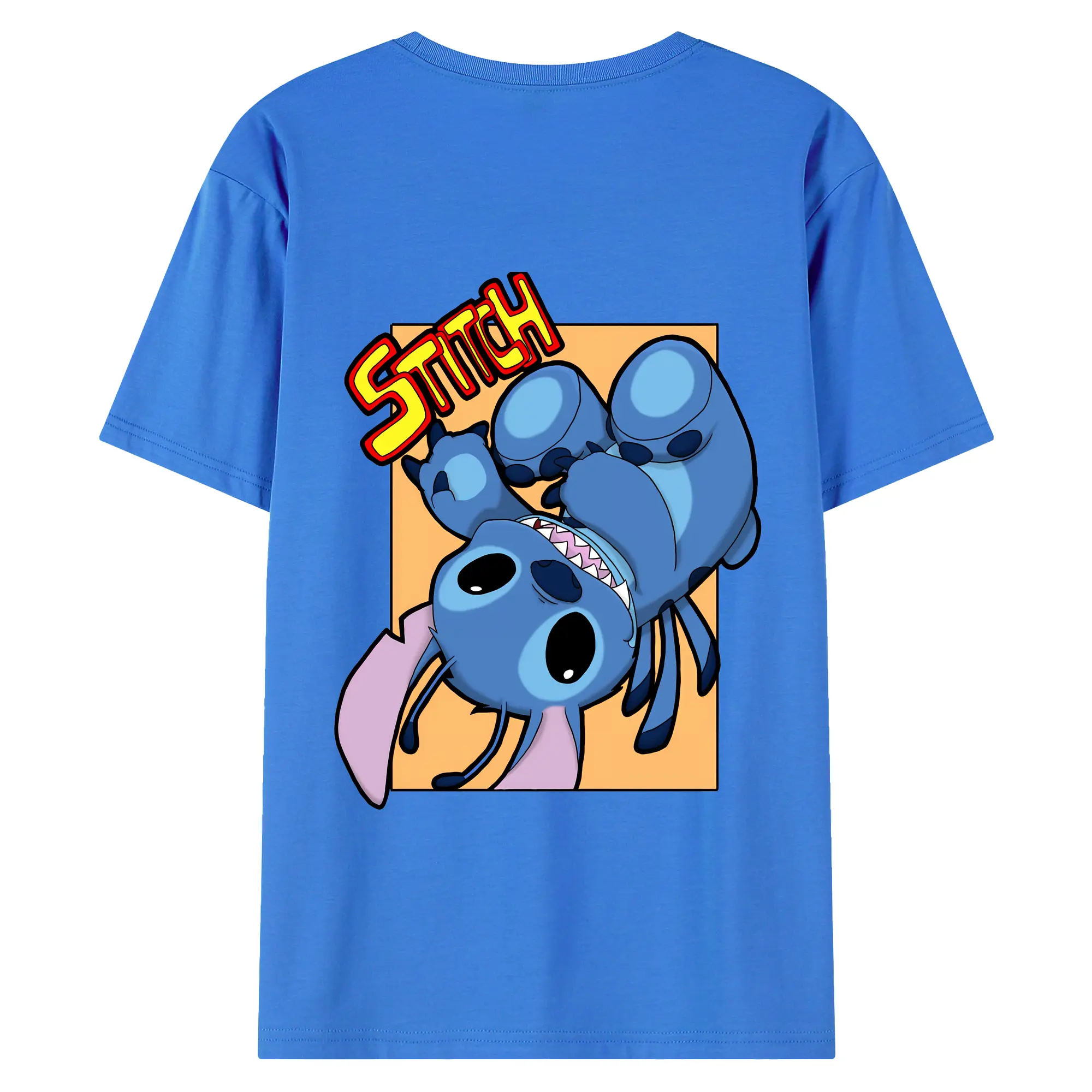 リロ&スティッチ グッズ スティッチ - 綿100% 半袖Tシャツ ・ フロントプリント ・ 快適 通気性 ・ 日常使い 散歩 スポーツ用