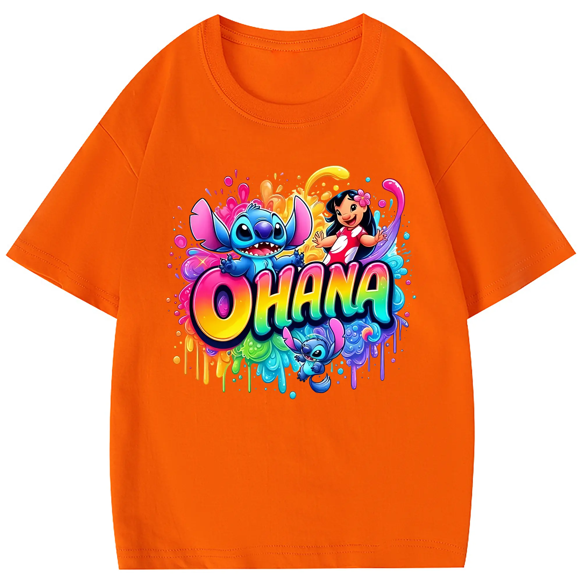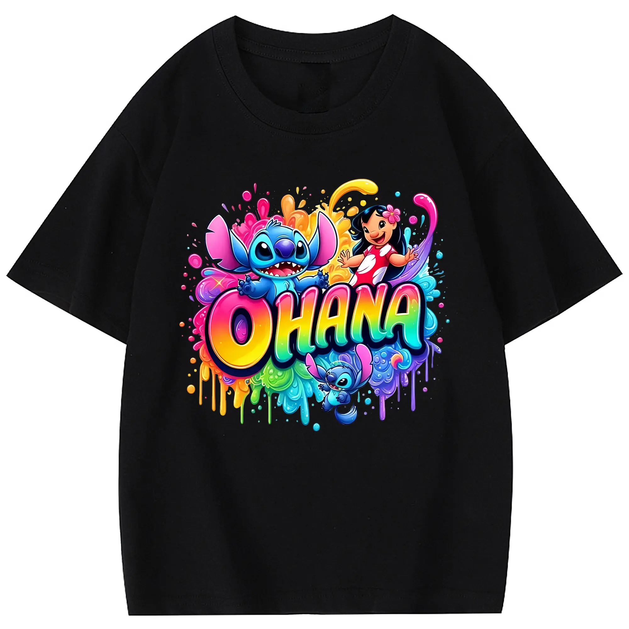 リロ&スティッチ グッズ スティッチ - 綿100% 半袖Tシャツ ・ バックプリント ・ 快適 通気性 ・ 日常使い 散歩 スポーツ用