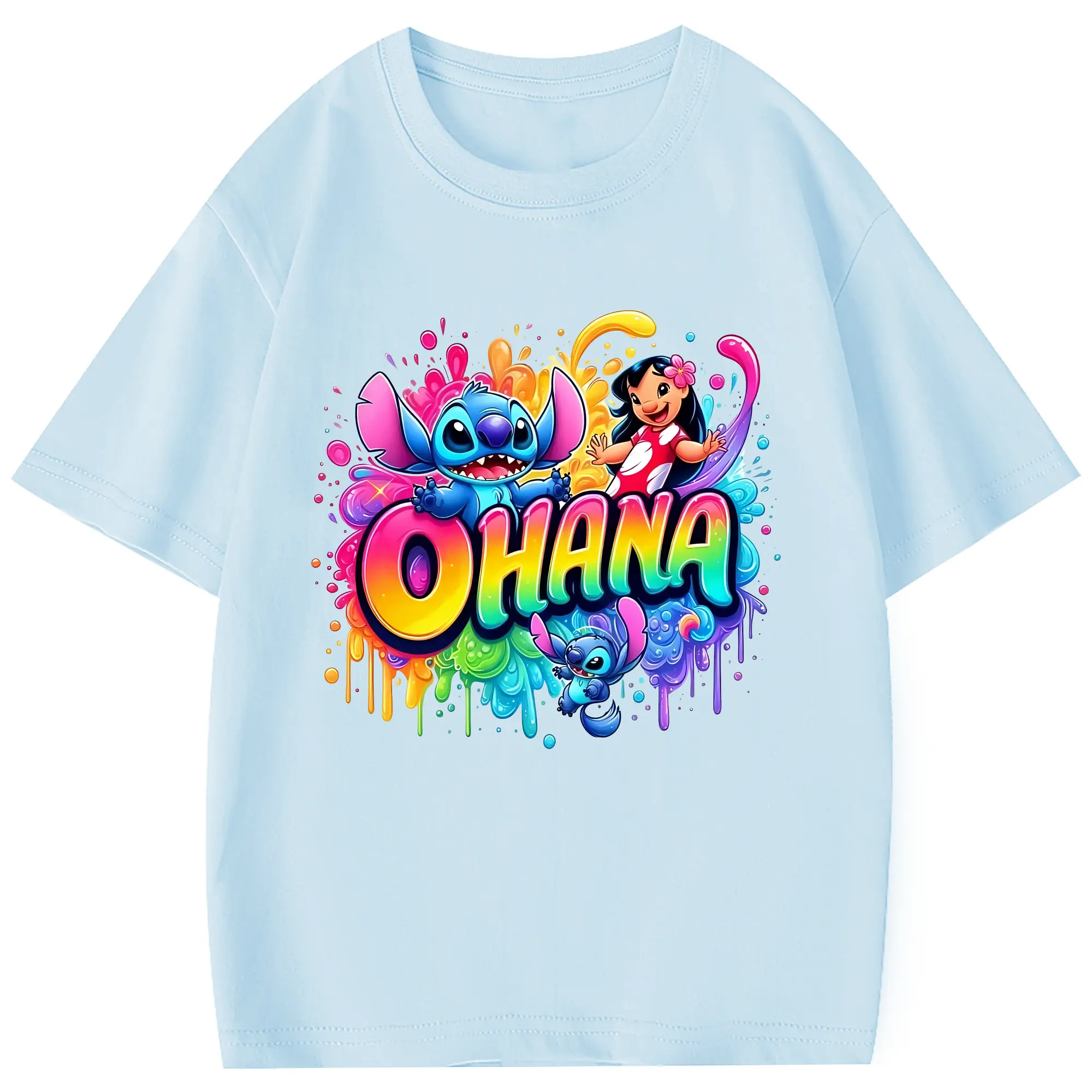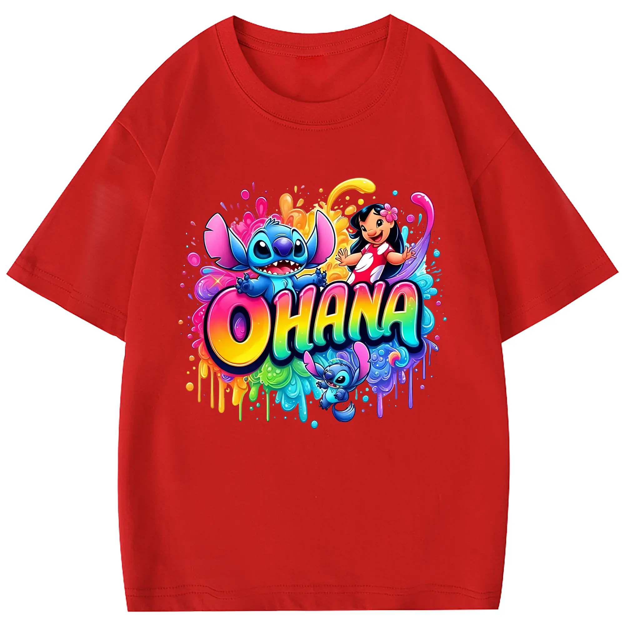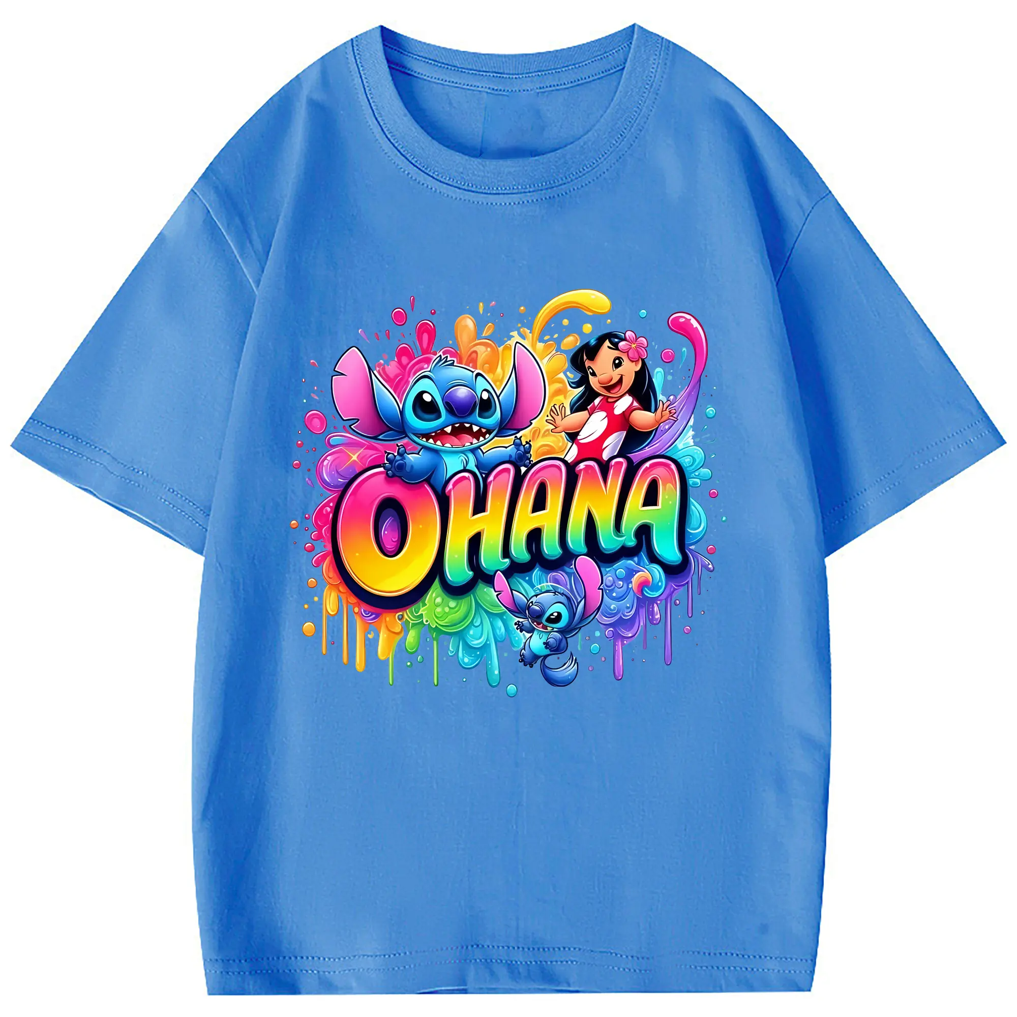 リロ&スティッチ グッズ スティッチ - 綿100% 半袖Tシャツ ・ フロントプリント ・ 快適 通気性 ・ 日常使い 散歩 スポーツ用