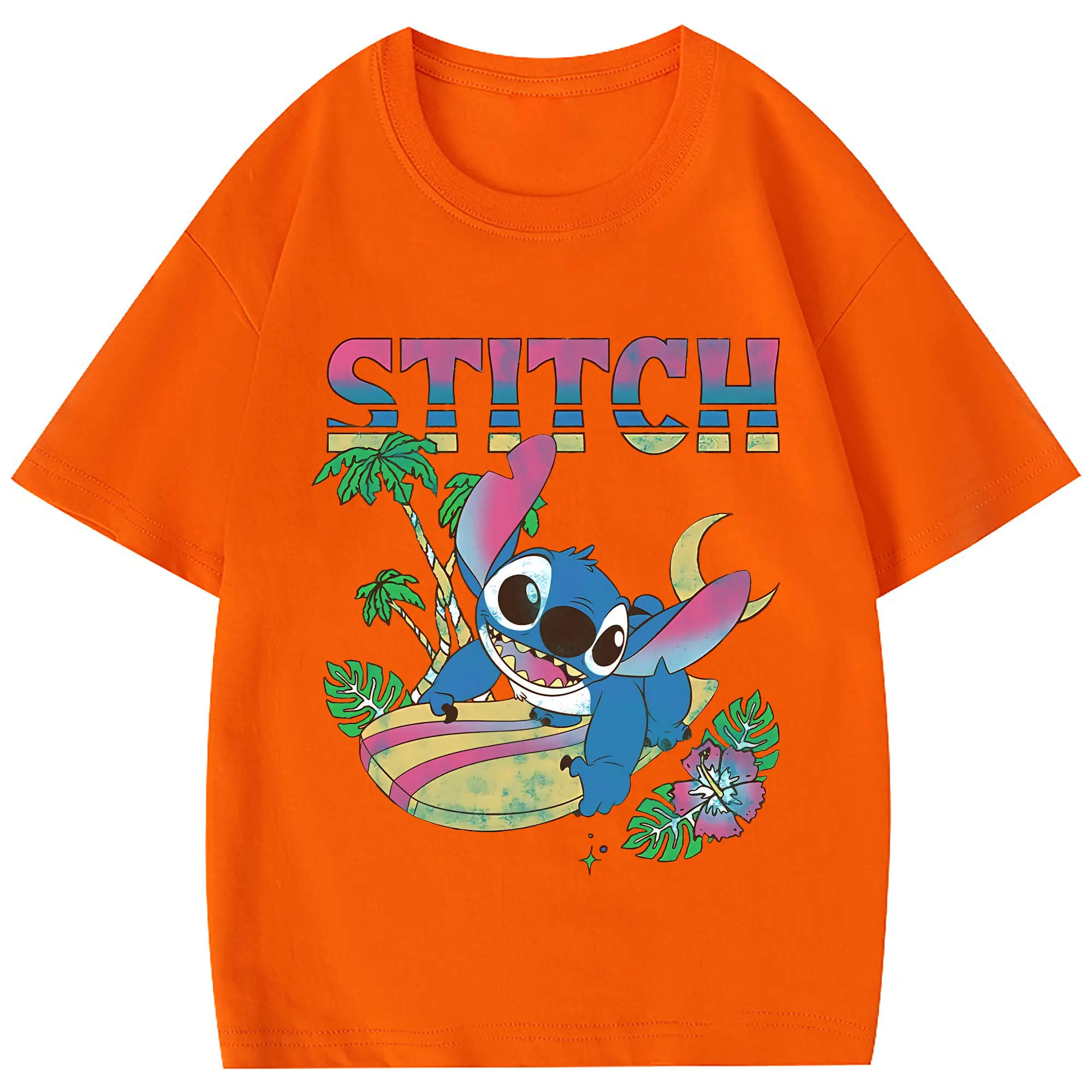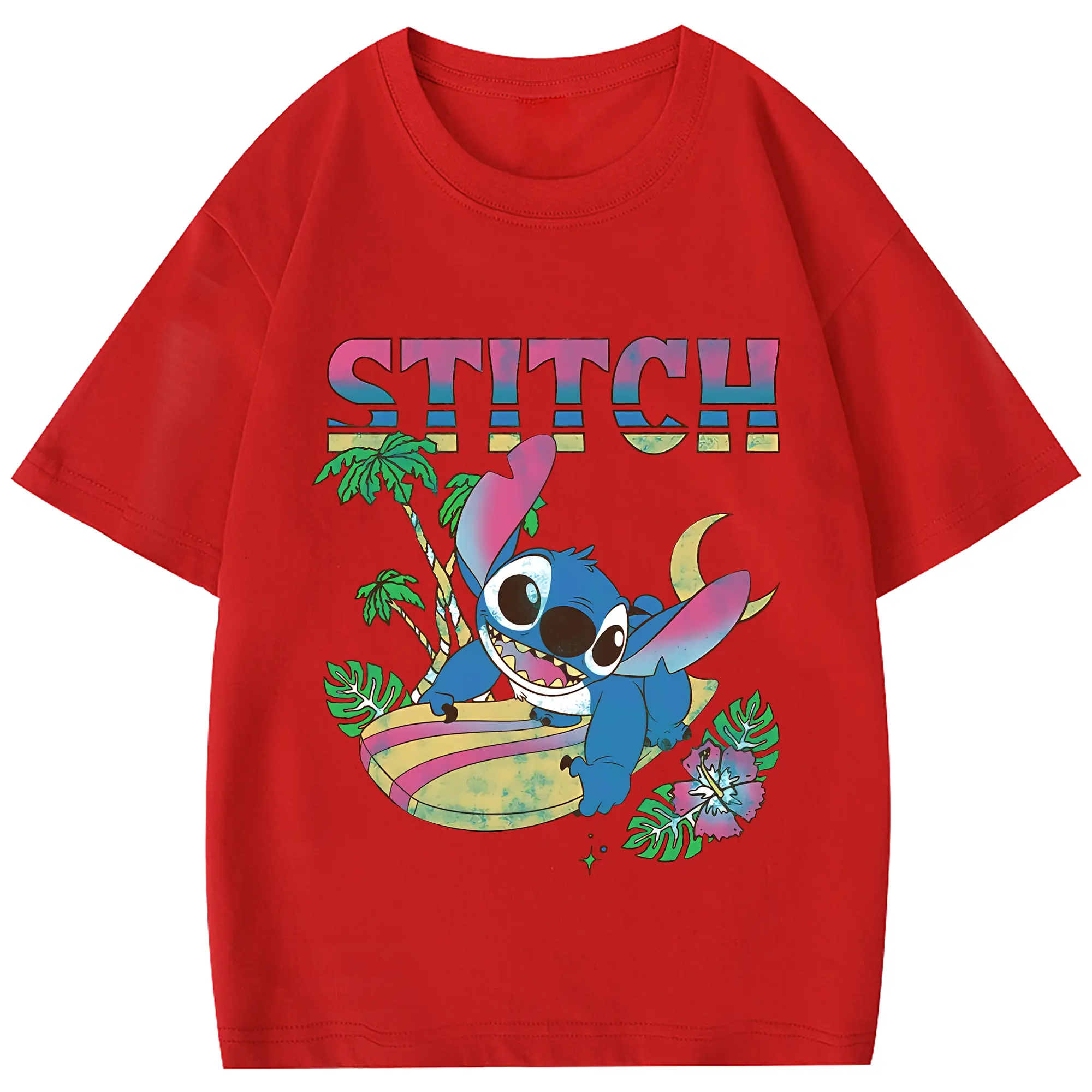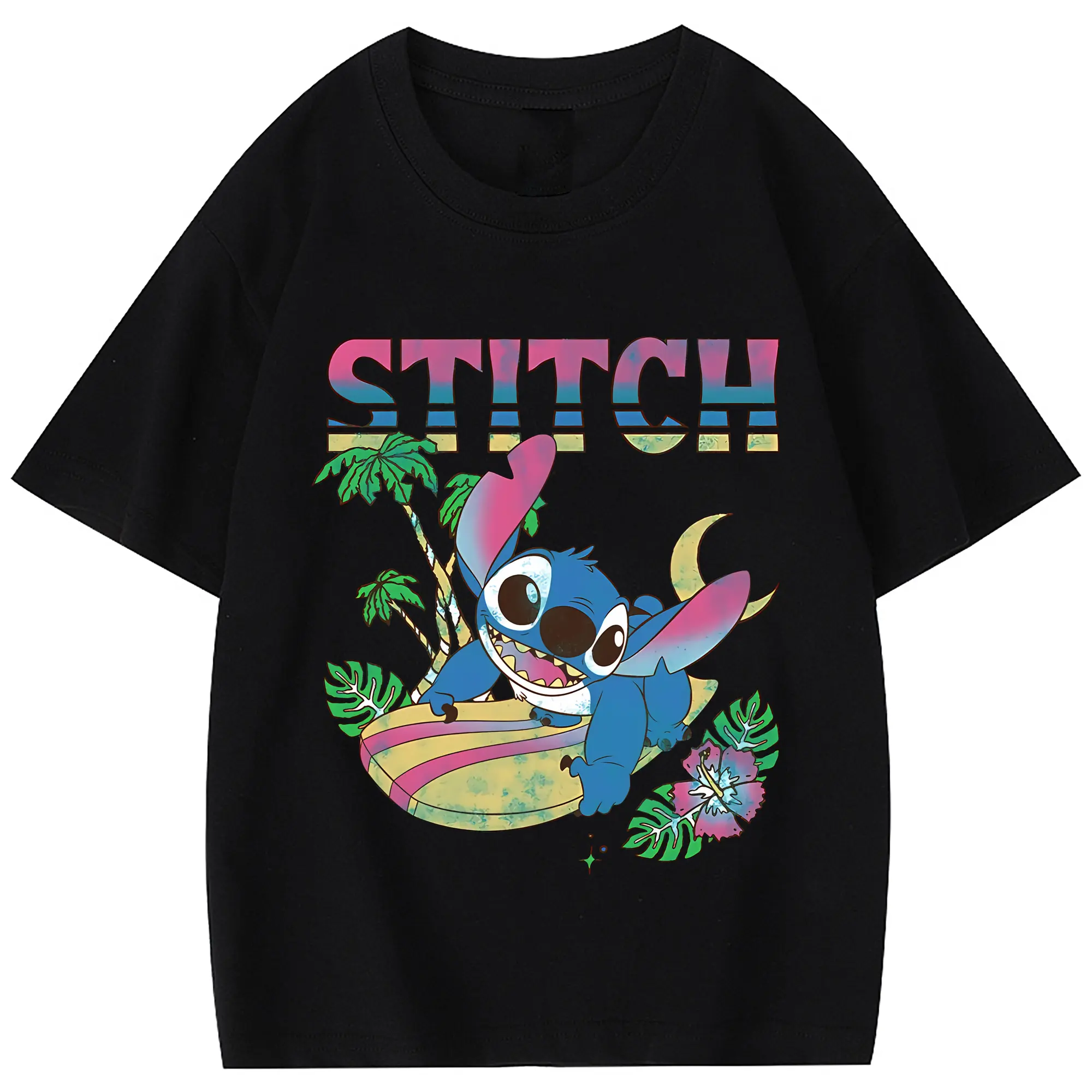 リロ&スティッチ グッズ スティッチ - 綿100% 半袖Tシャツ ・ バックプリント ・ 快適 通気性 ・ 日常使い 散歩 スポーツ用
