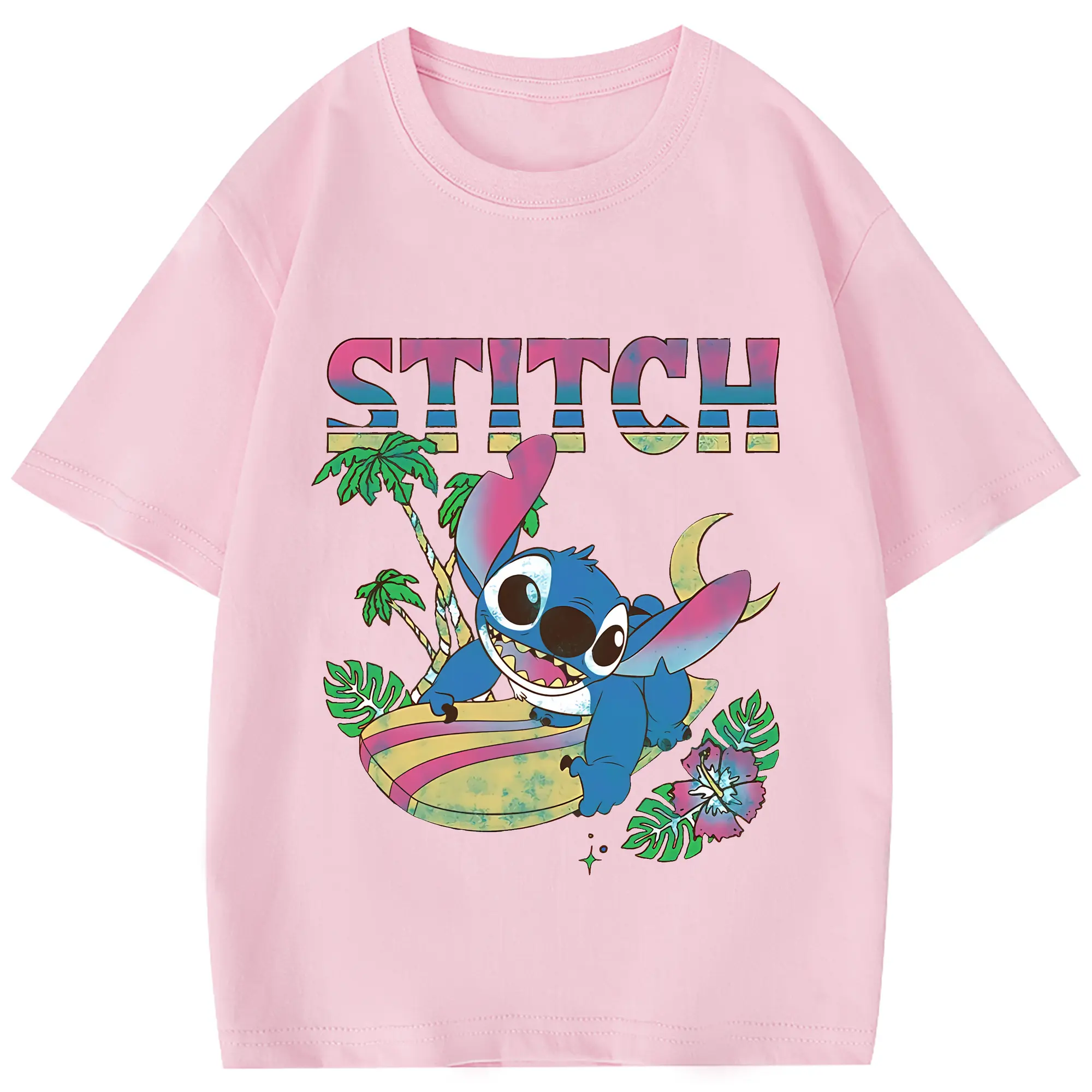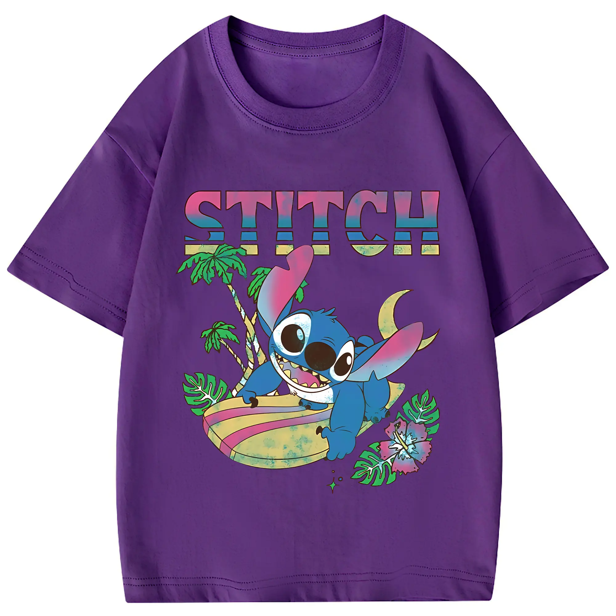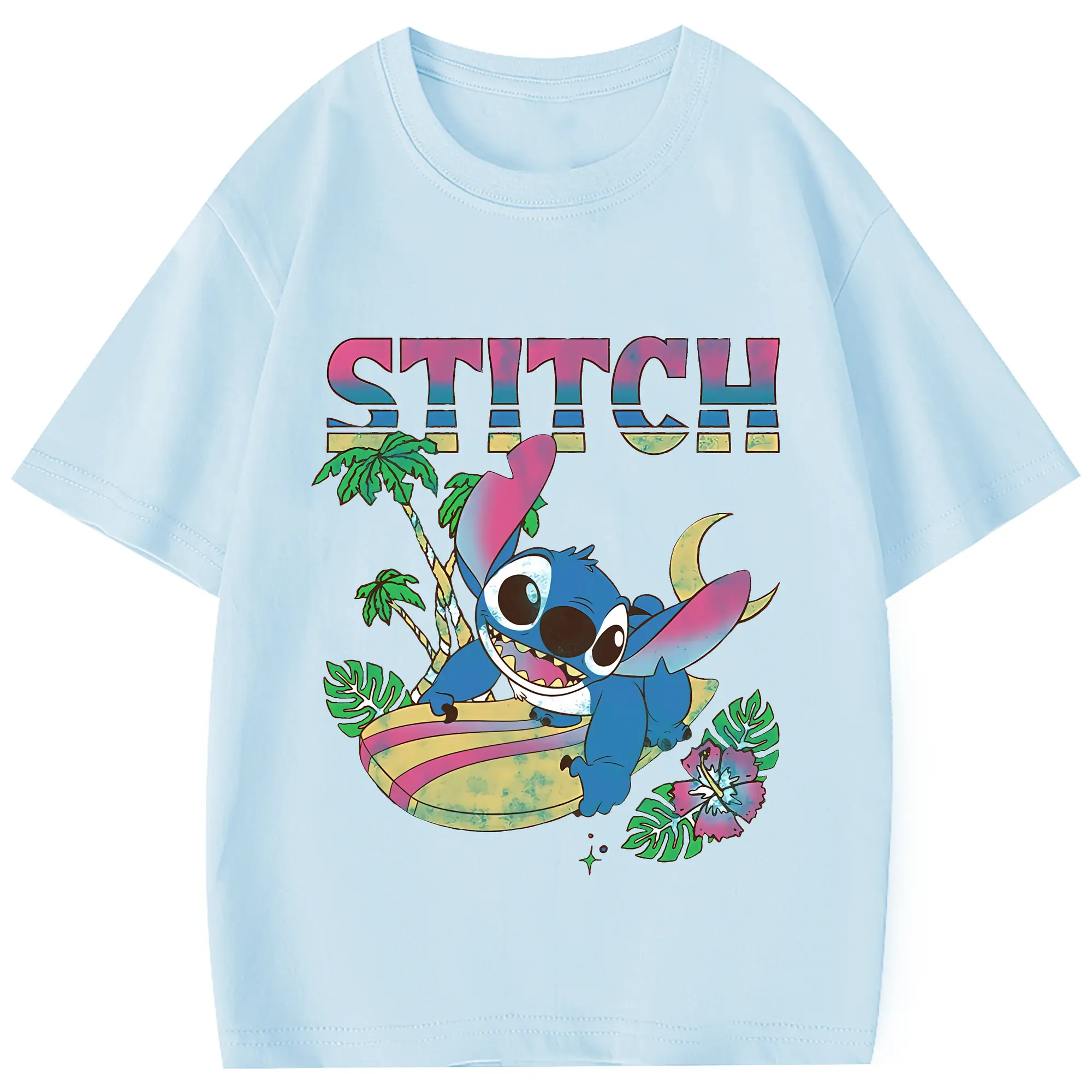 リロ&スティッチ グッズ スティッチ - 綿100% 半袖Tシャツ ・ バックプリント ・ 快適 通気性 ・ 日常使い 散歩 スポーツ用