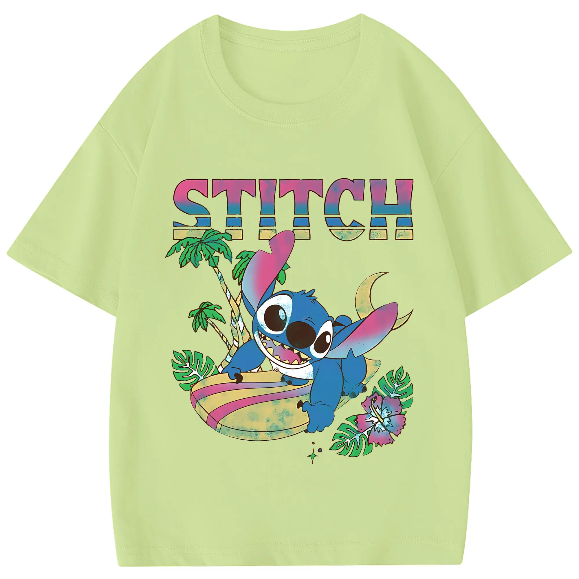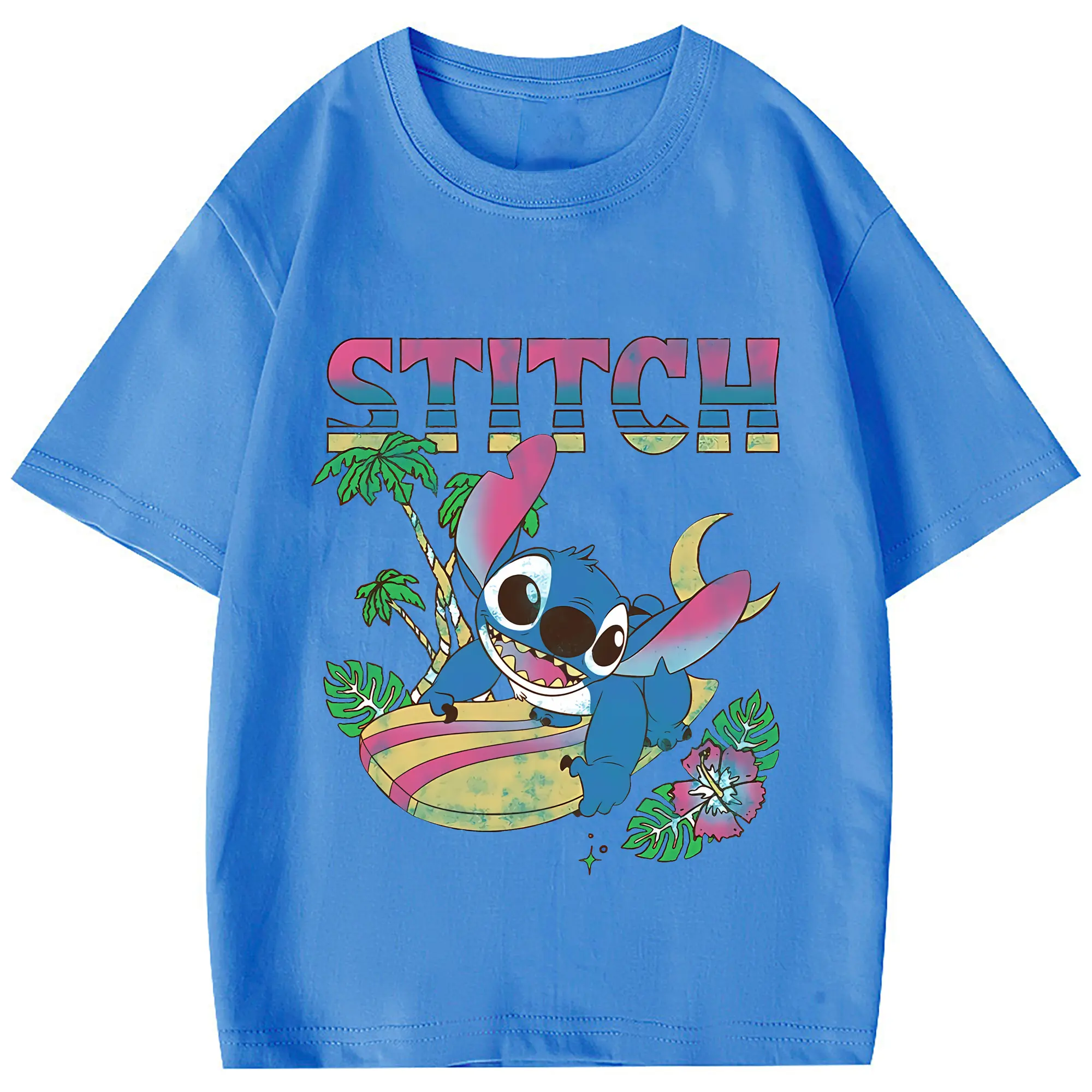 リロ&スティッチ グッズ スティッチ - 綿100% 半袖Tシャツ ・ フロントプリント ・ 快適 通気性 ・ 日常使い 散歩 スポーツ用