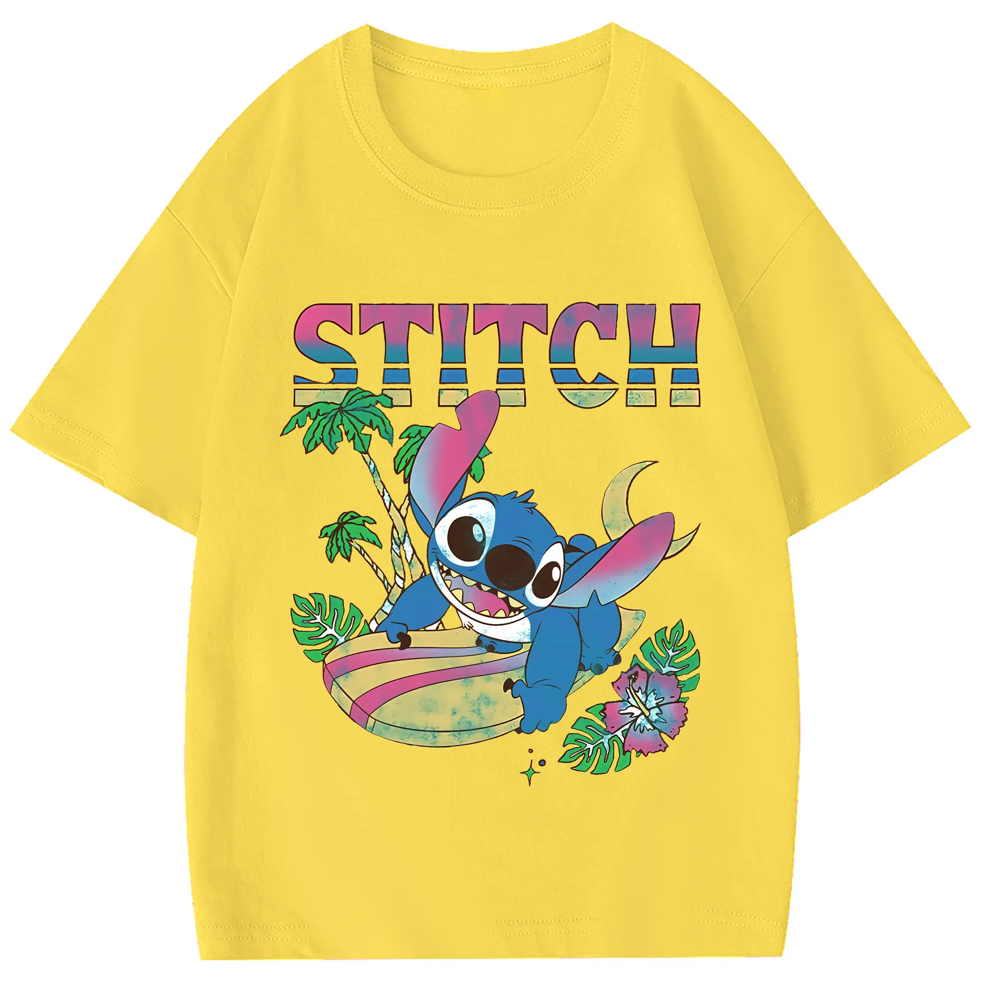 リロ&スティッチ グッズ スティッチ - 綿100% ヴィンテージ風 半袖Tシャツ ・ フロントプリント ・ 柔らか肌触り ・ 通気性 快適 ・ スポーツ カジュアル 外出用