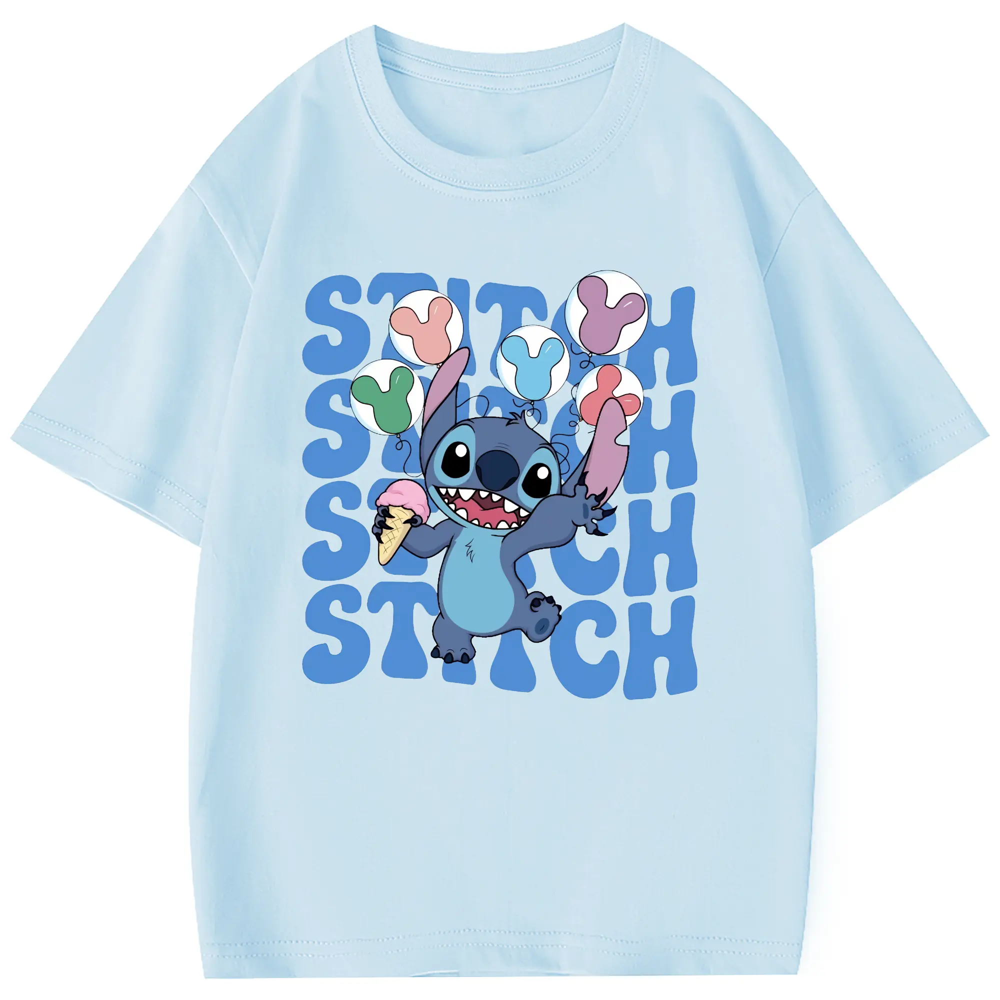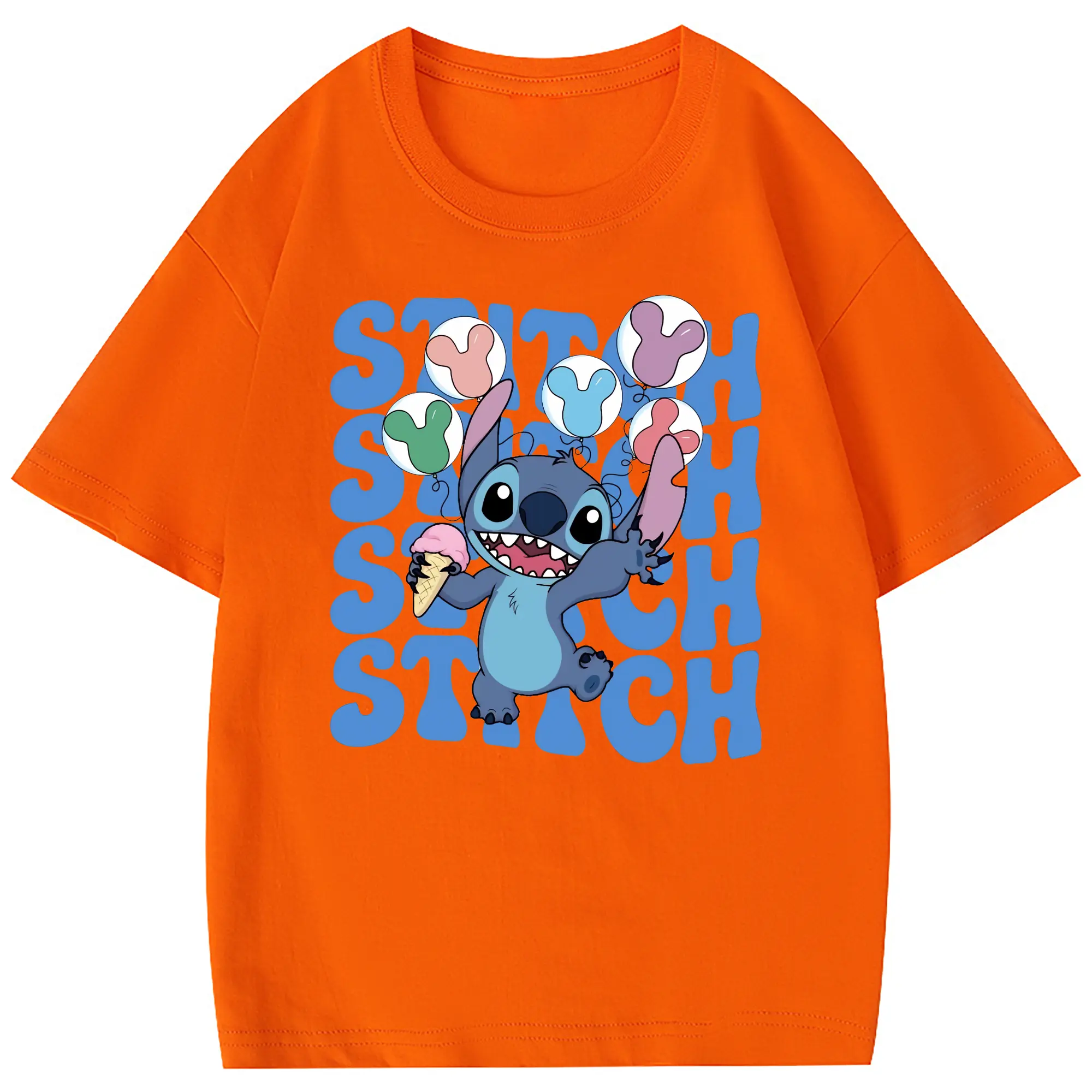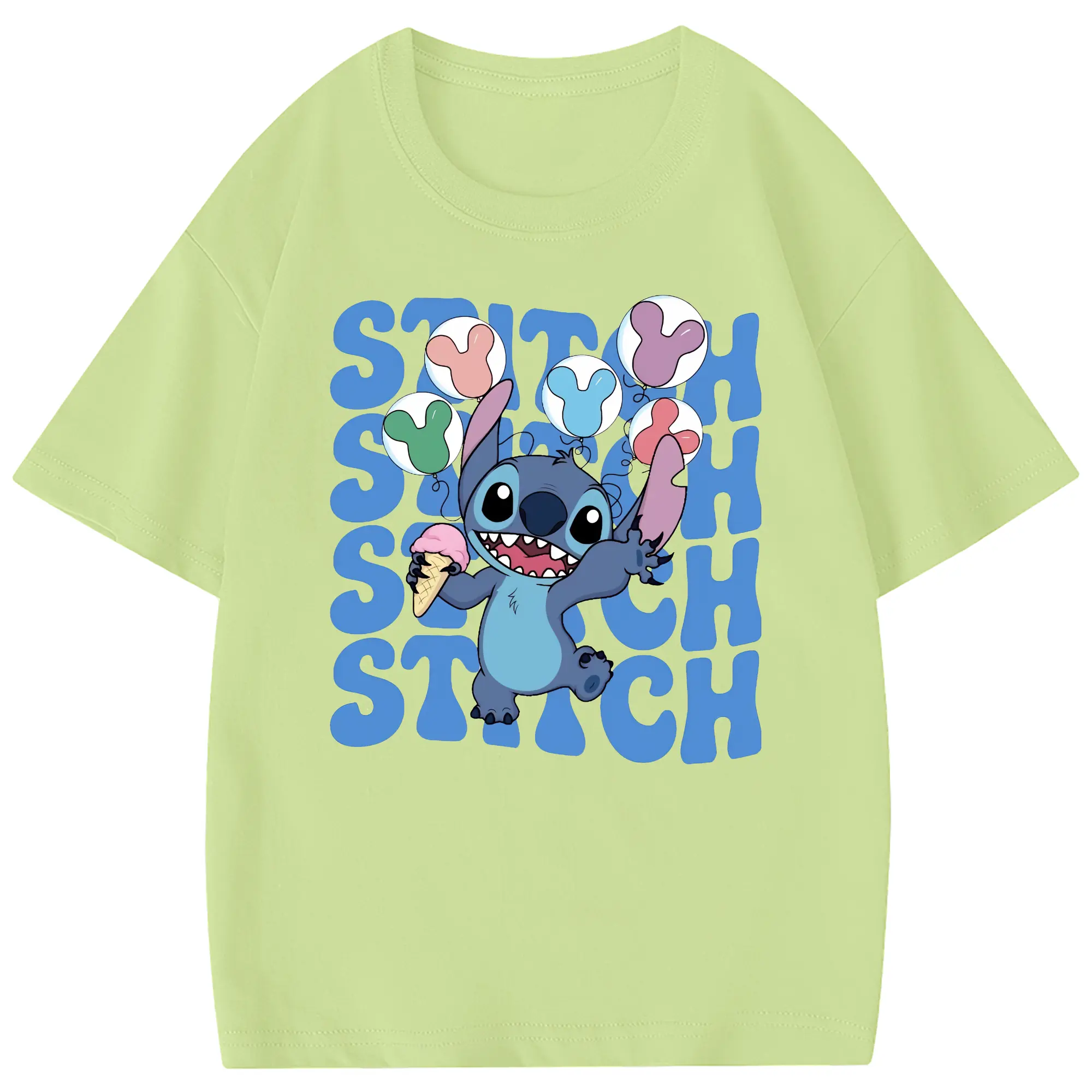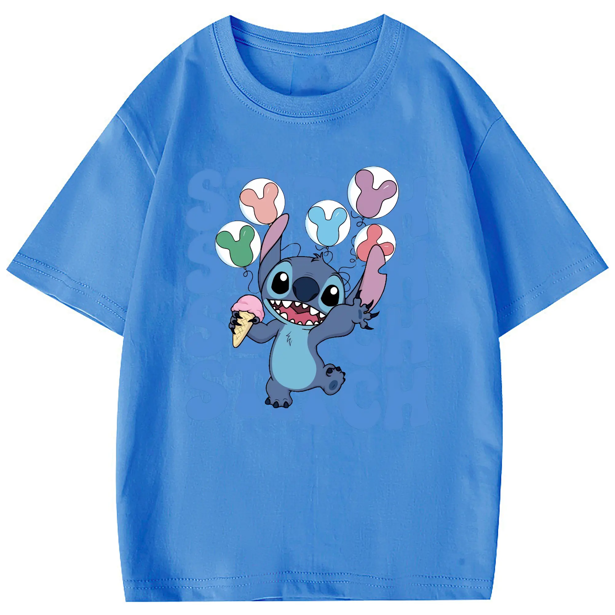 リロ&スティッチ グッズ スティッチ - 綿100% 半袖Tシャツ ・ フロントプリント ・ 快適 通気性 ・ 日常使い 散歩 スポーツ用
