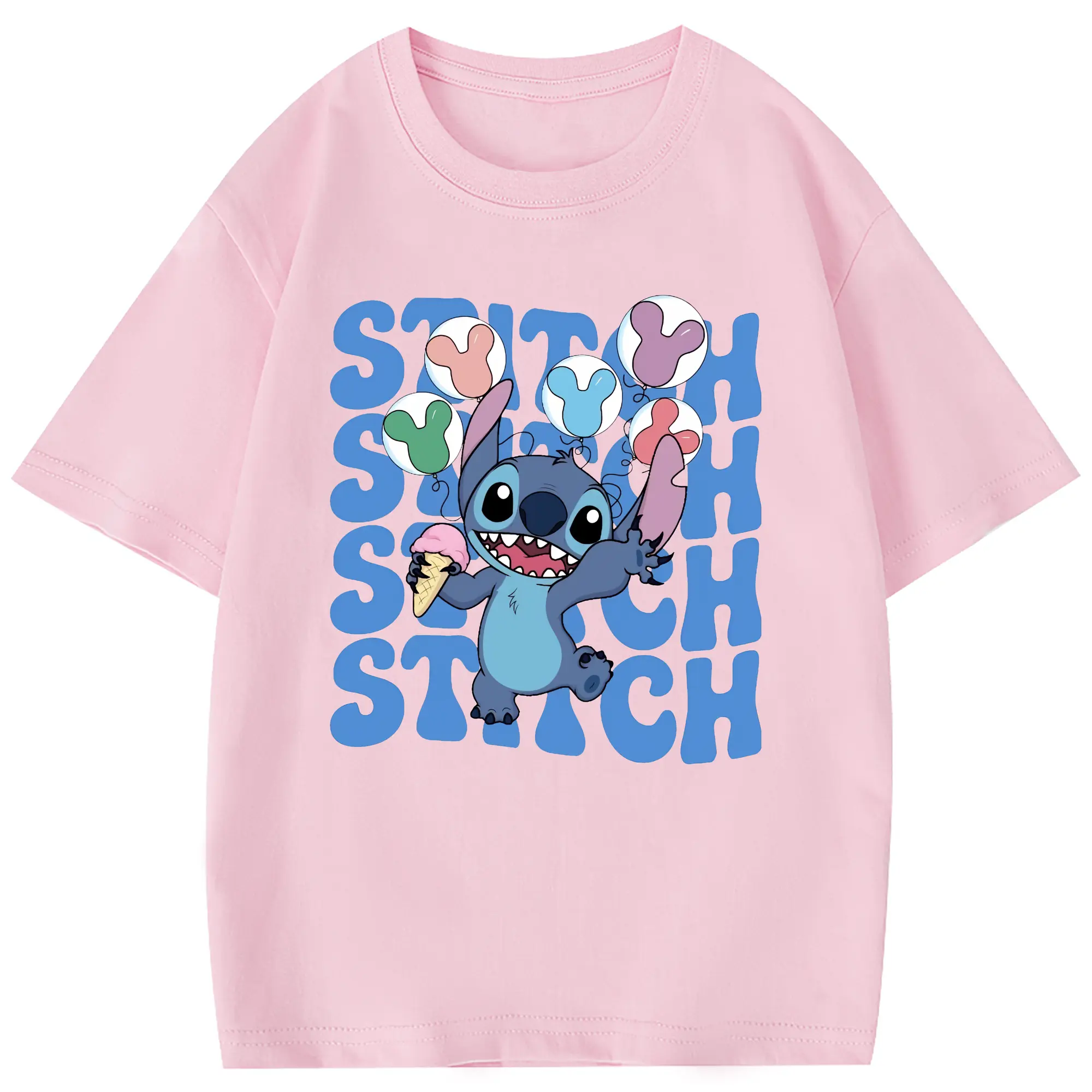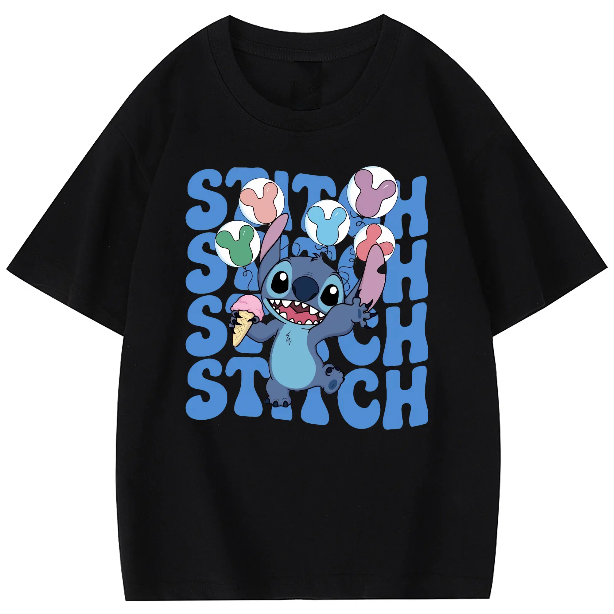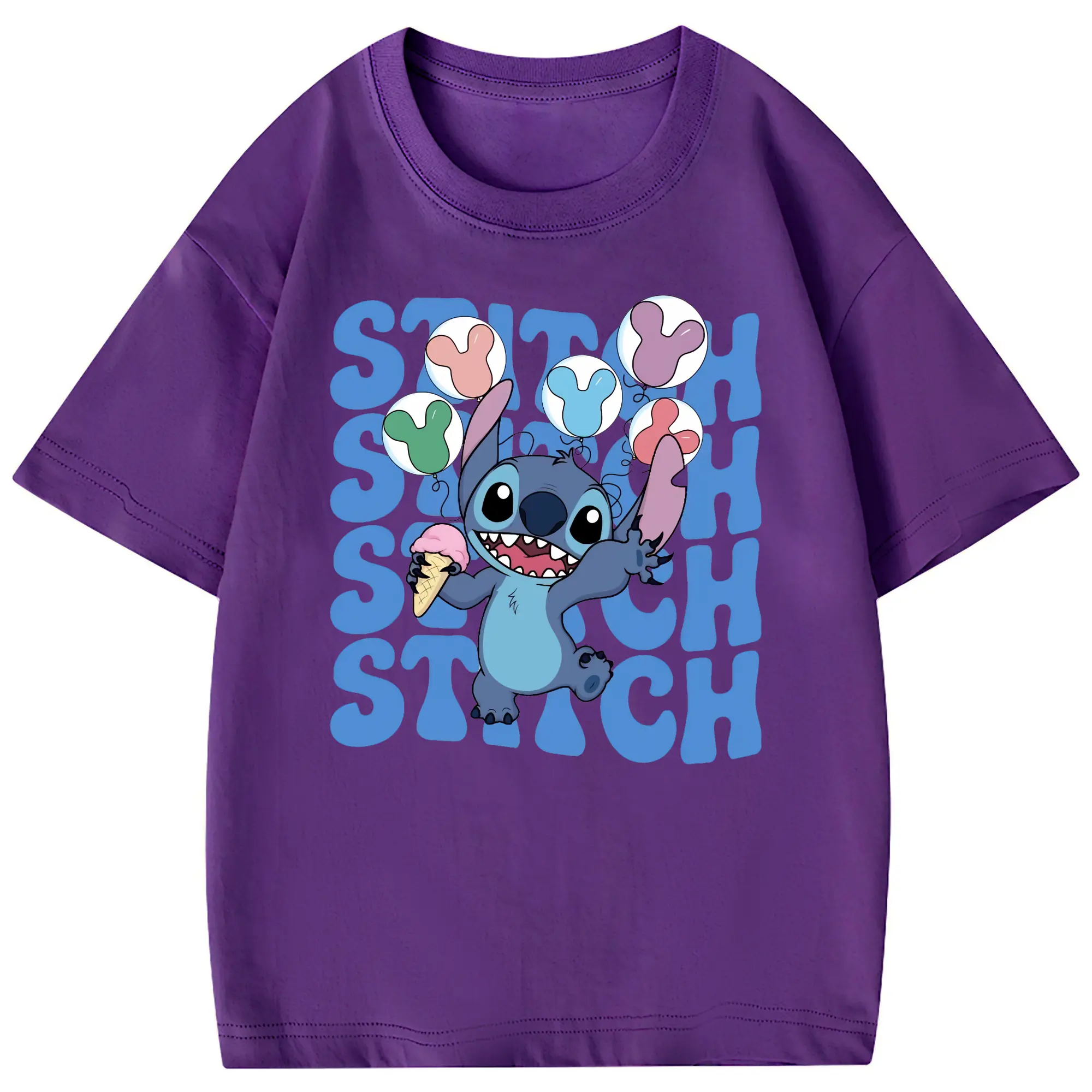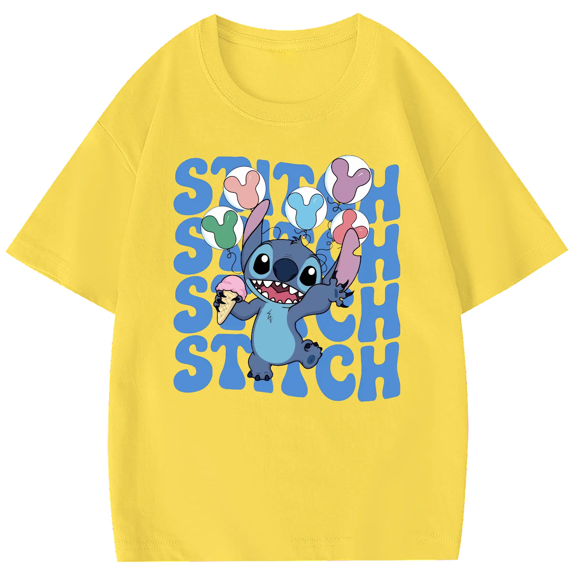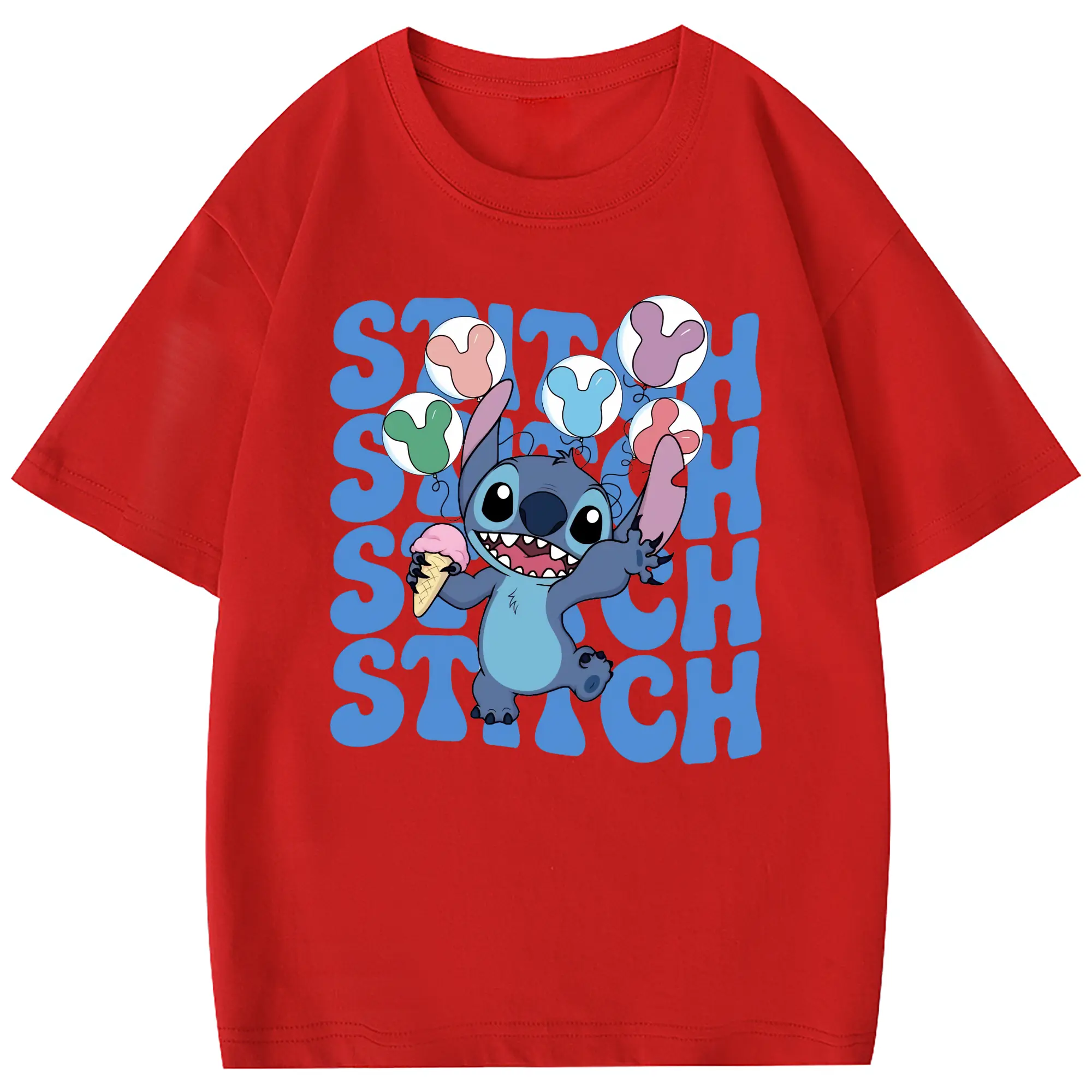 リロ&スティッチ グッズ スティッチ - 綿100% 半袖Tシャツ ・ フロントプリント ・ 快適 通気性 ・ 日常使い 散歩 スポーツ用