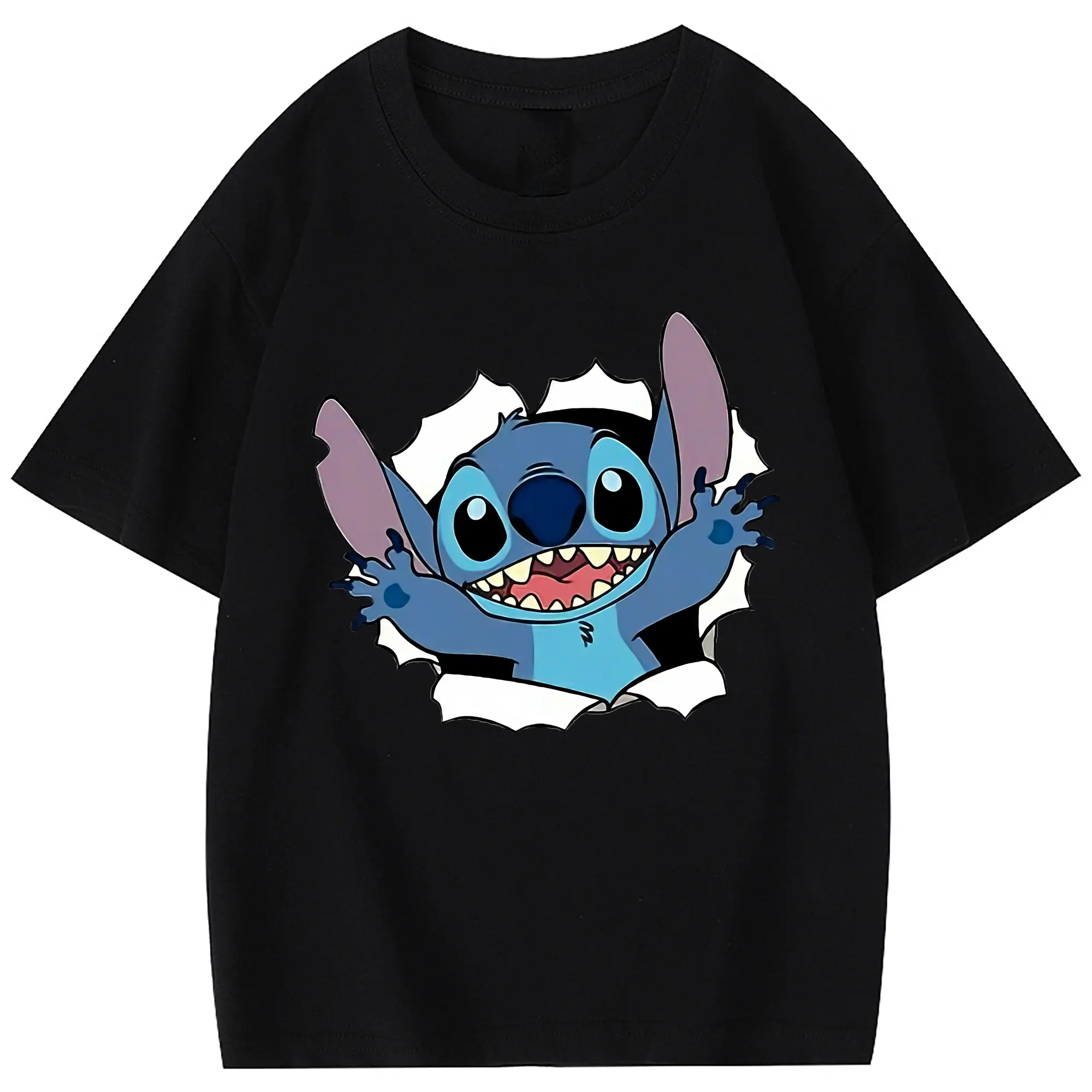 リロ&スティッチ グッズ スティッチ - 綿100% 半袖Tシャツ ・ バックプリント ・ 快適 通気性 ・ 日常使い 散歩 スポーツ用