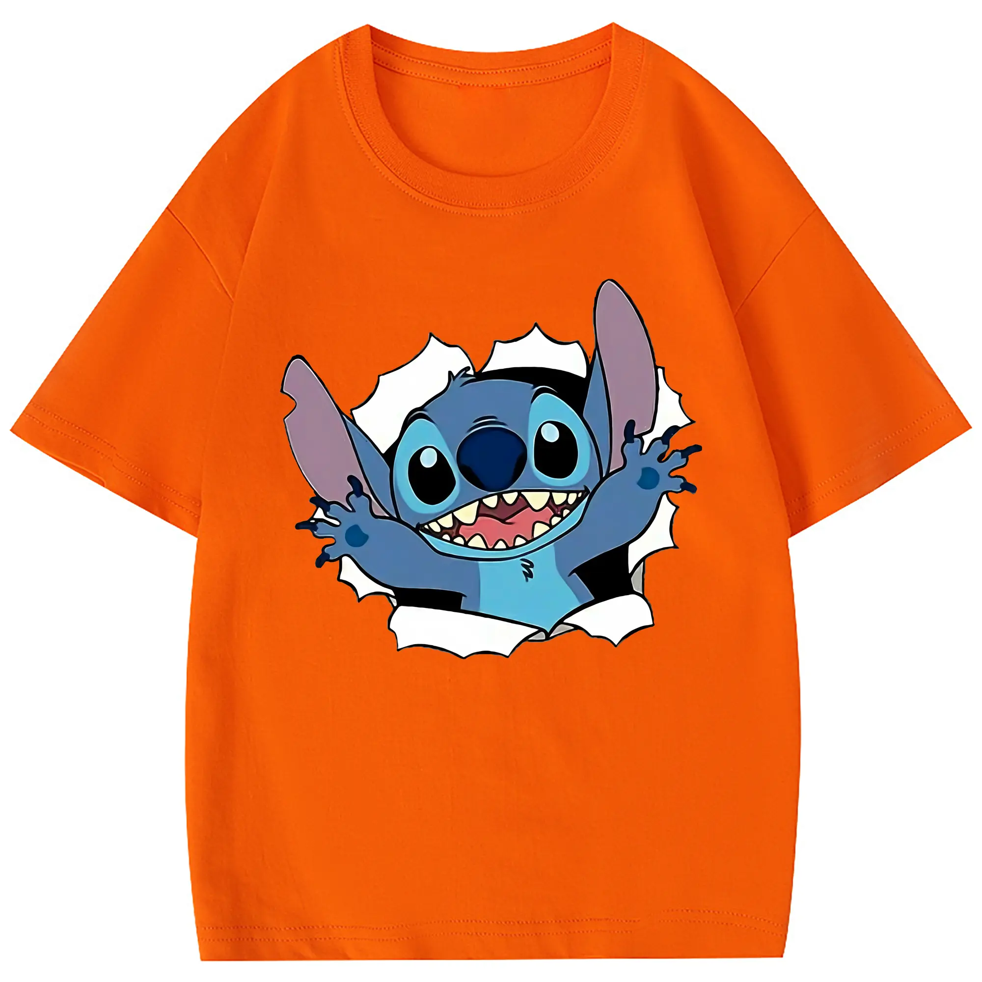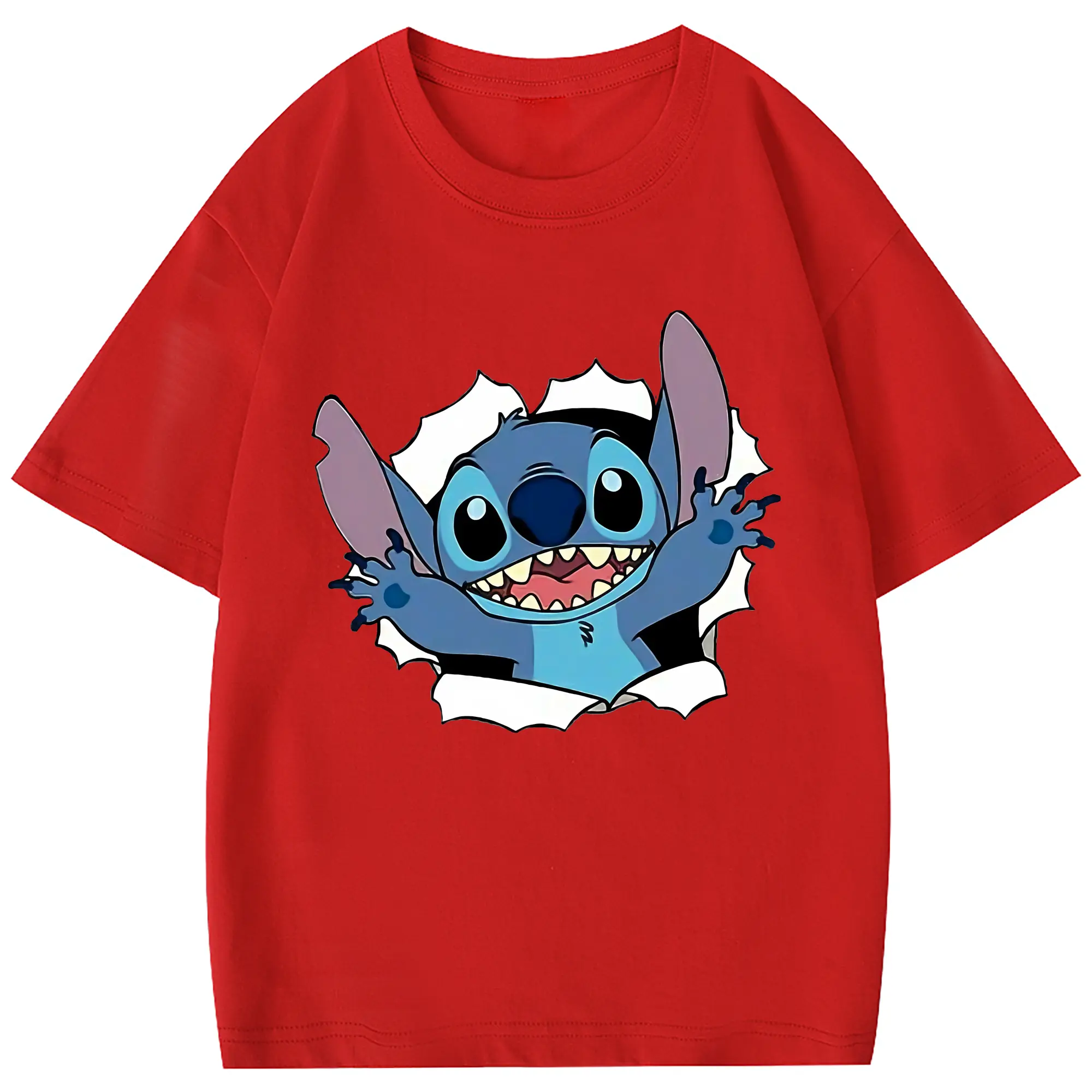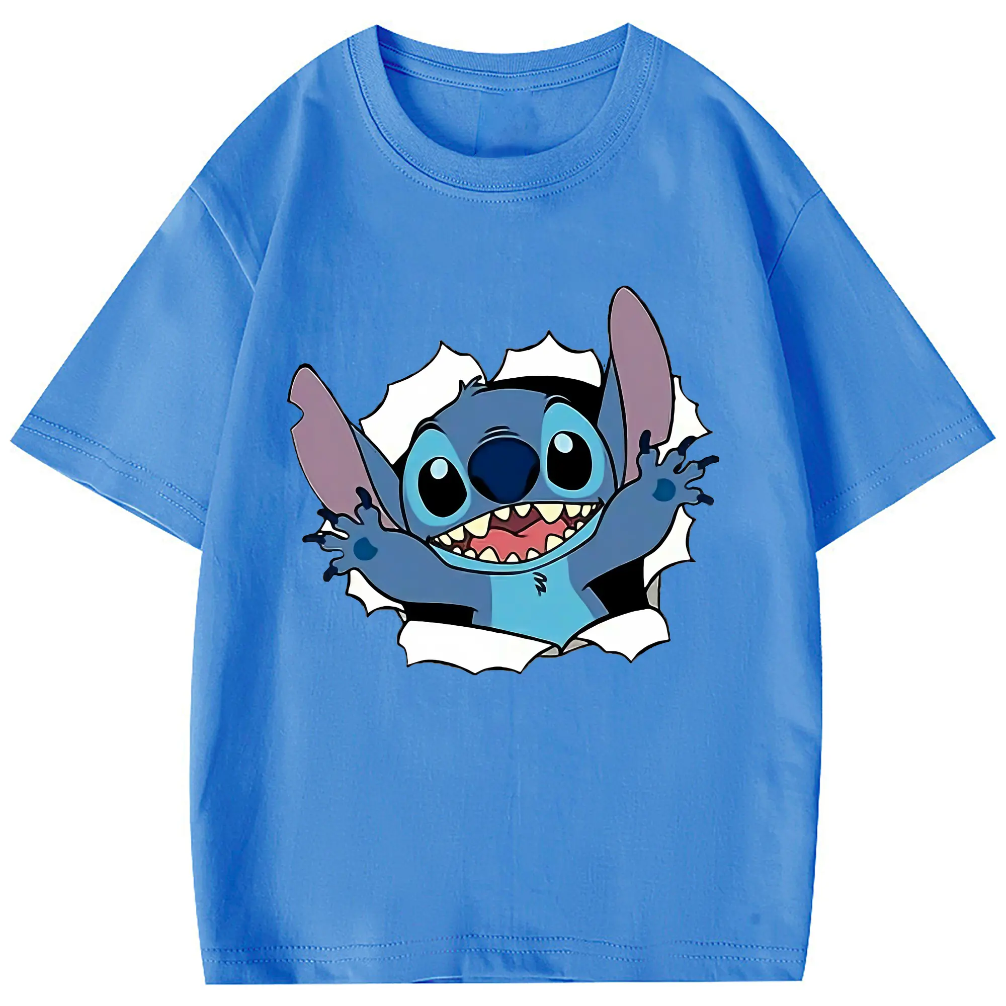 リロ&スティッチ グッズ スティッチ - 綿100% 半袖Tシャツ ・ フロントプリント ・ 快適 通気性 ・ 日常使い 散歩 スポーツ用
