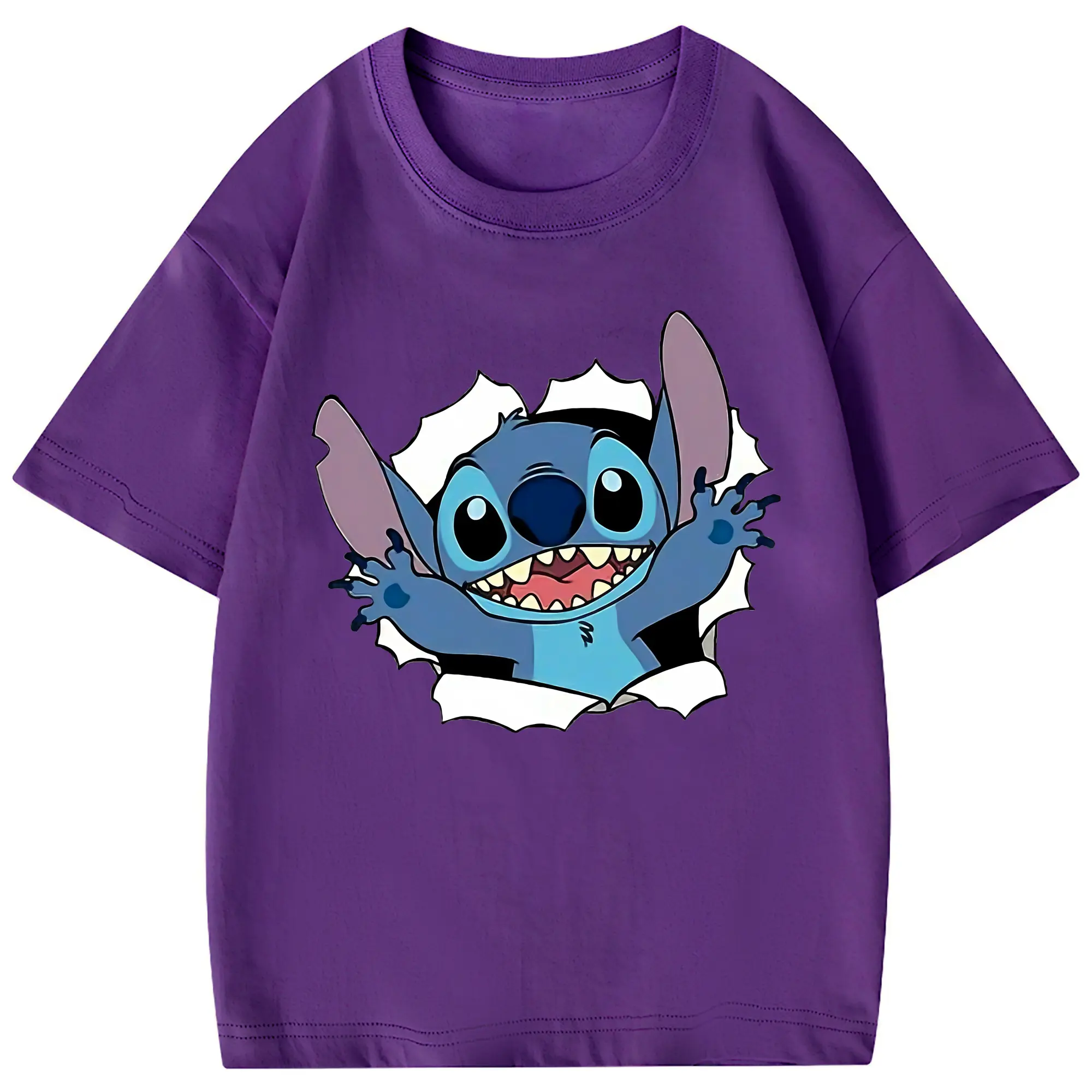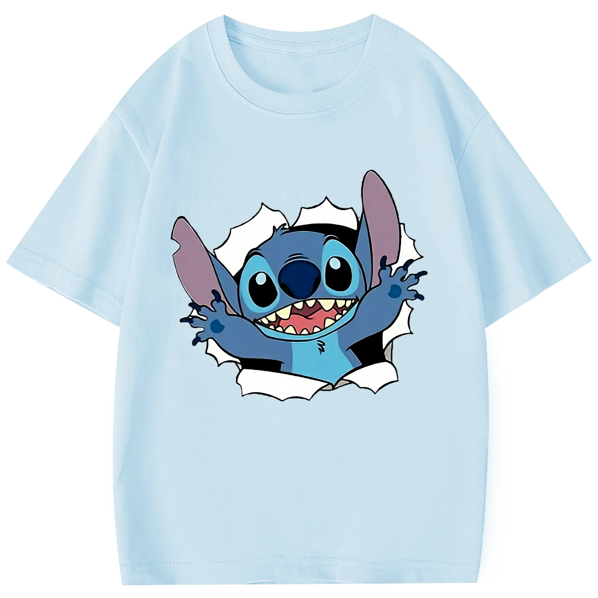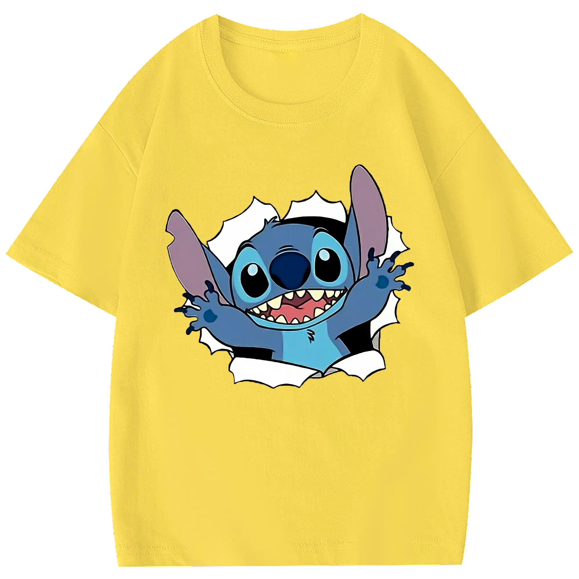 リロ&スティッチ グッズ スティッチ - 綿100% 半袖Tシャツ ・ フロントプリント ・ 快適 通気性 ・ 日常使い 散歩 スポーツ用